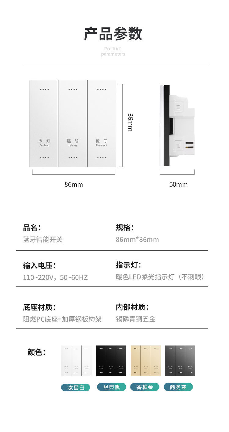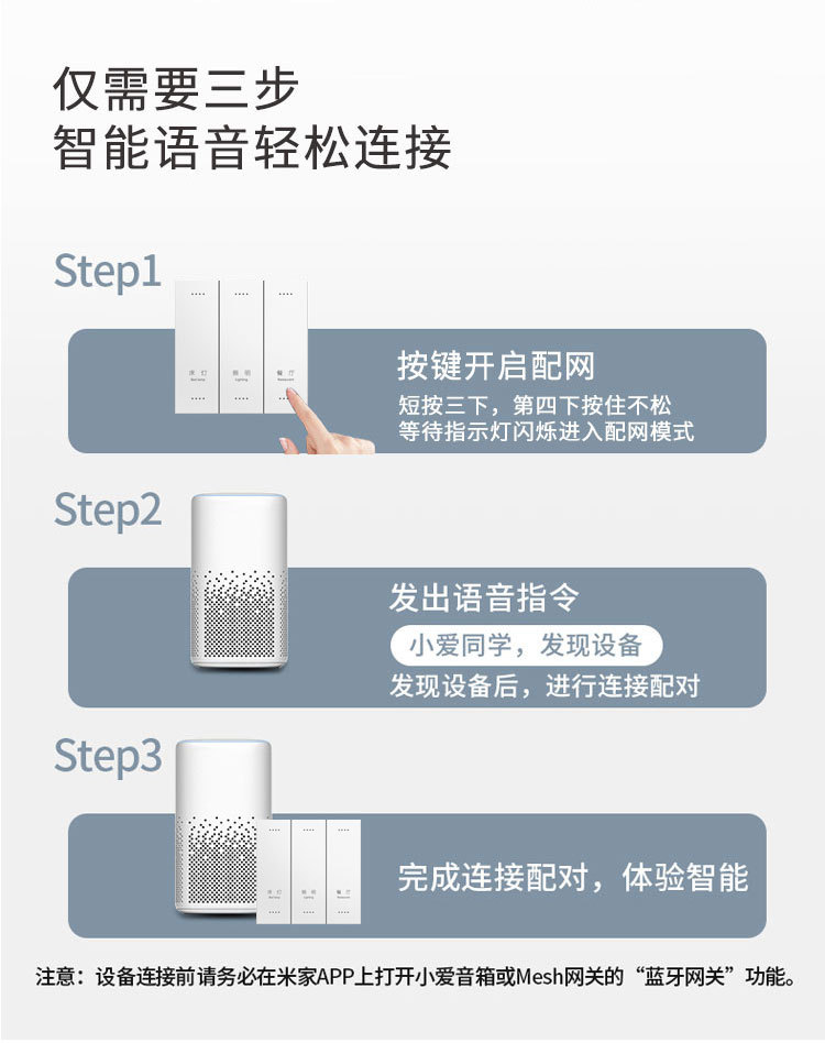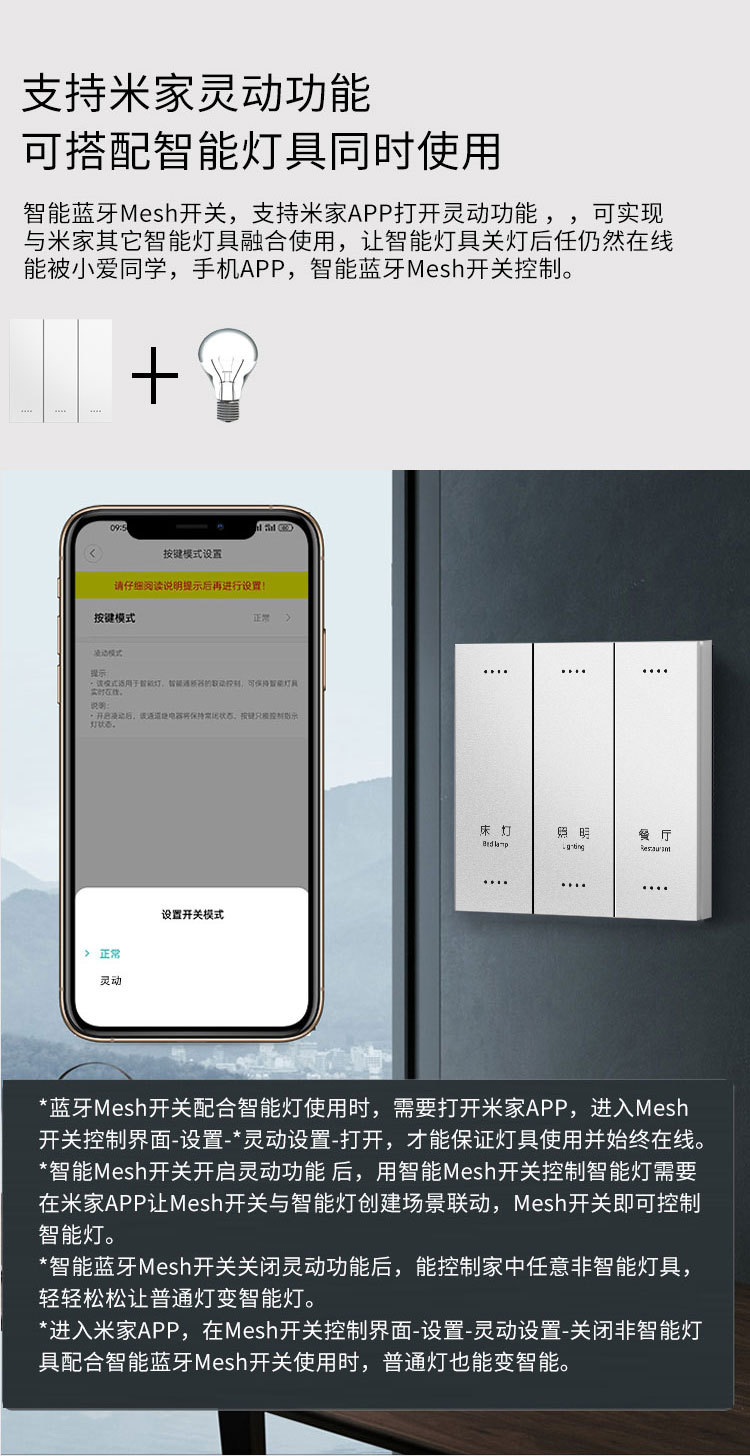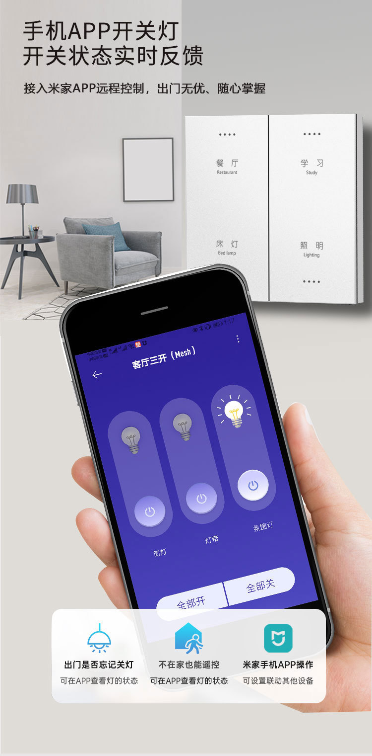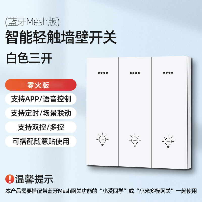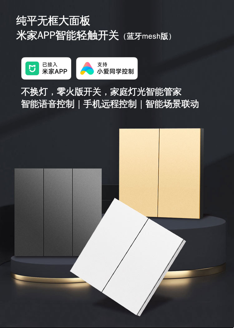 智能开关面板蓝牙mesh已接入米家APP语音定时控制智能家居开关