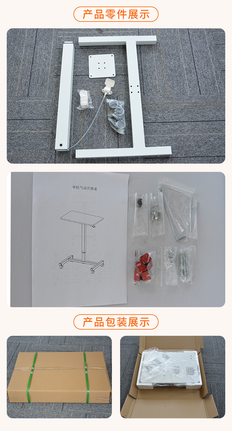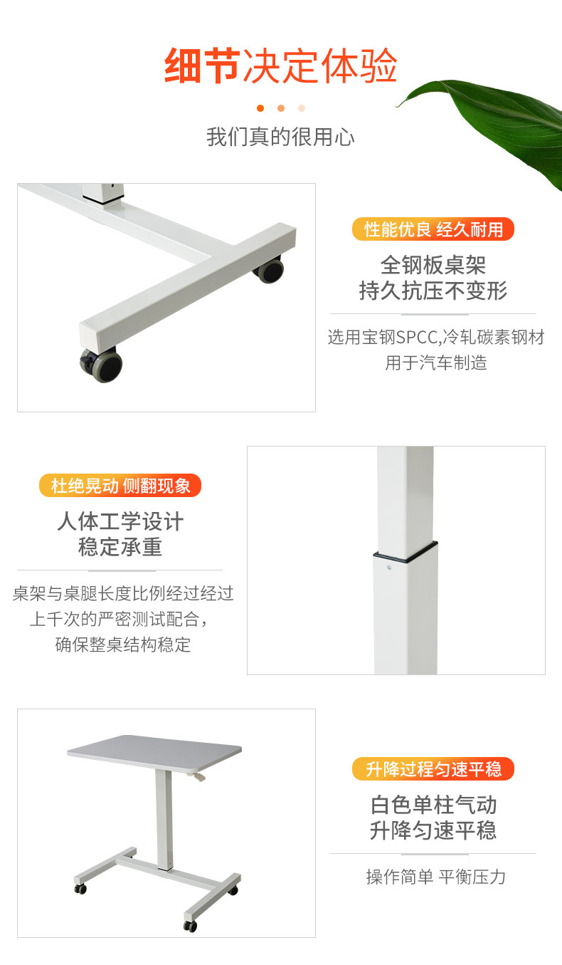气动升降桌升降式站立可移动电脑桌白学习阅读居家办公桌
