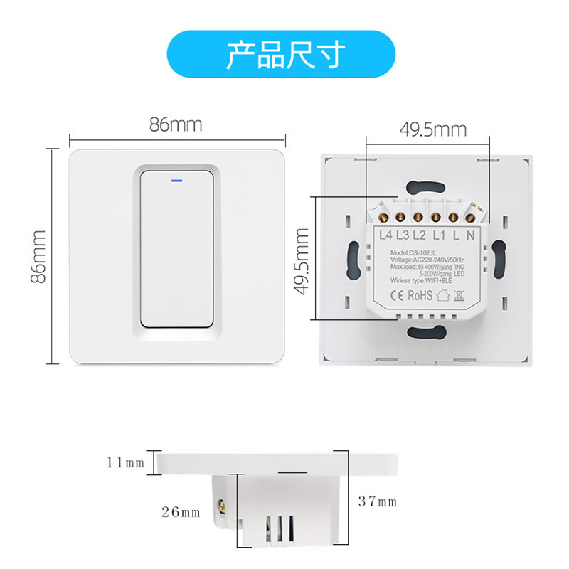 单火零火通用开关 WiFi按键开关 智能开关 86型 欧规英规国标涂鸦