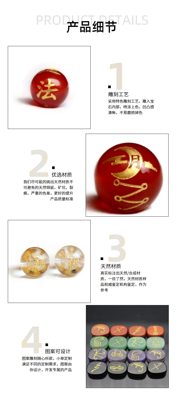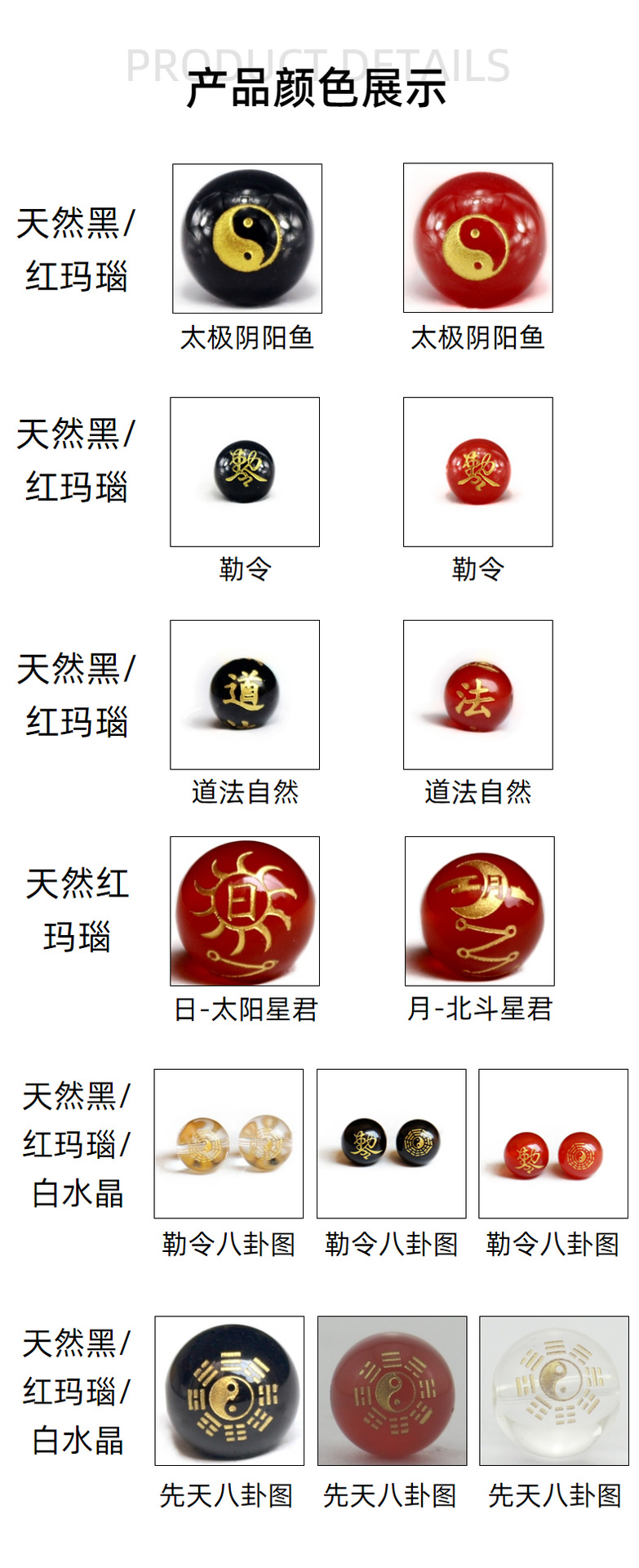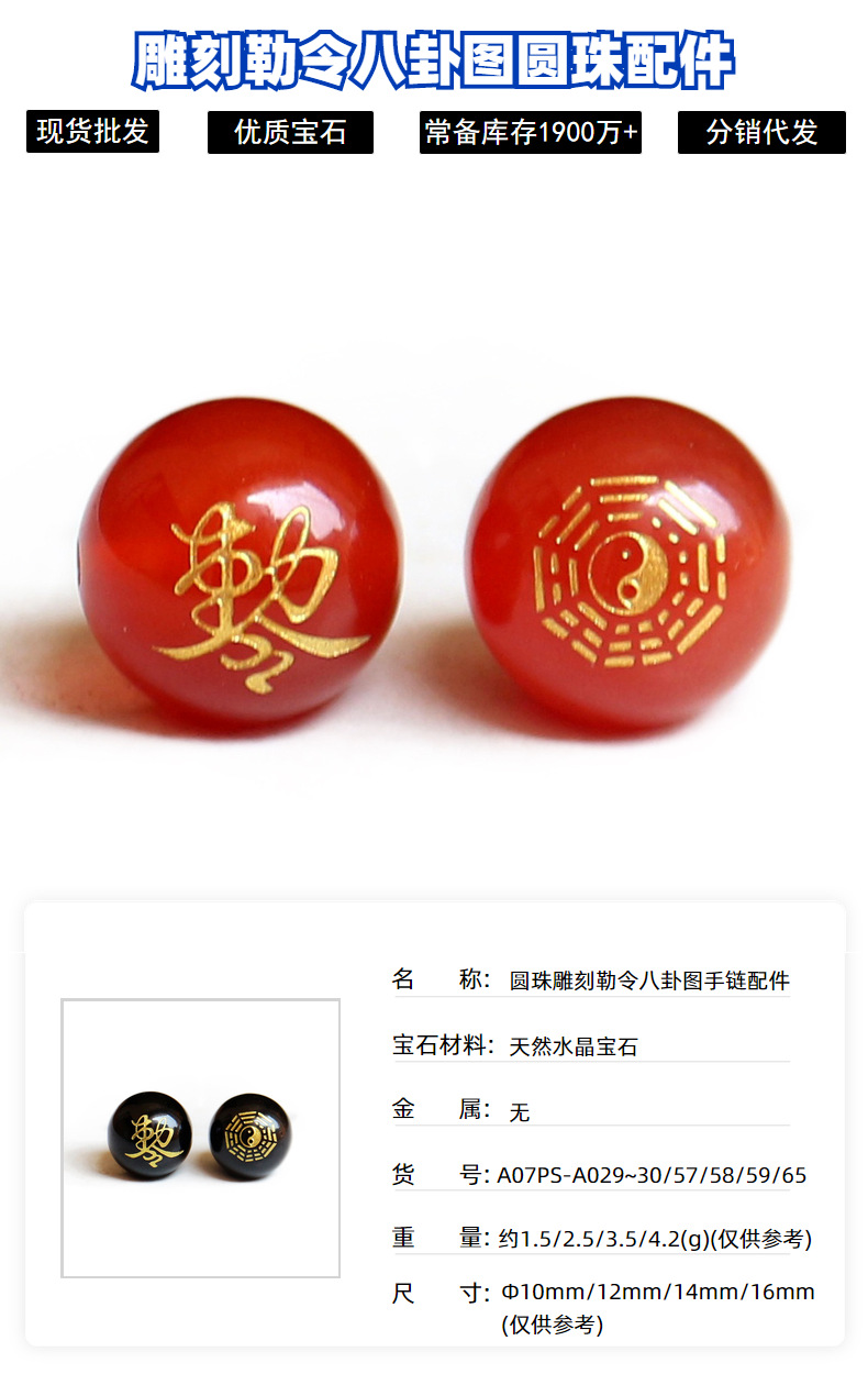 多款道家雕刻天然玛瑙珠子宗教图案 勒令八卦散珠散批diy饰品配件