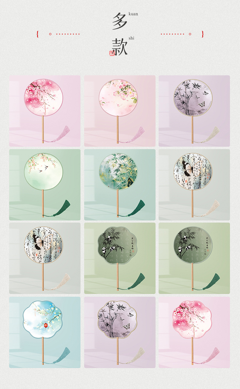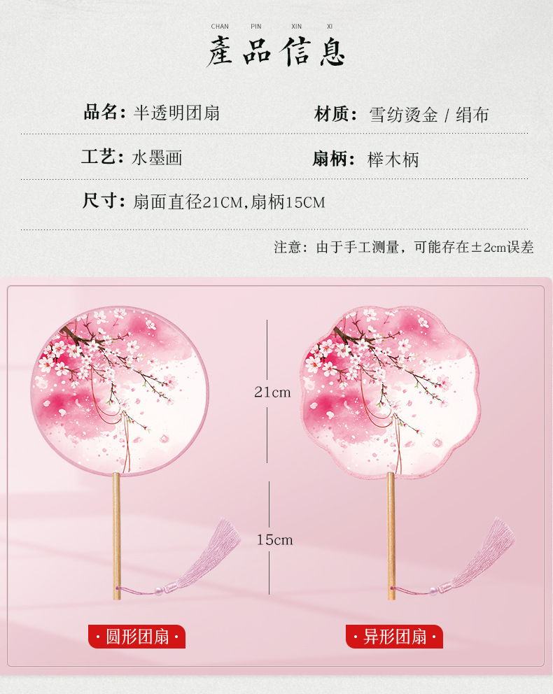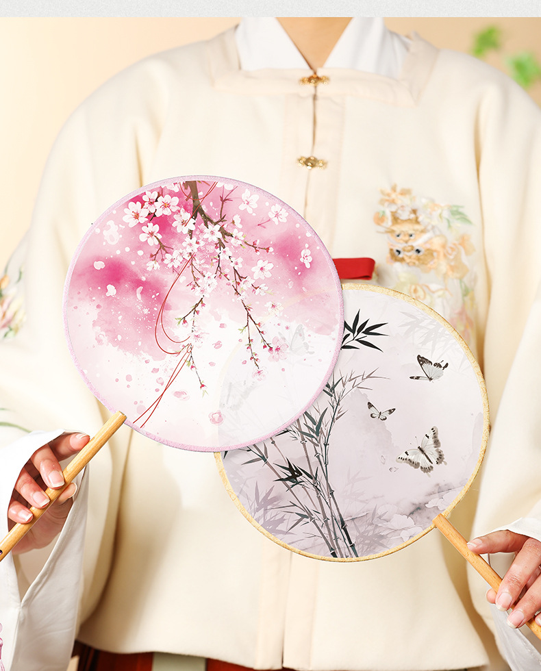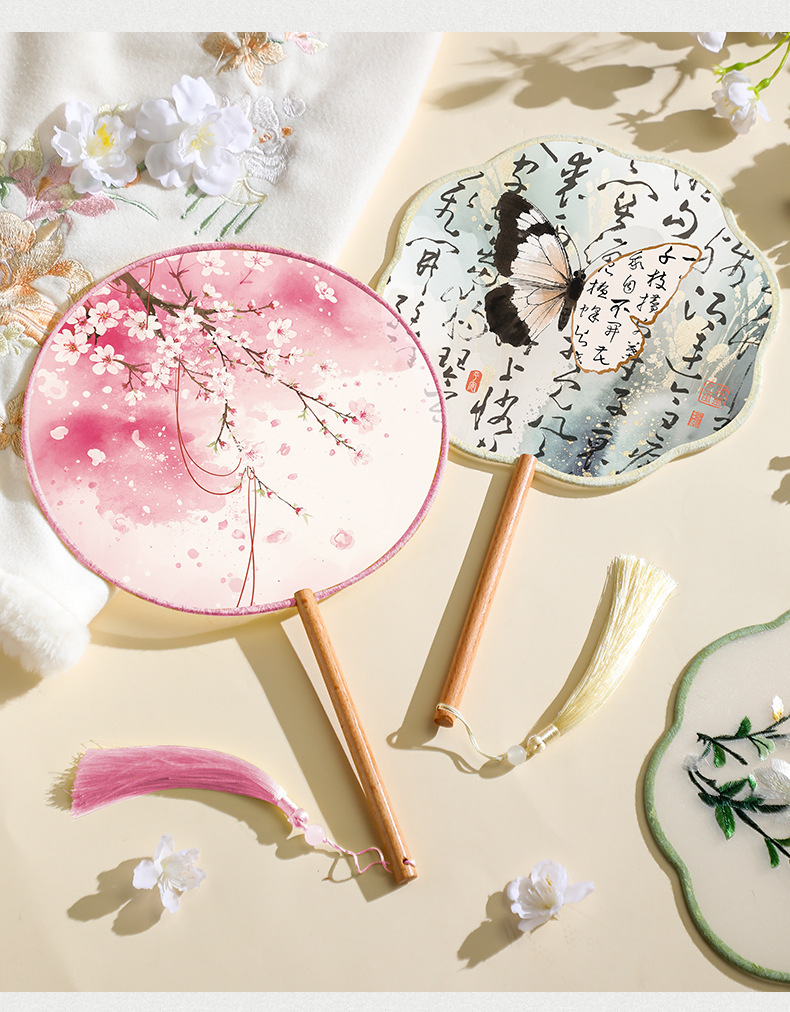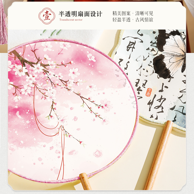 丝质团扇古风扇子女汉服儿童半透团扇古典舞蹈专用中国风跳舞夏天