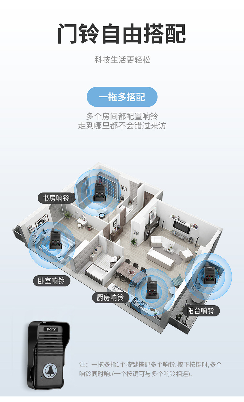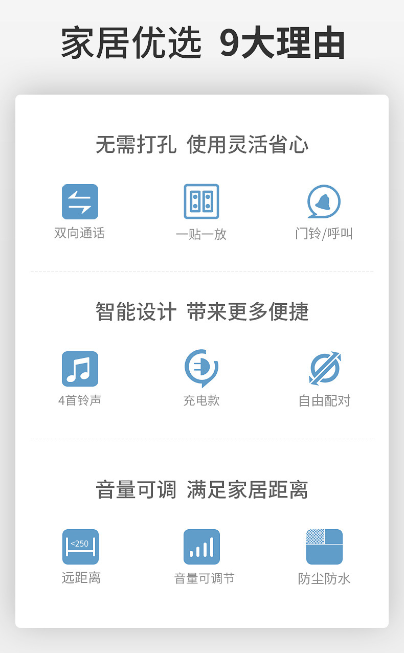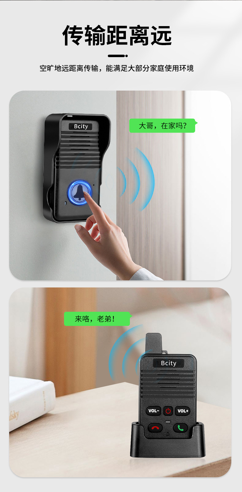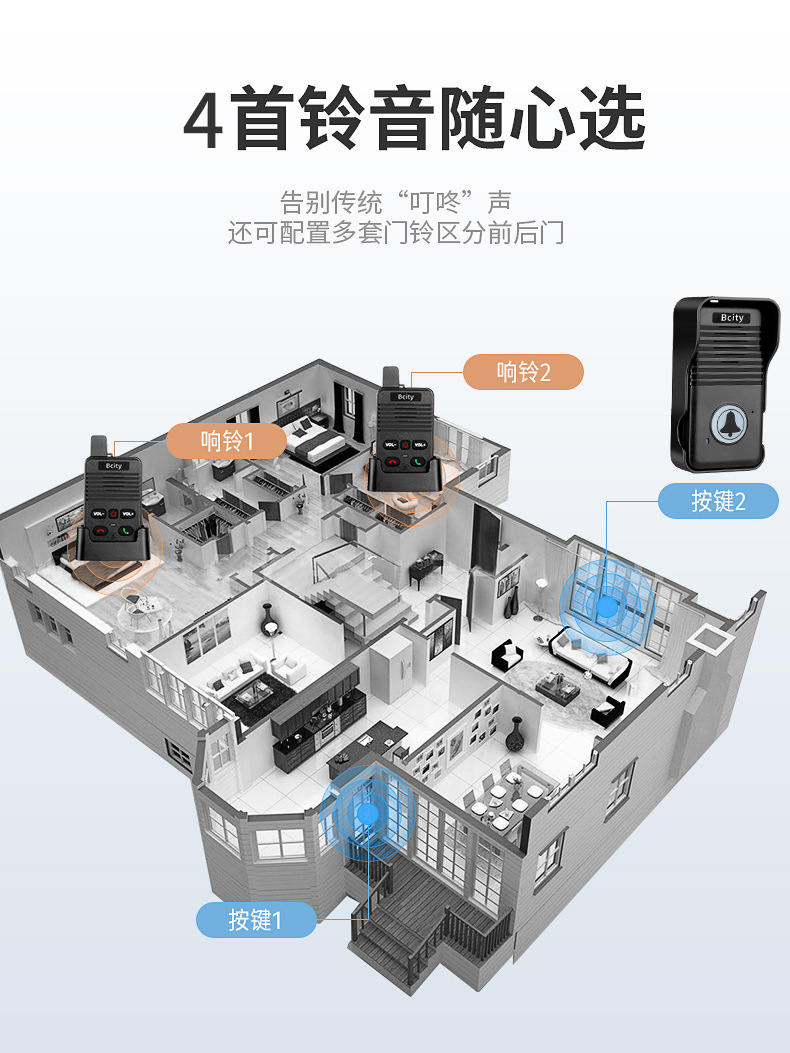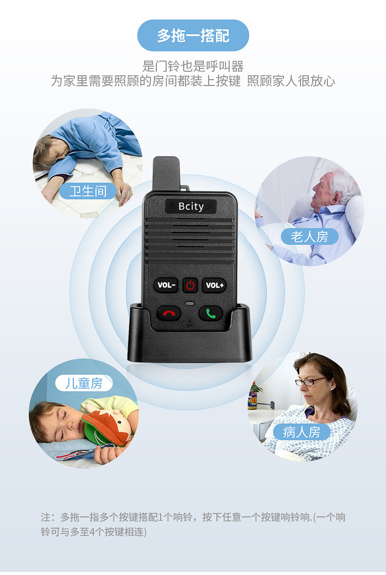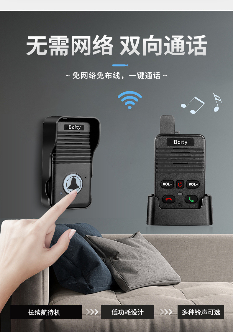 无线语音对讲门铃家用超远距离双向通话对讲机茶楼医院老人呼叫器