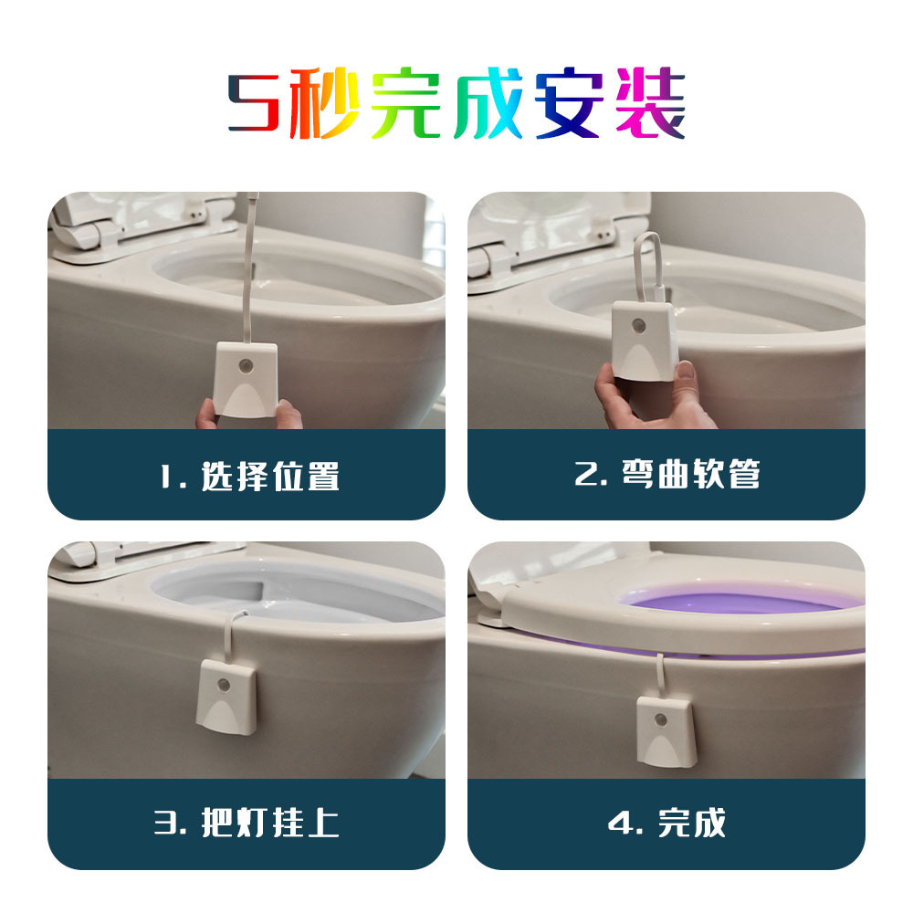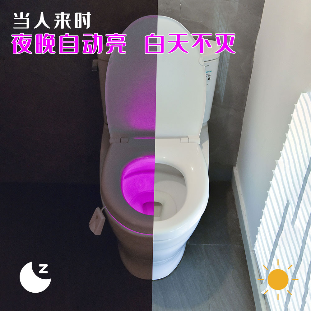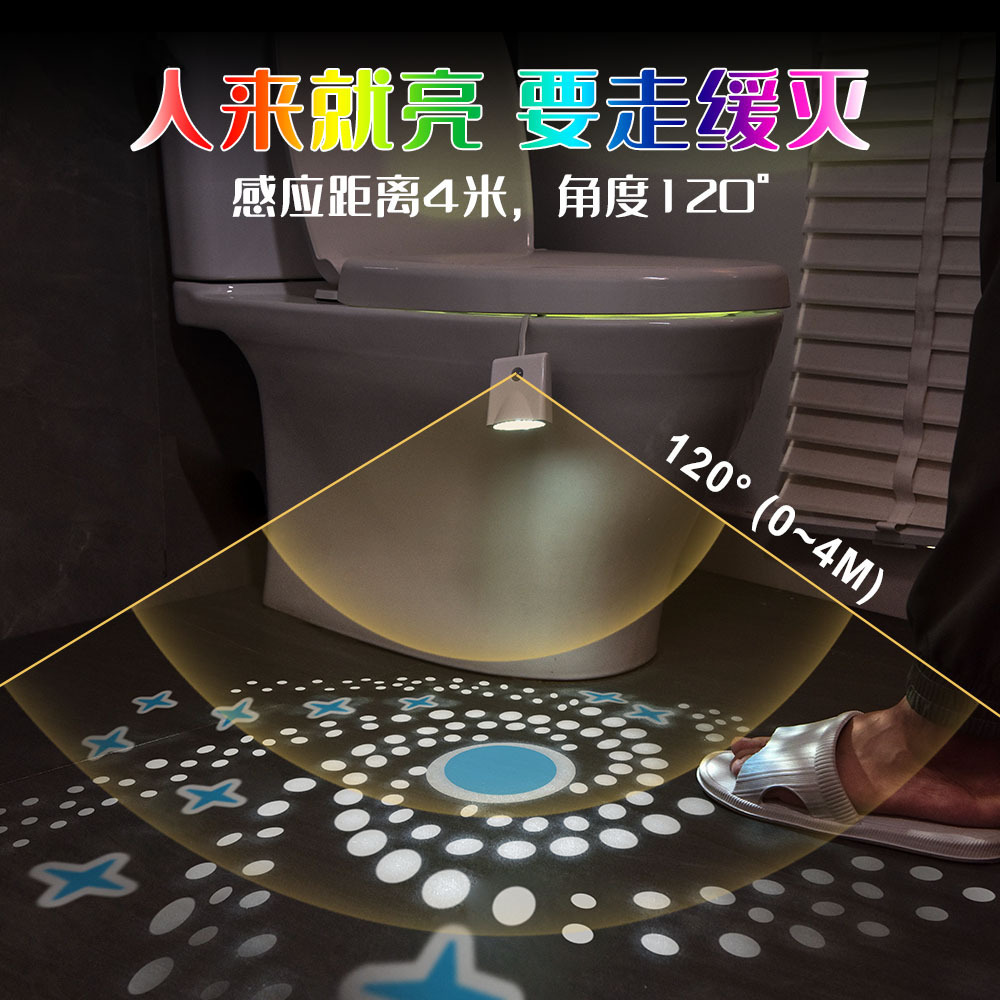 充电七彩感应灯马桶投影灯人体感应灯智能小夜灯卫生间防水氛围灯