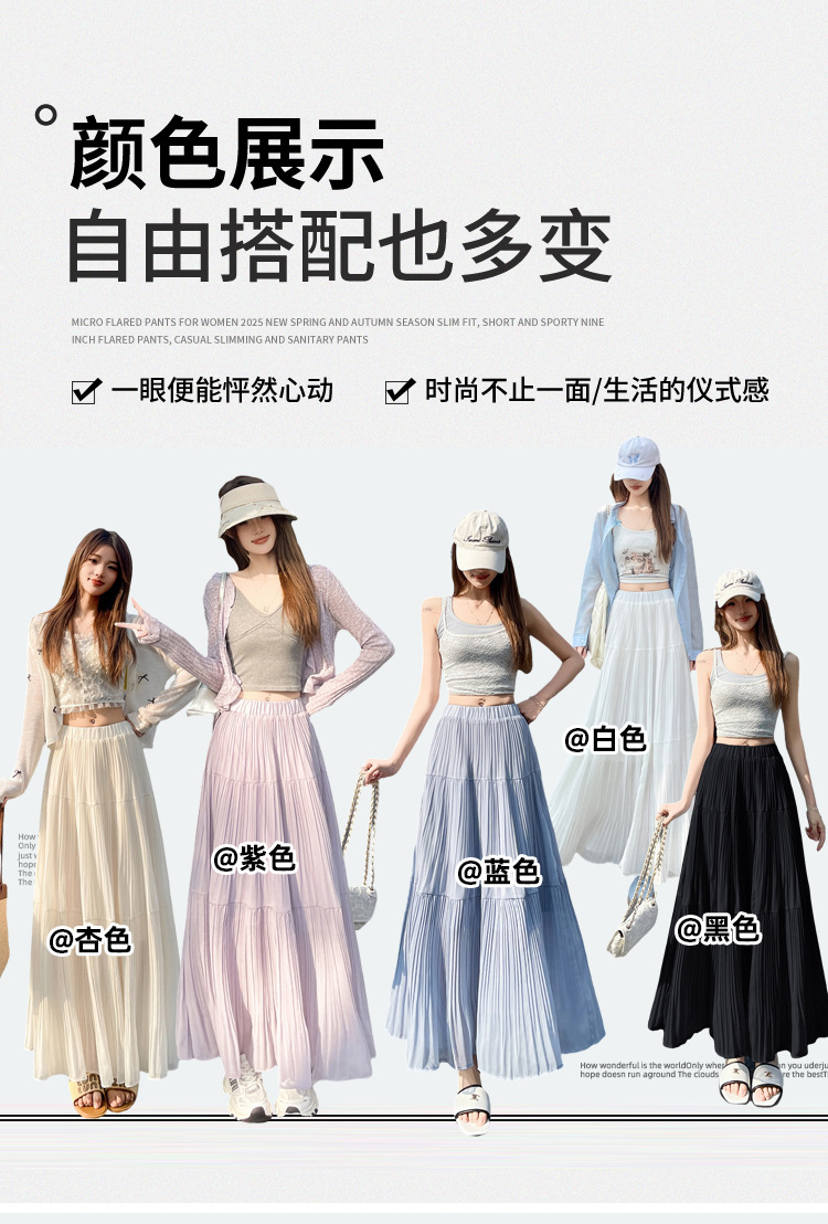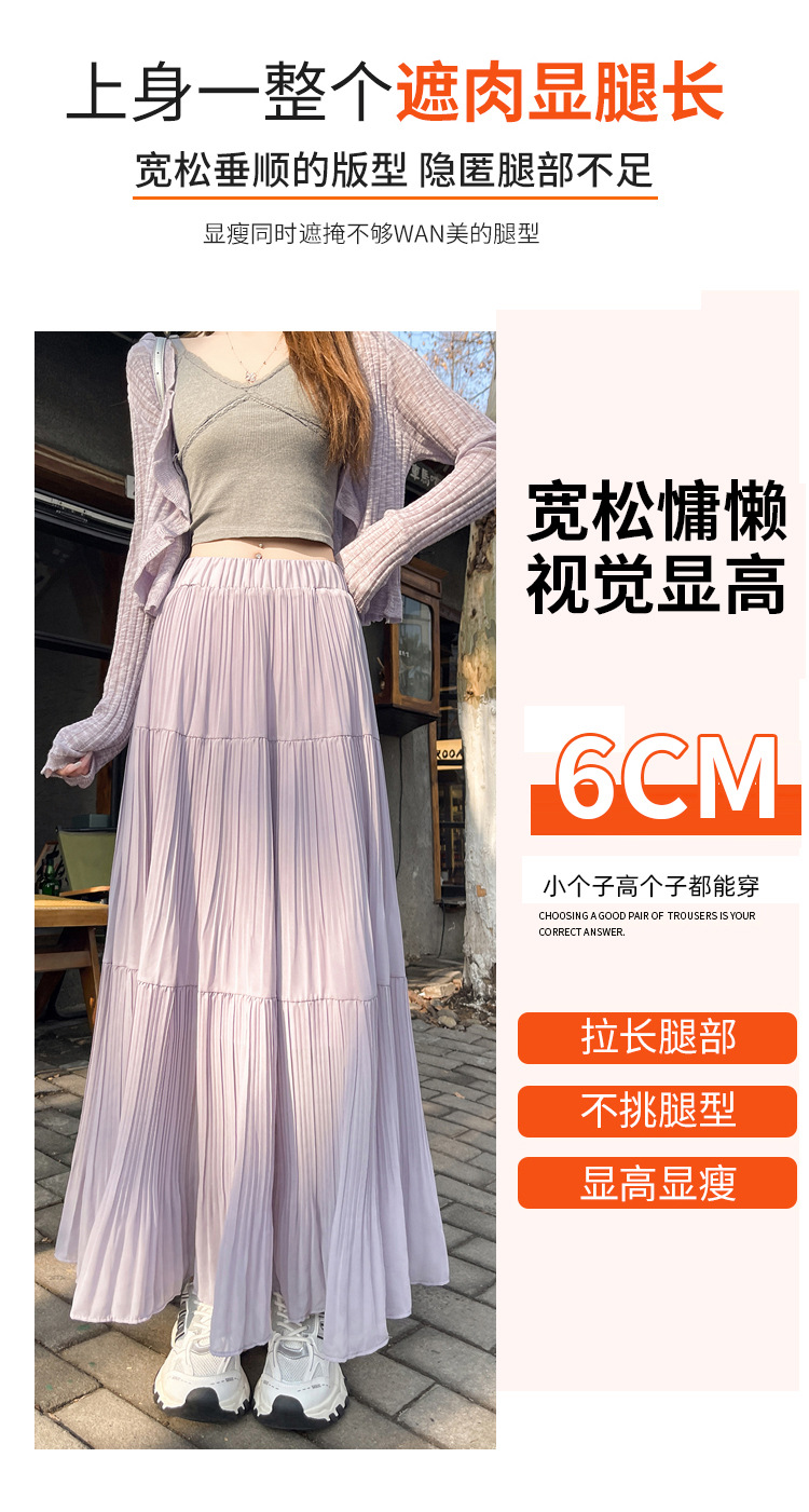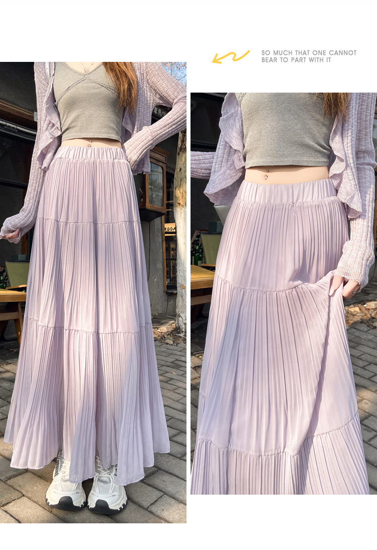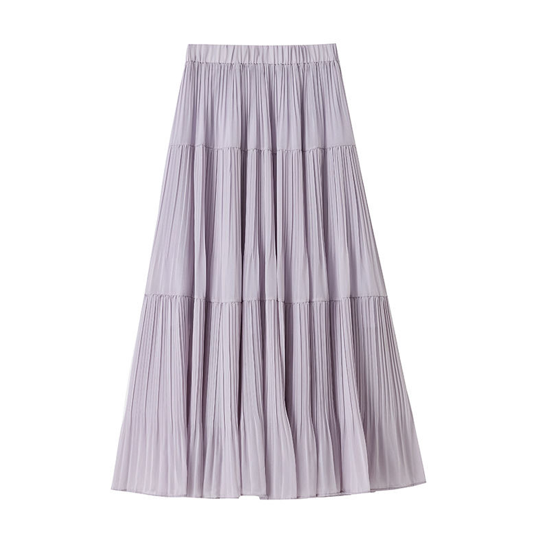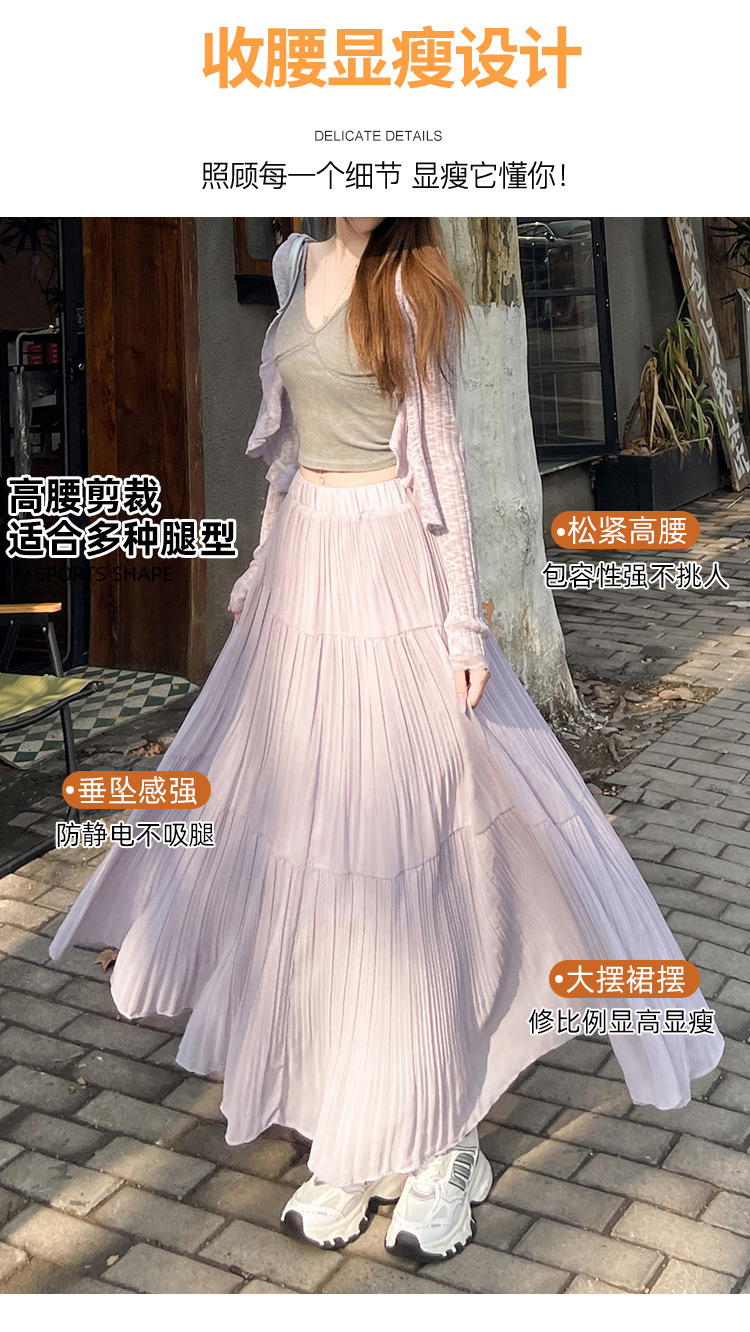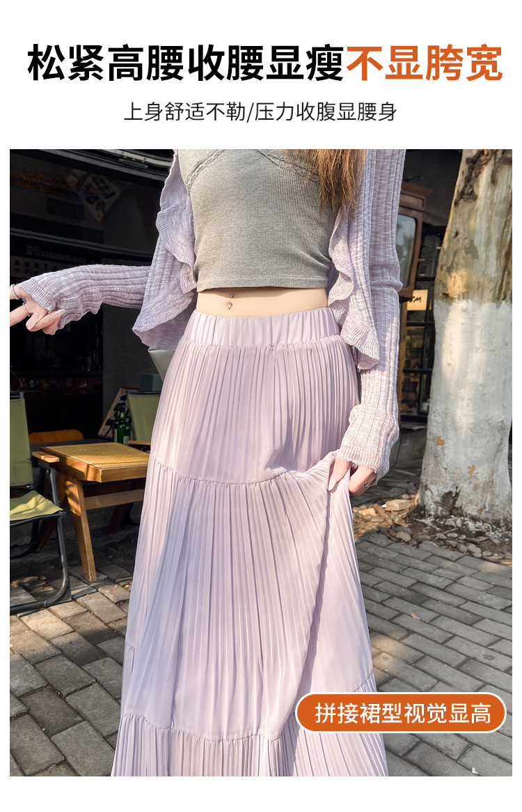 实拍 紫色压褶半身裙女2025春夏新款高腰显瘦a字遮胯大摆百褶长裙