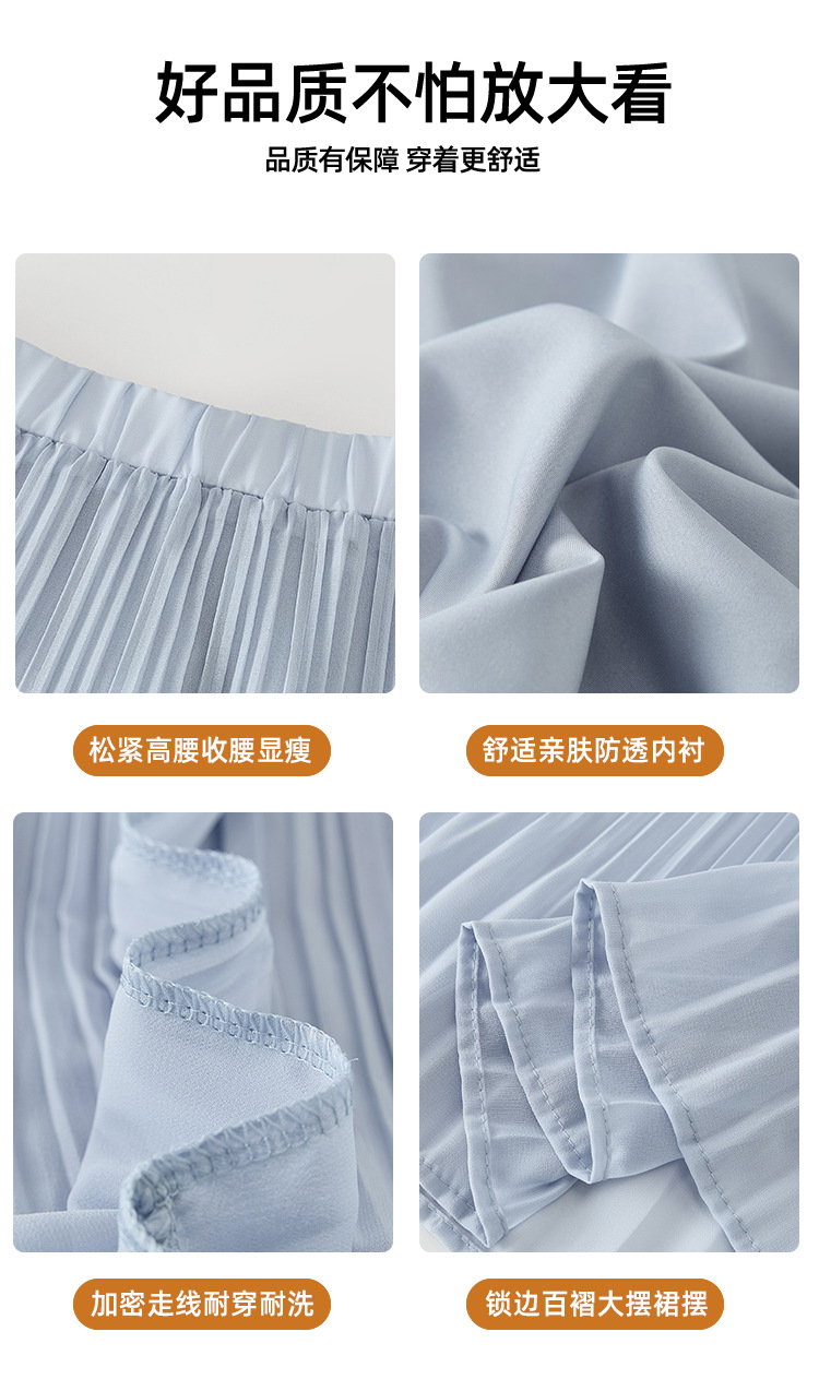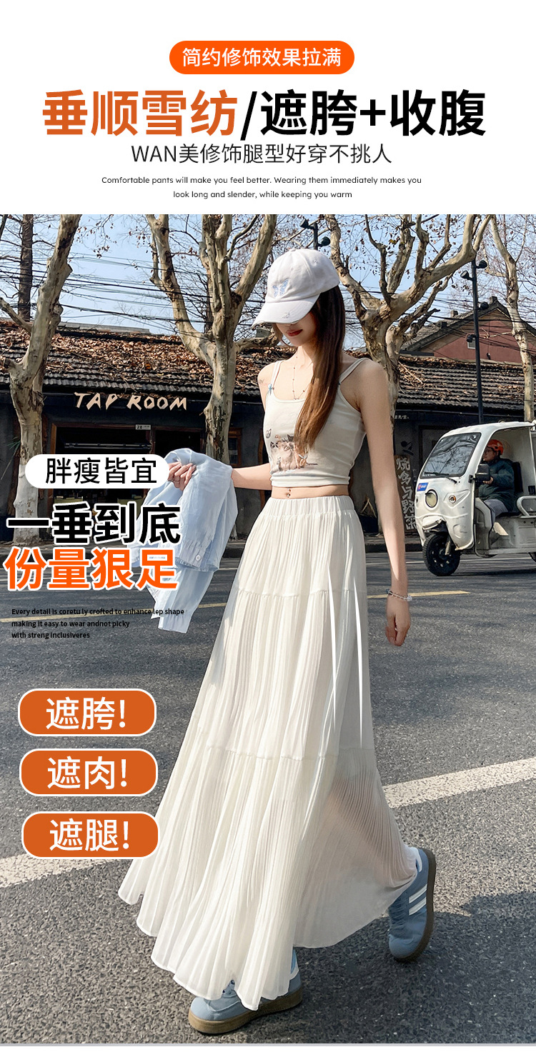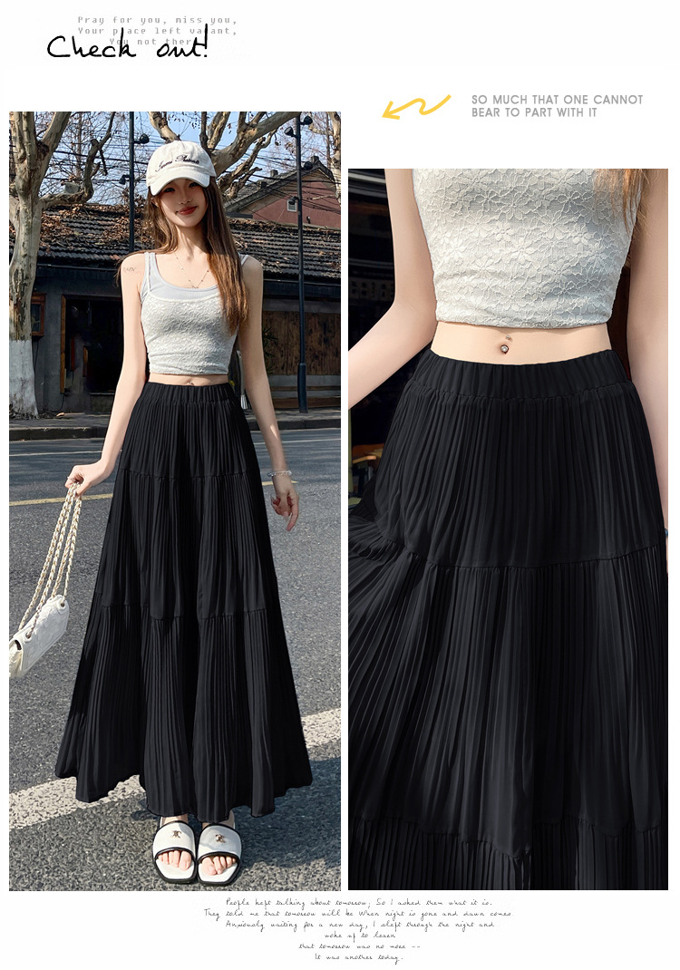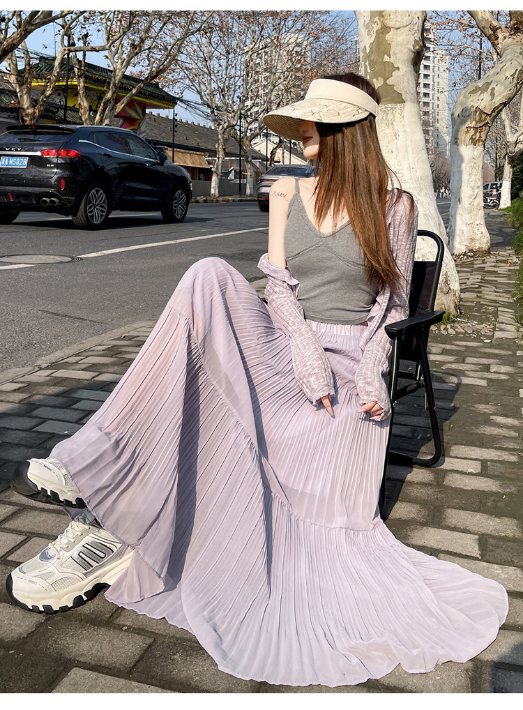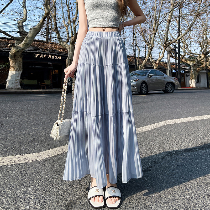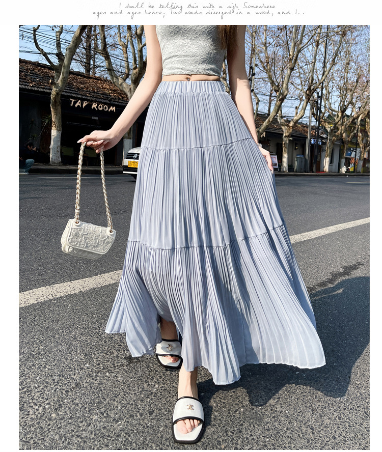 实拍 紫色压褶半身裙女2025春夏新款高腰显瘦a字遮胯大摆百褶长裙
