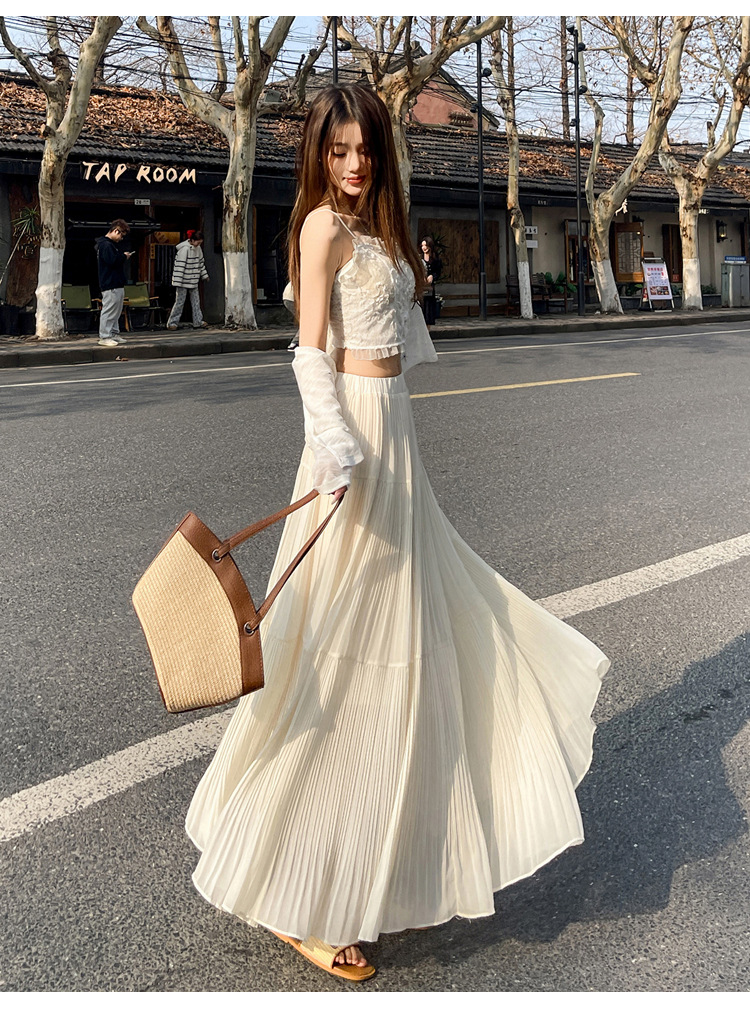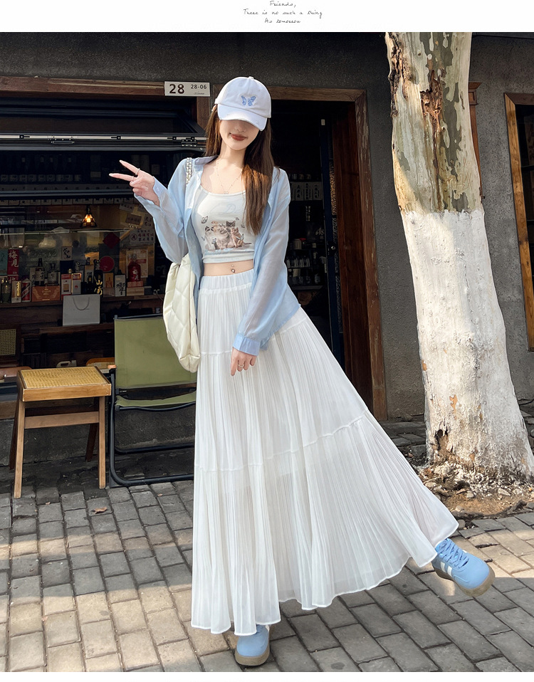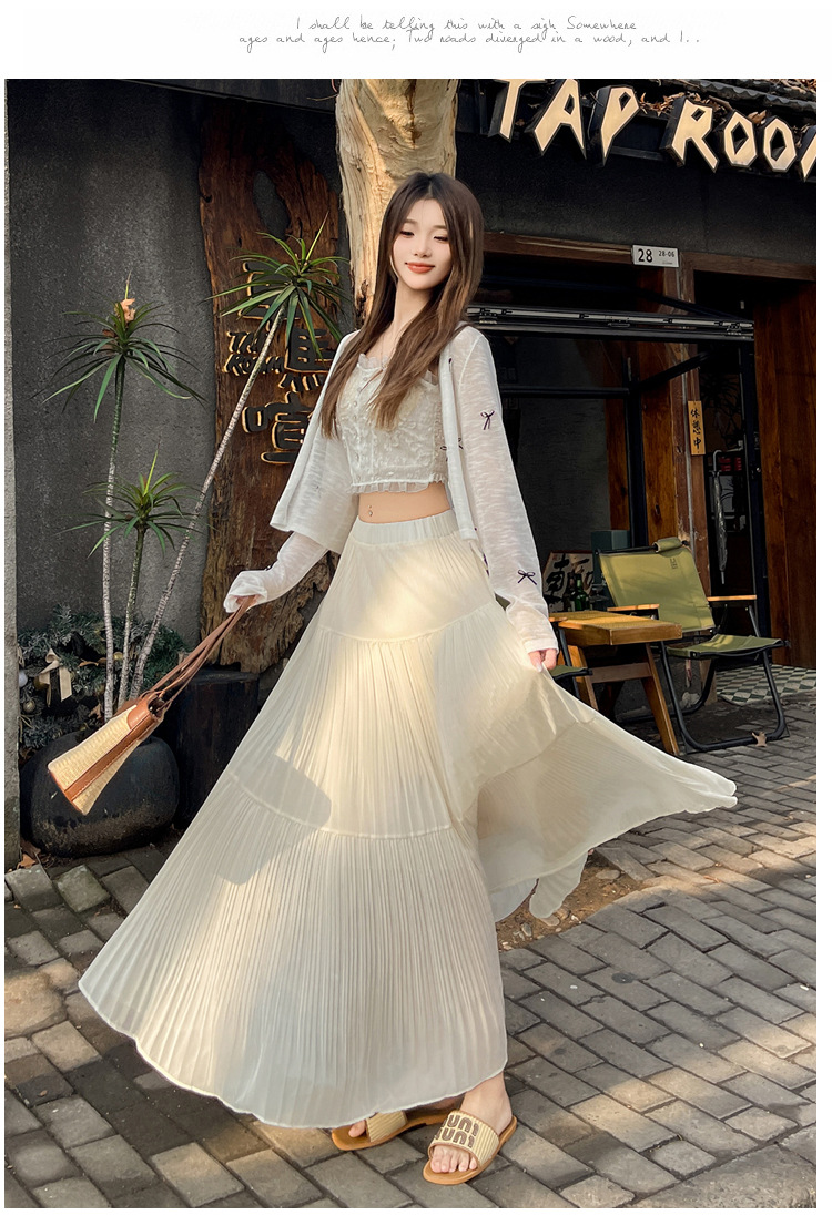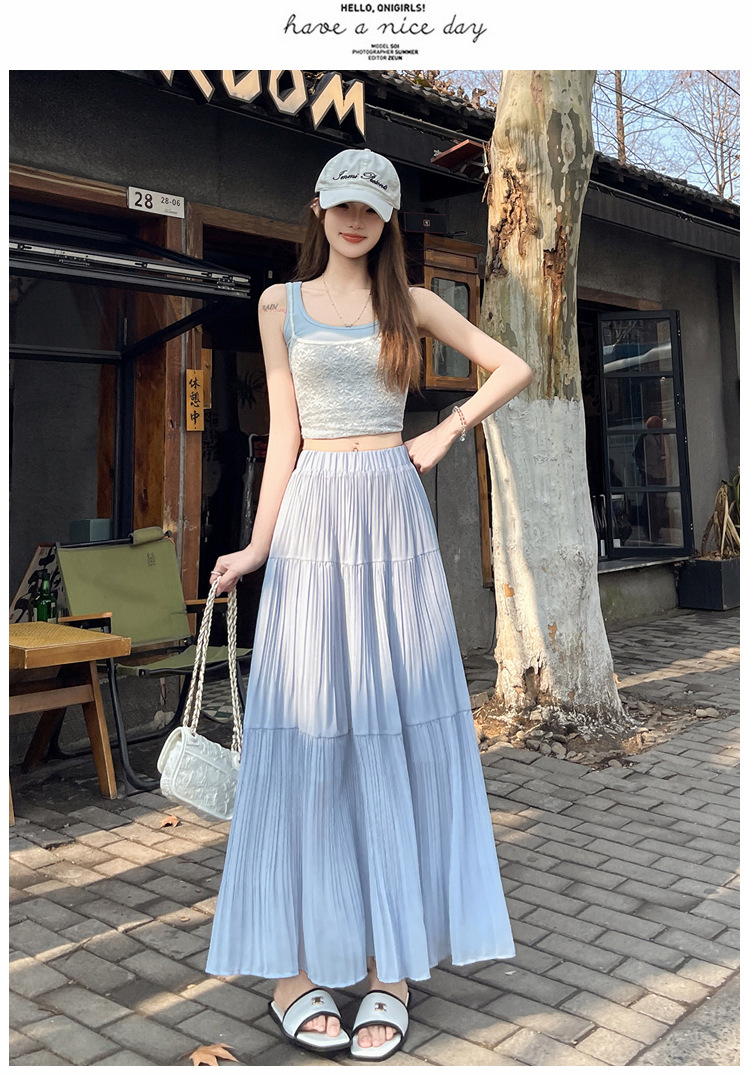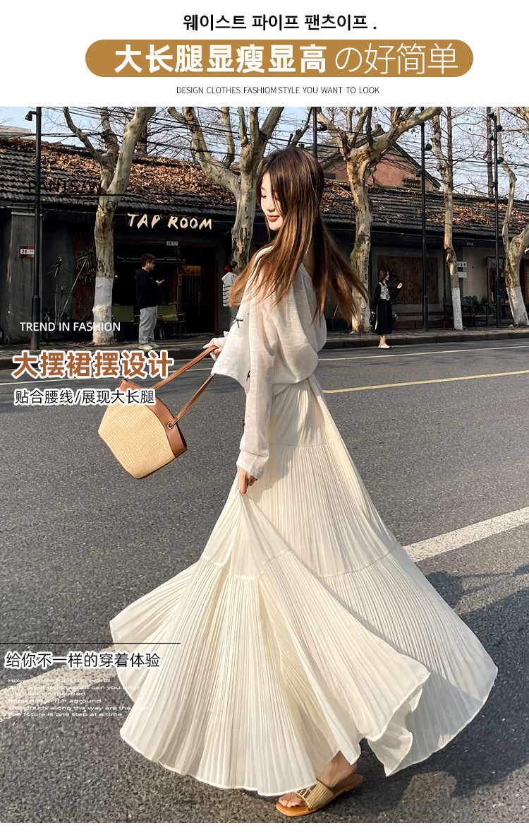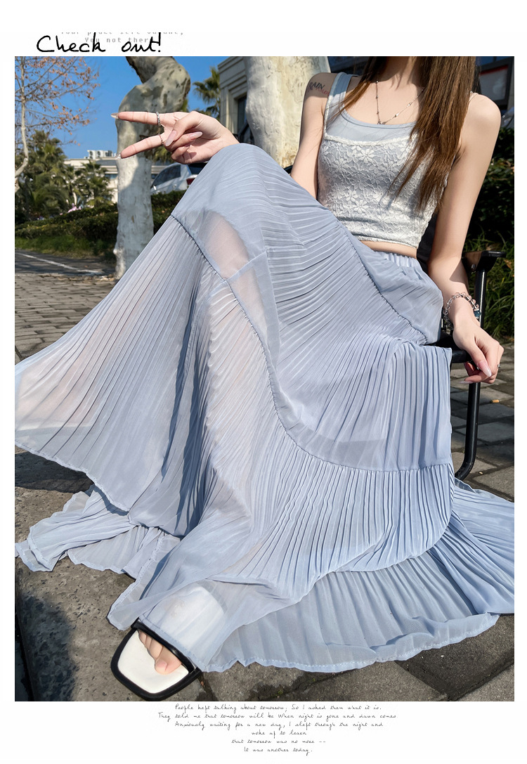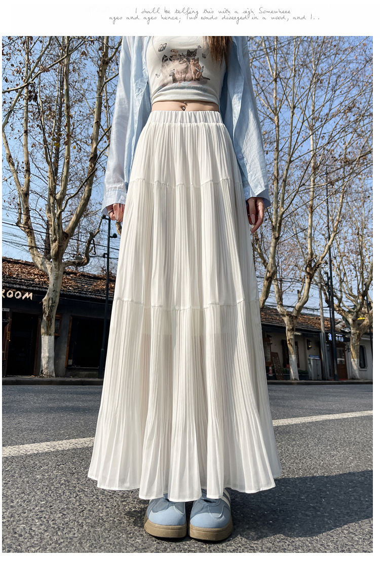 实拍 紫色压褶半身裙女2025春夏新款高腰显瘦a字遮胯大摆百褶长裙