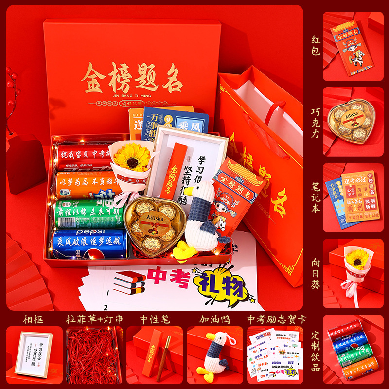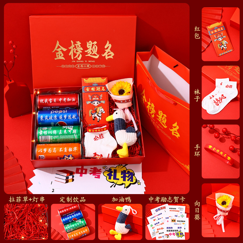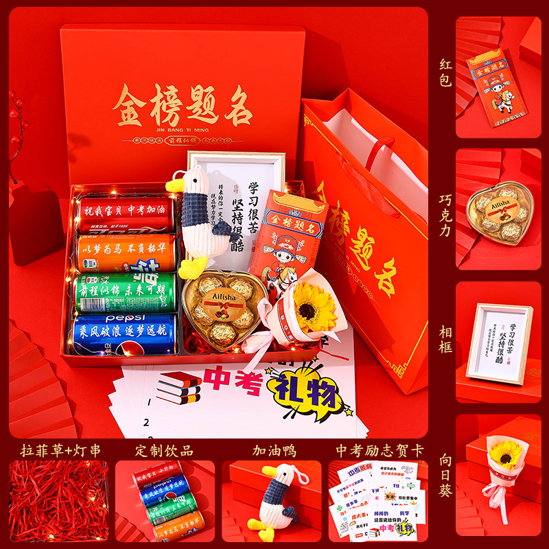 金榜题名礼盒中考高考加油励志可乐刻字送孩子毕业创意卡片礼物盒