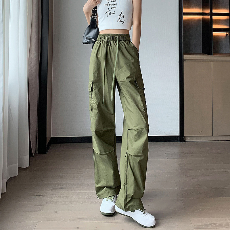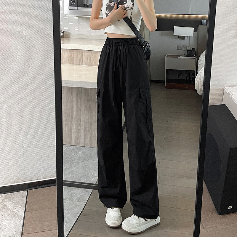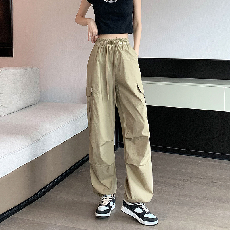 工装裤女夏季高腰阔腿裤2025设计感速干美式复古登山户外运动裤