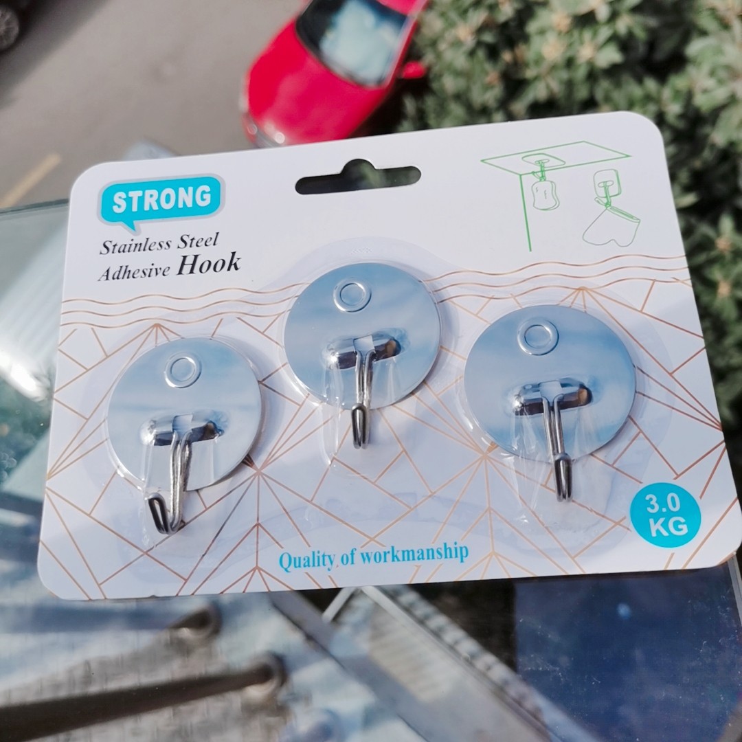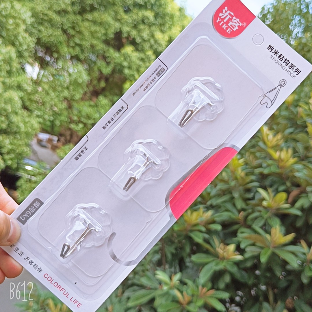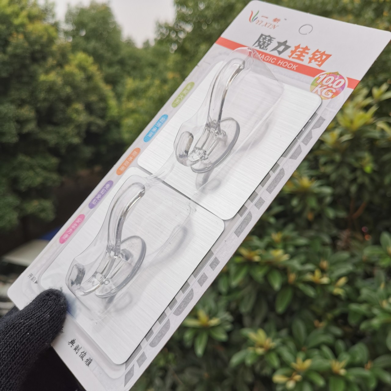 批发3个装强力无痕粘钩免打孔挂钩厨房浴室门后墙壁透明挂衣钩