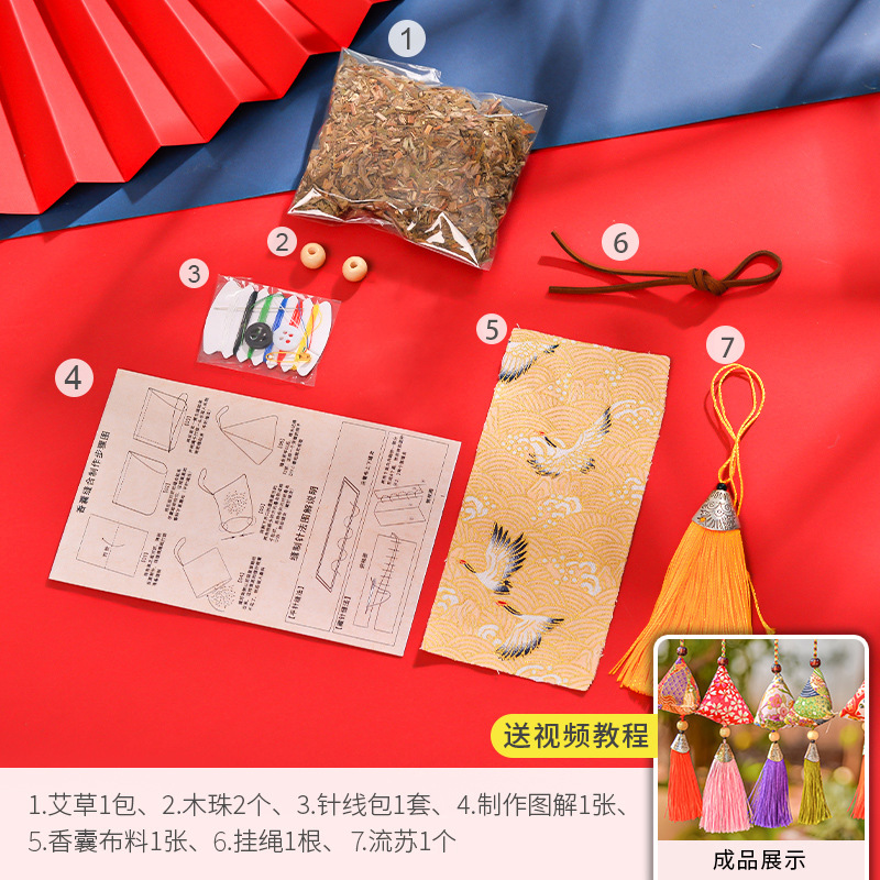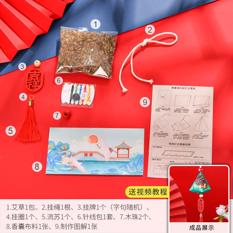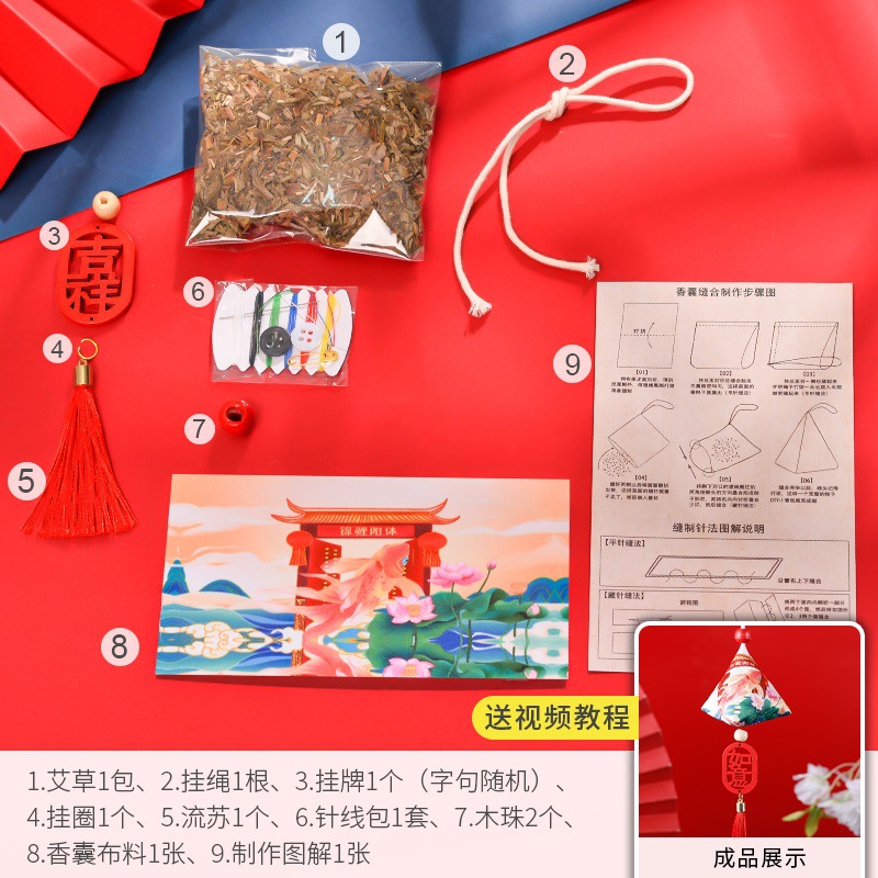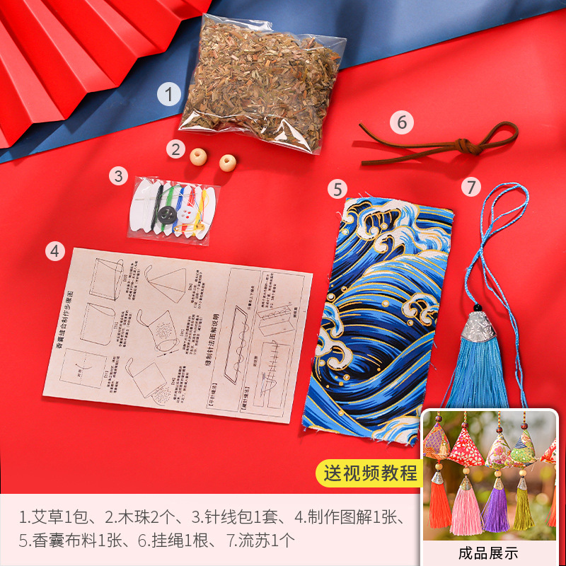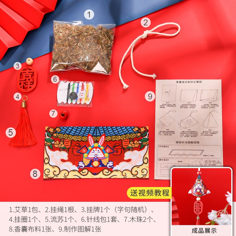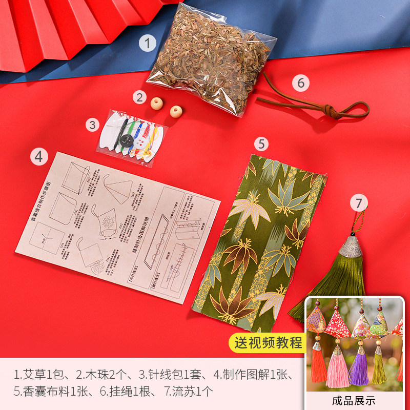 端午节香包香囊幼儿园diy材料包手工刺绣艾草自制粽子小挂件