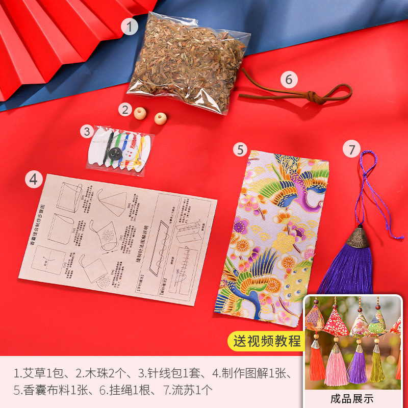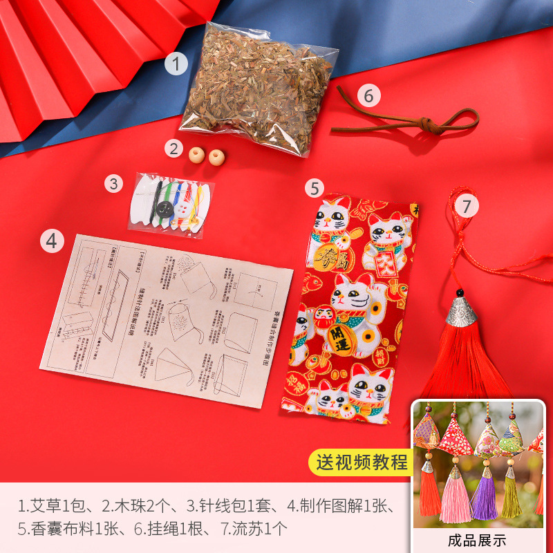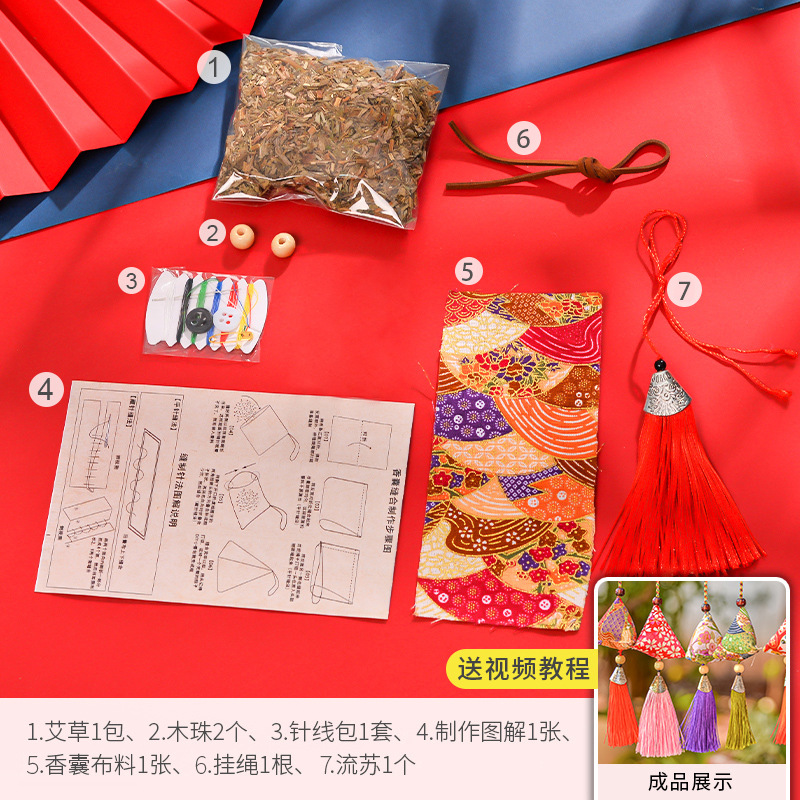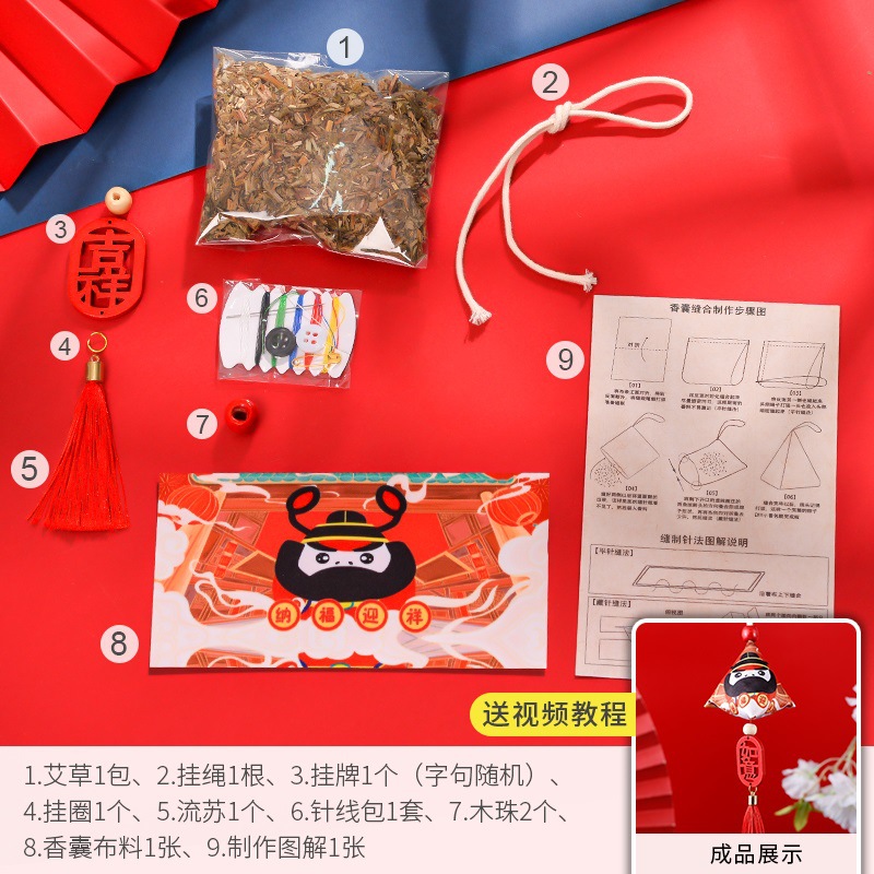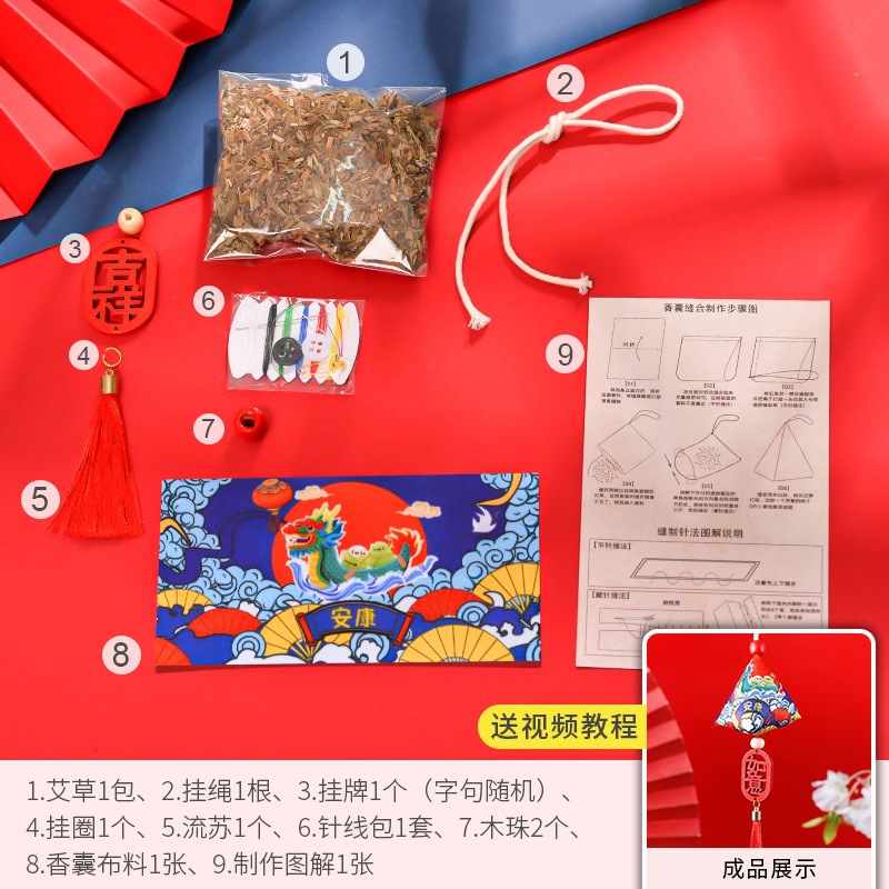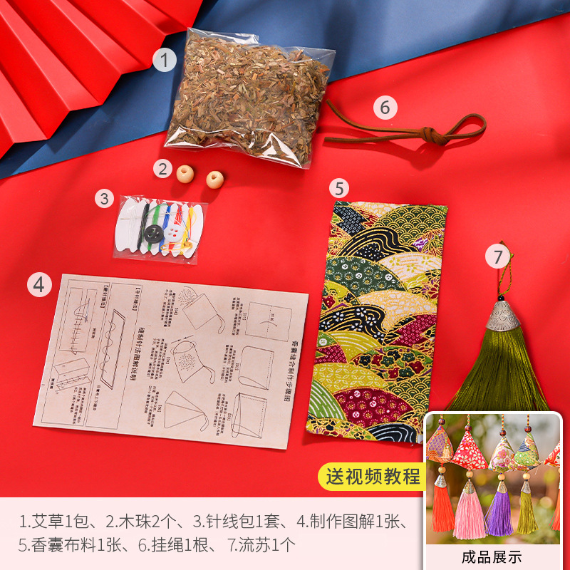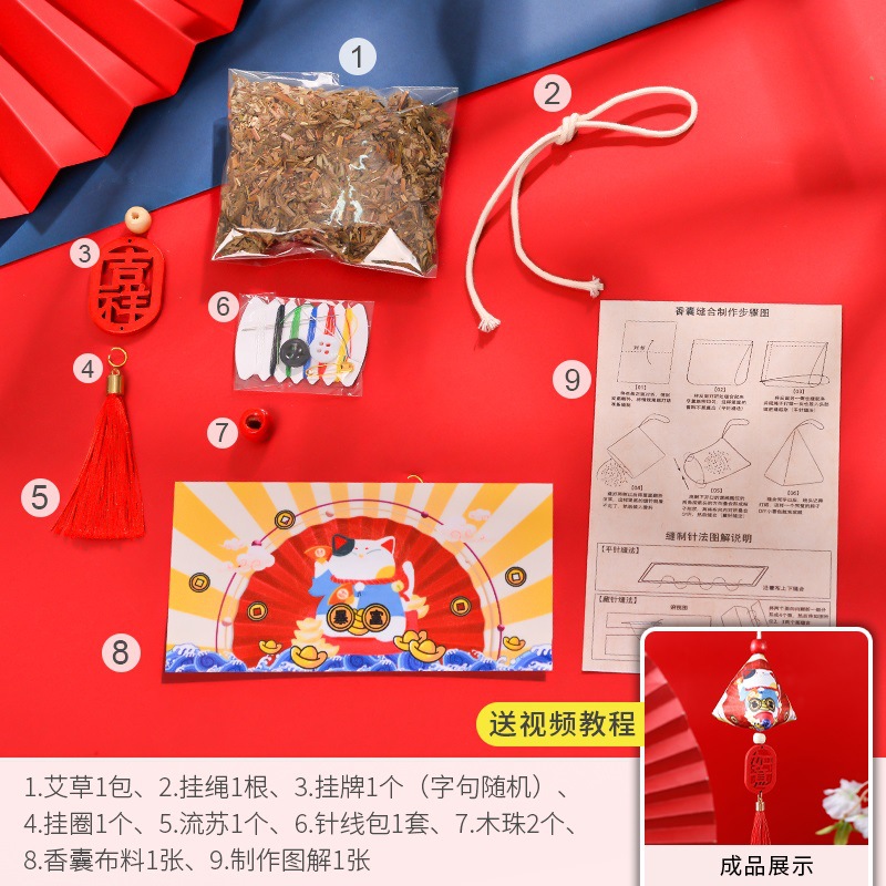 端午节香包香囊幼儿园diy材料包手工刺绣艾草自制粽子小挂件