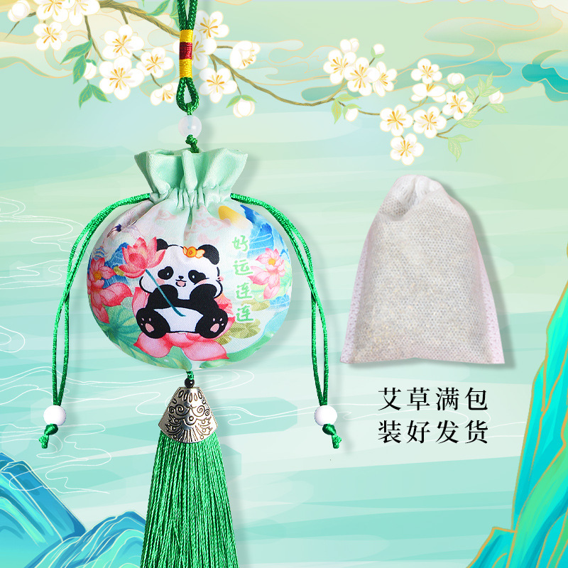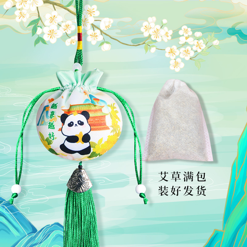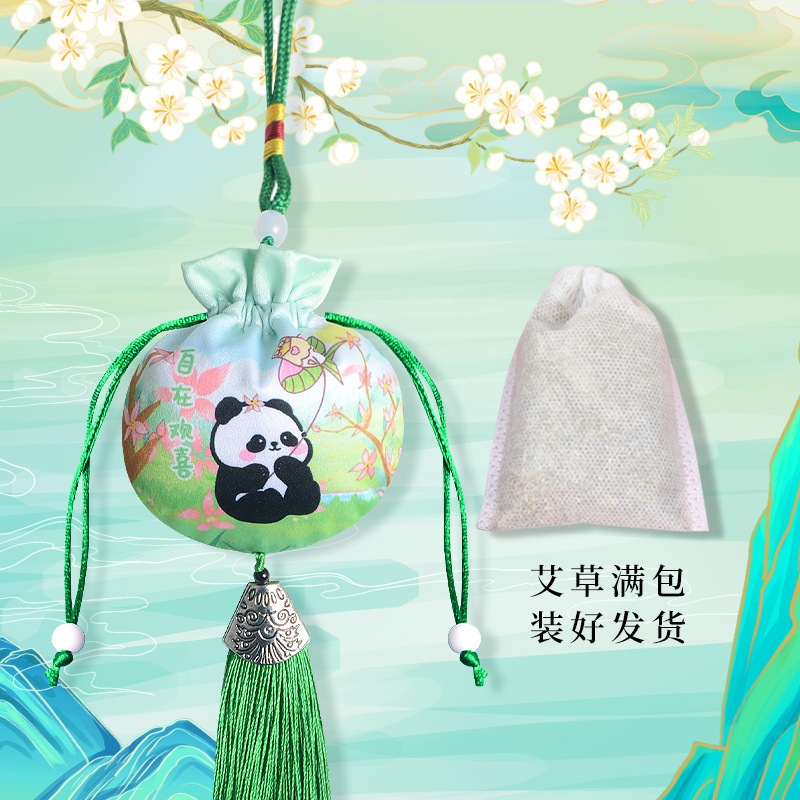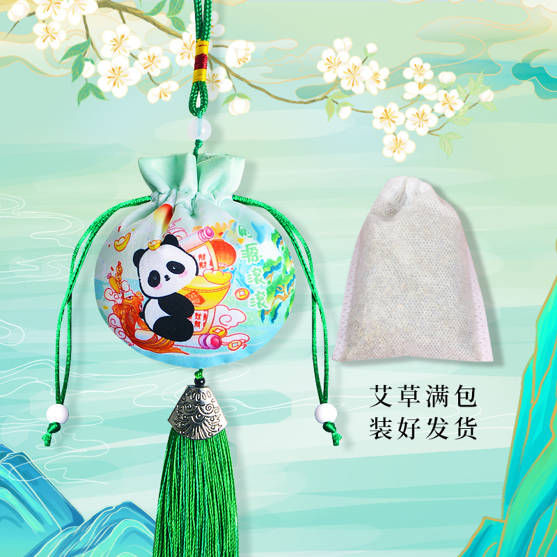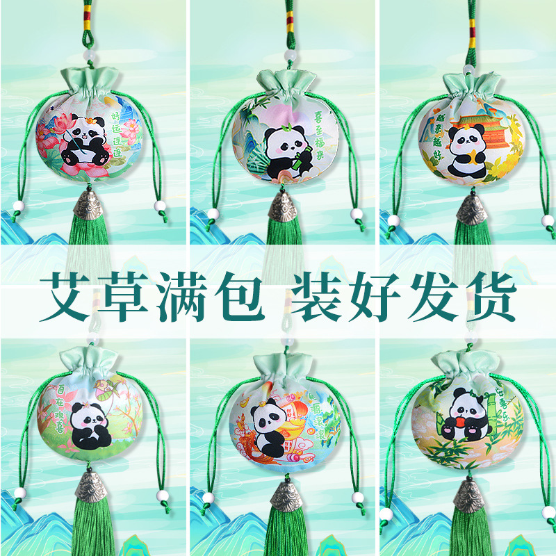 中式端午香包古风香囊车载挂件复古配饰景区礼品国风熊猫艾草香包
