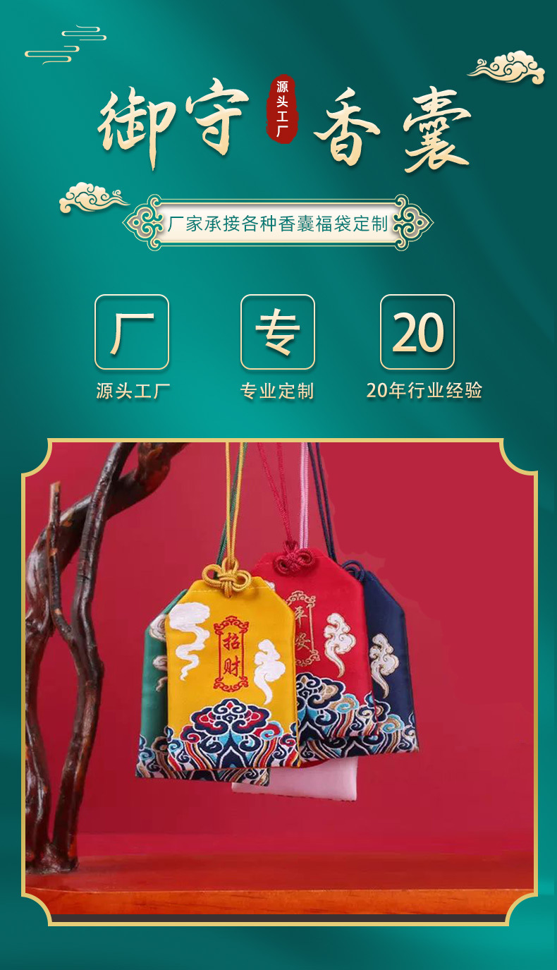 源头厂家御守香囊 端午节香包普陀寺祈福护身平安锦缎香囊福袋