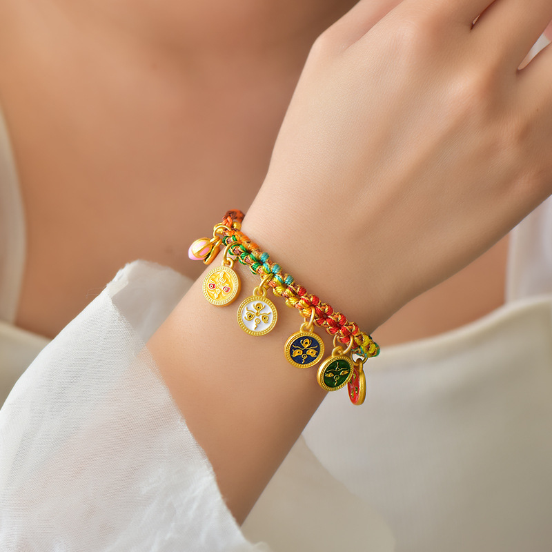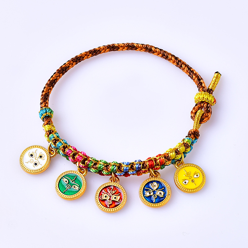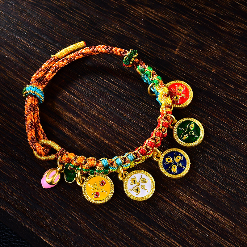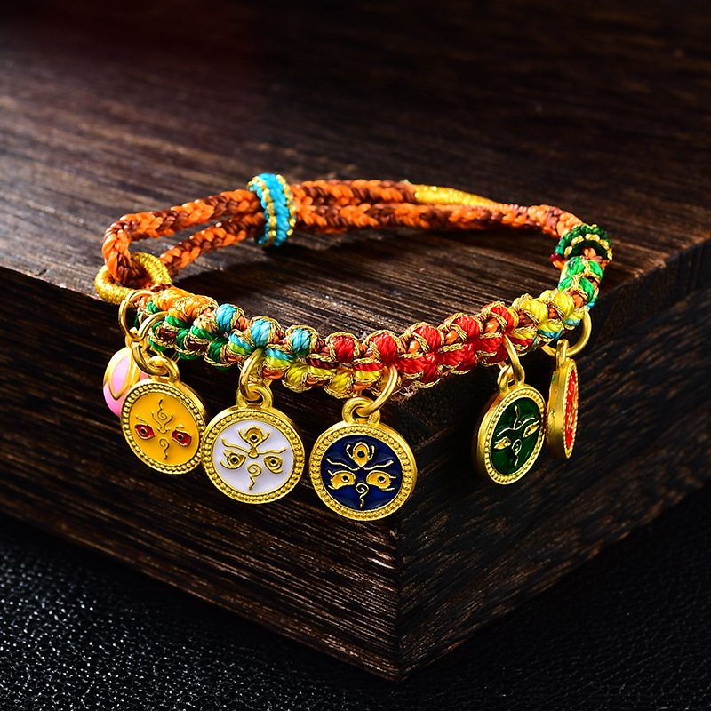 藏式手绳手工编织桃花结手链五路财神红绳手绳五彩线情侣款唐卡绳