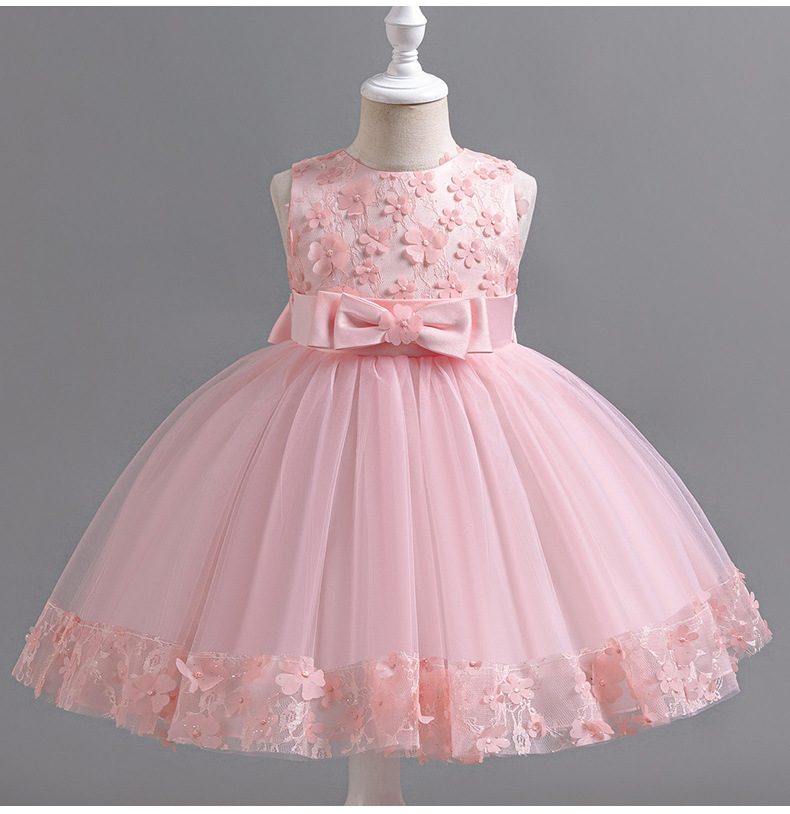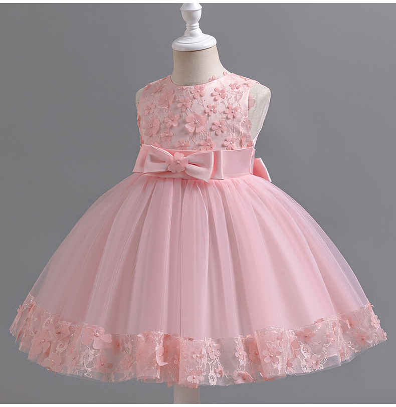 2024新款跨境外贸女童公主裙小女孩网纱礼服表演服装蕾丝连衣裙