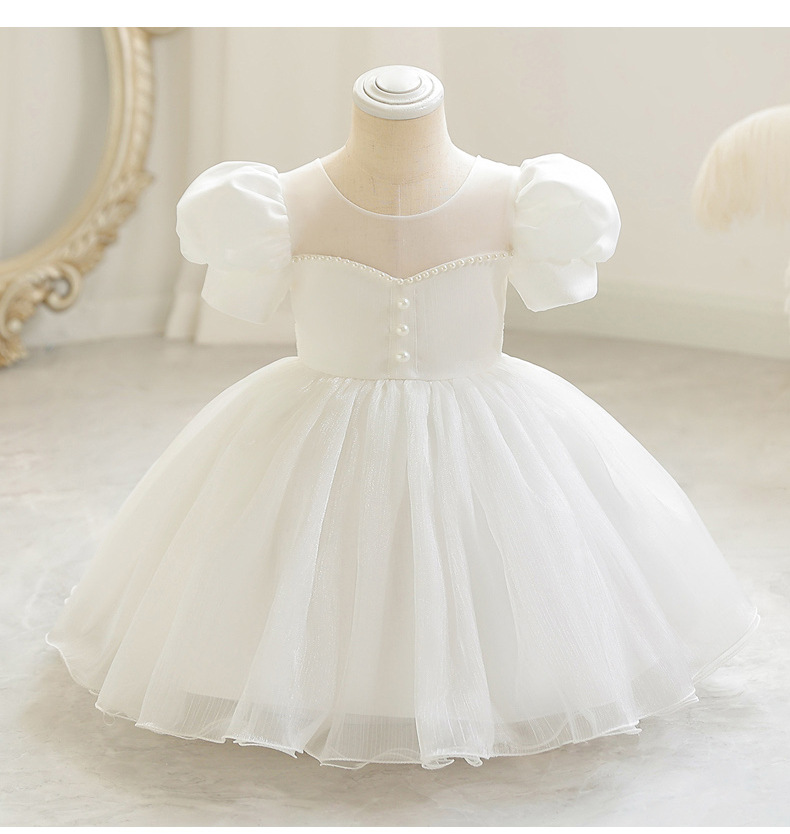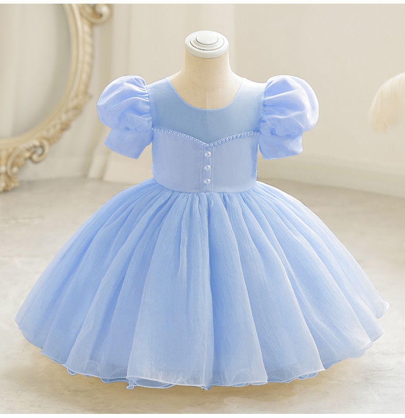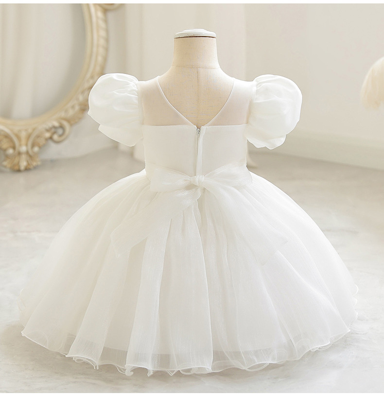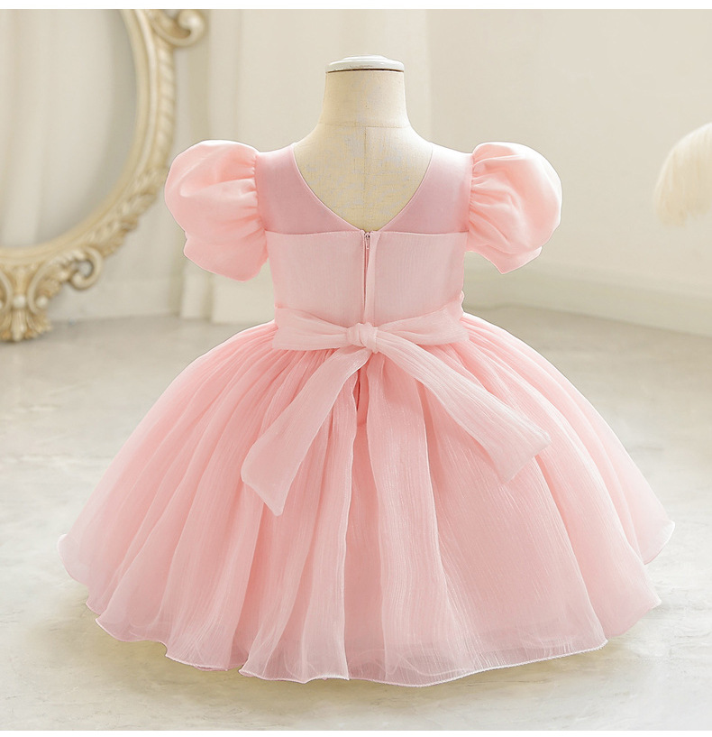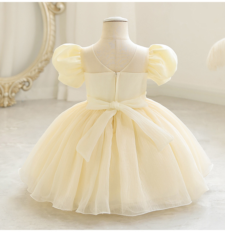 女童宫廷风短款礼服裙小童公主裙泡泡袖网纱蓬蓬裙小主持人演出