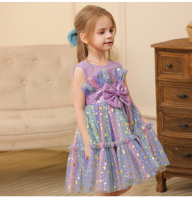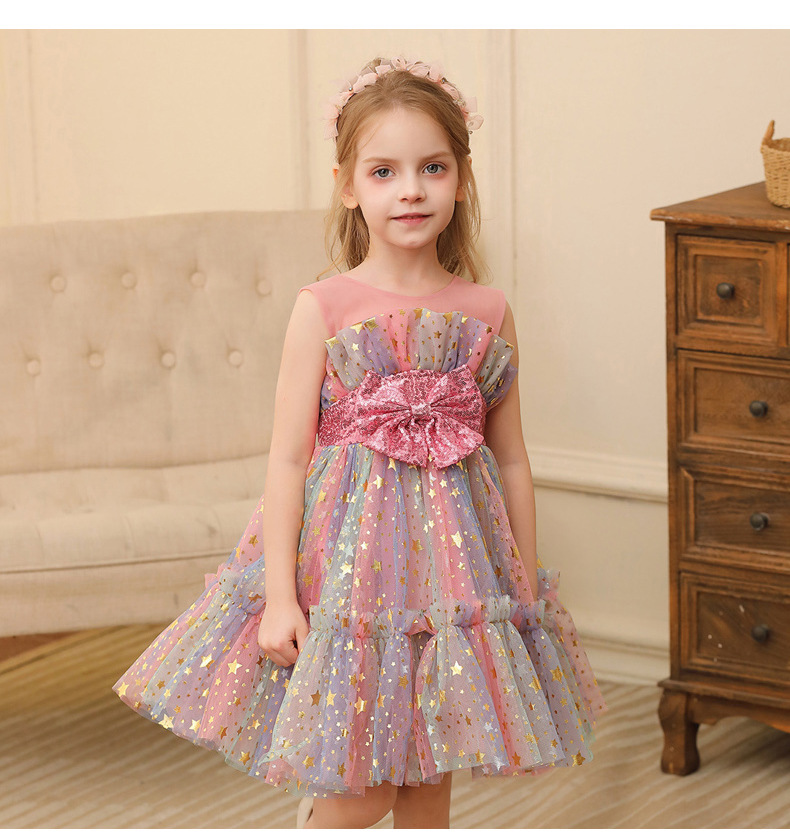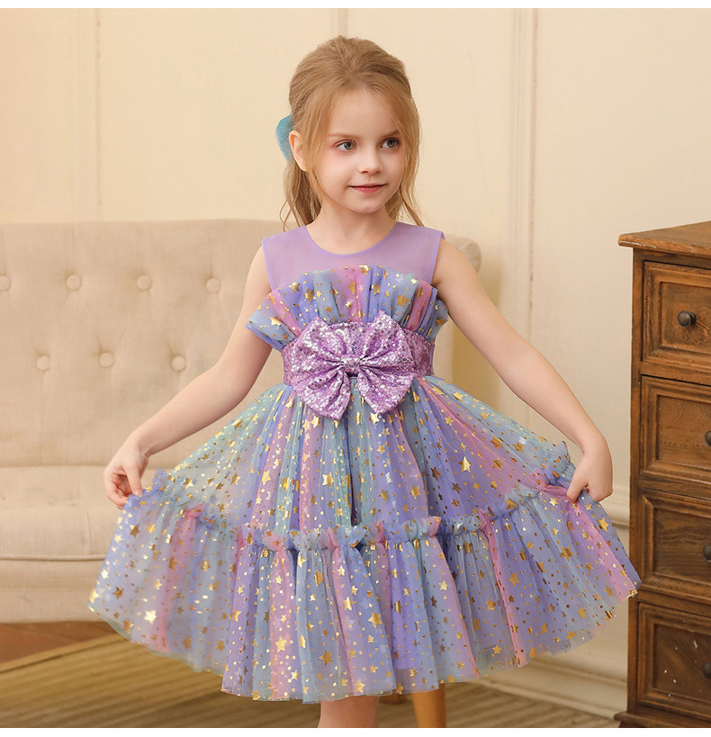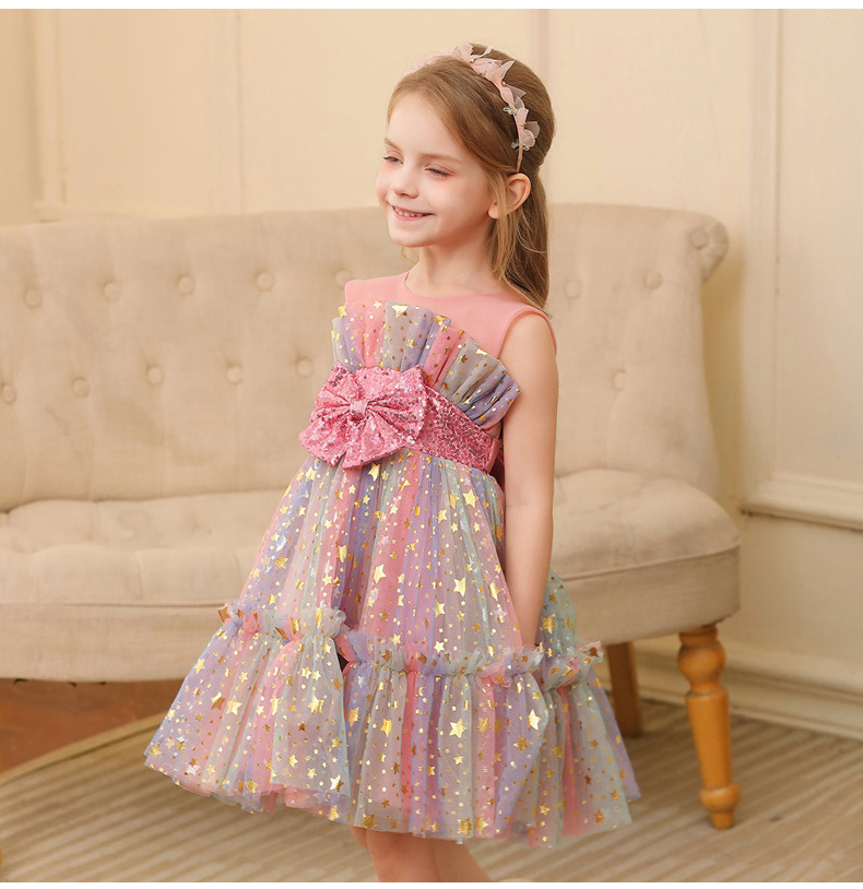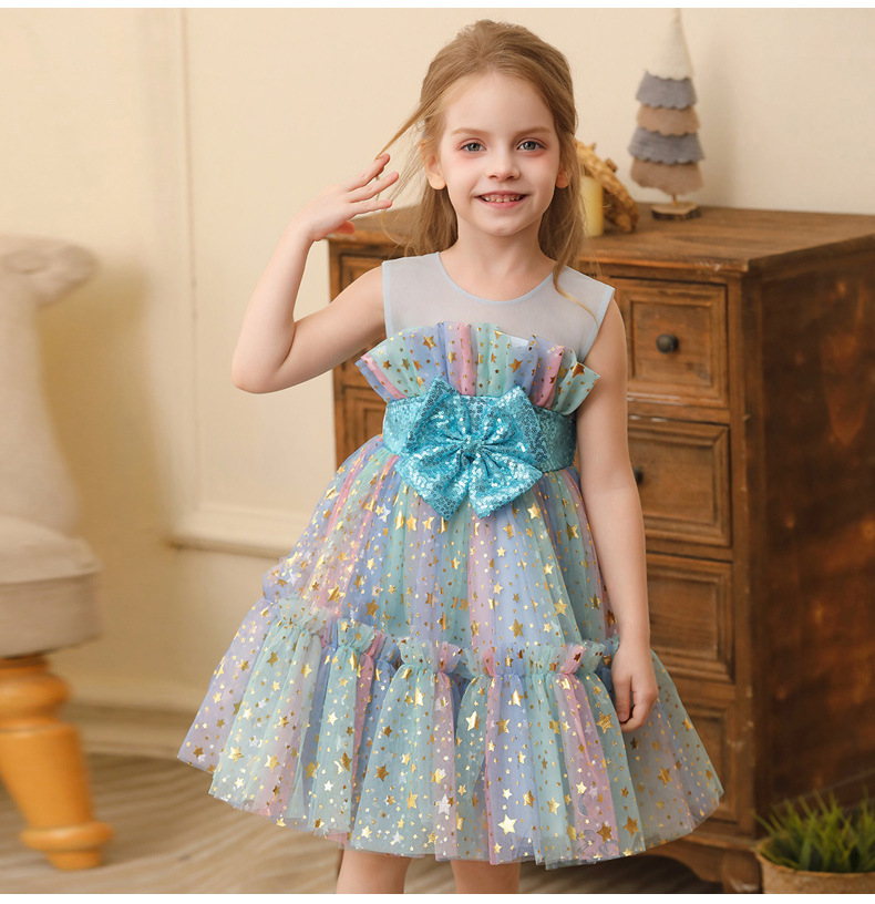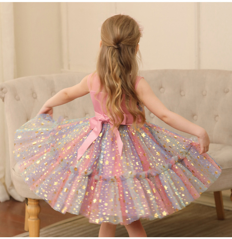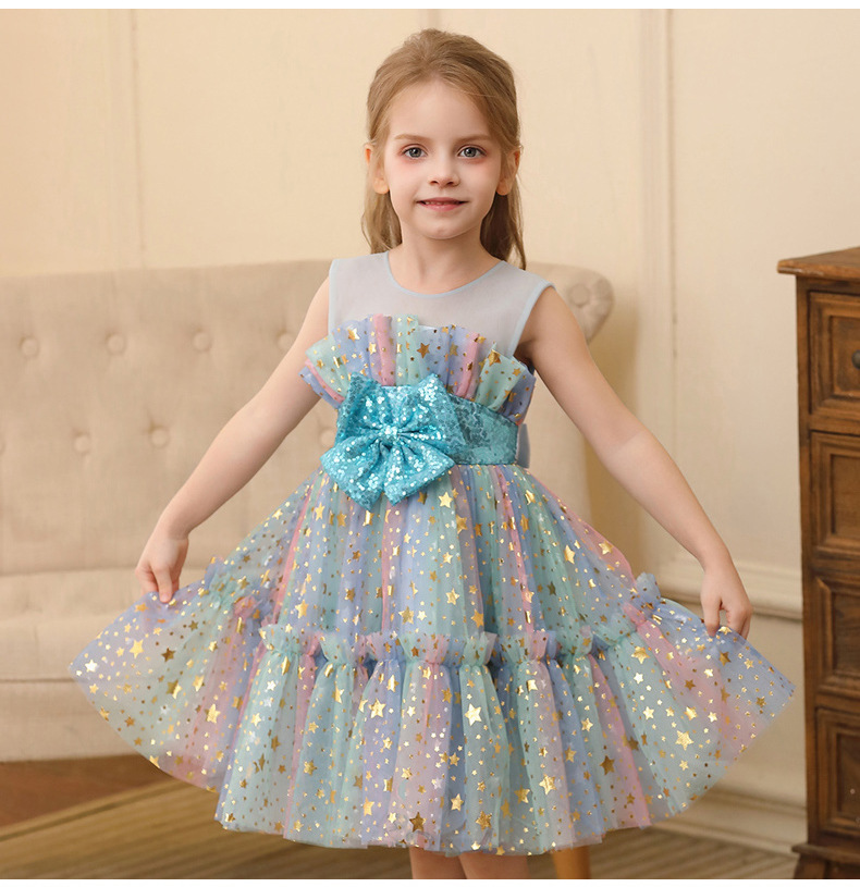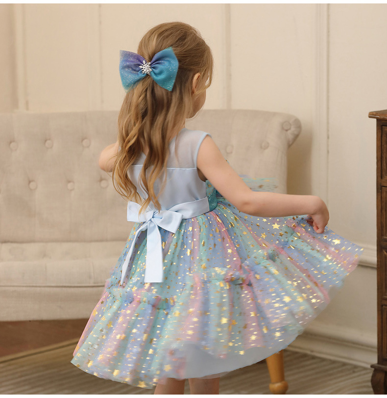 2024新款跨境外贸女童公主裙小女孩网纱礼服表演服装蕾丝连衣裙