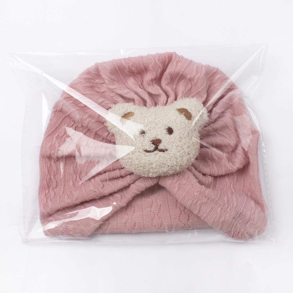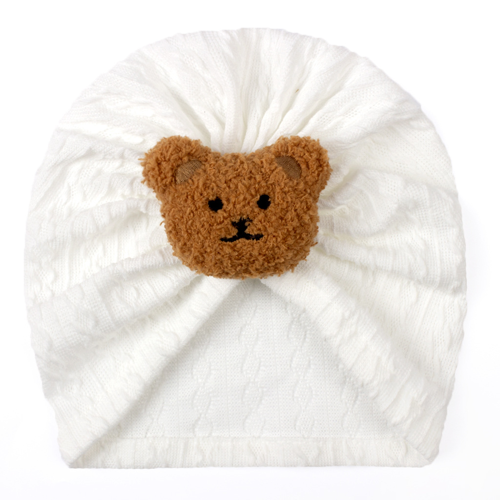 欧美春秋季新款儿童提花套头帽 可爱宝宝小熊护头巾帽 婴儿帽子