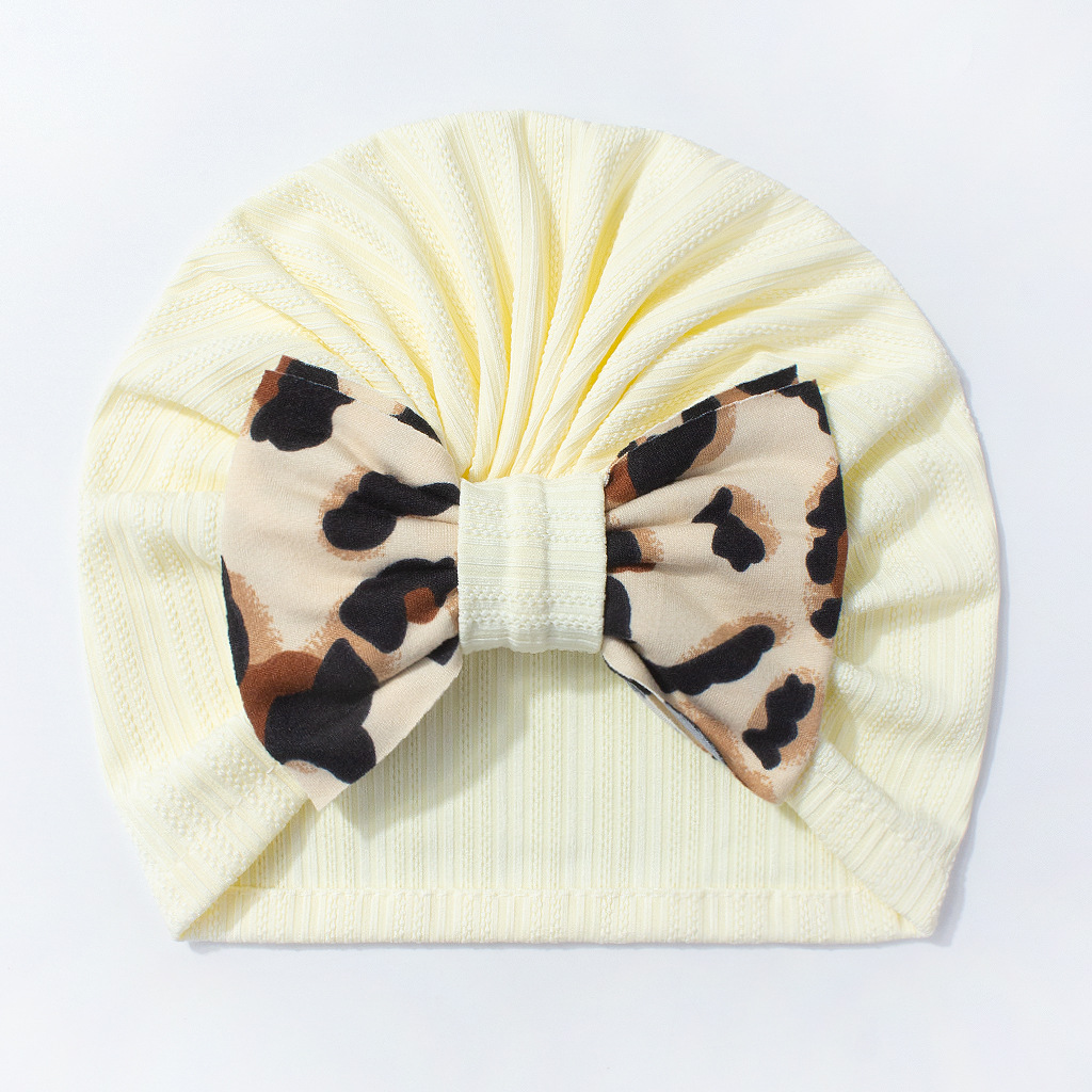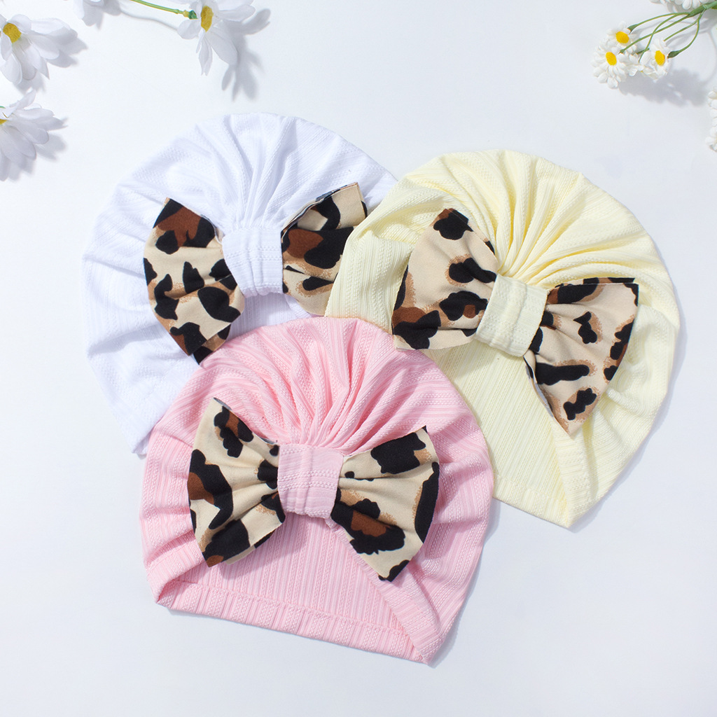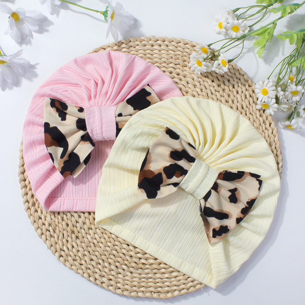 欧美新款宝宝纯色帽子 可爱舒适豹纹蝴蝶结婴儿胎帽 跨境儿童帽子