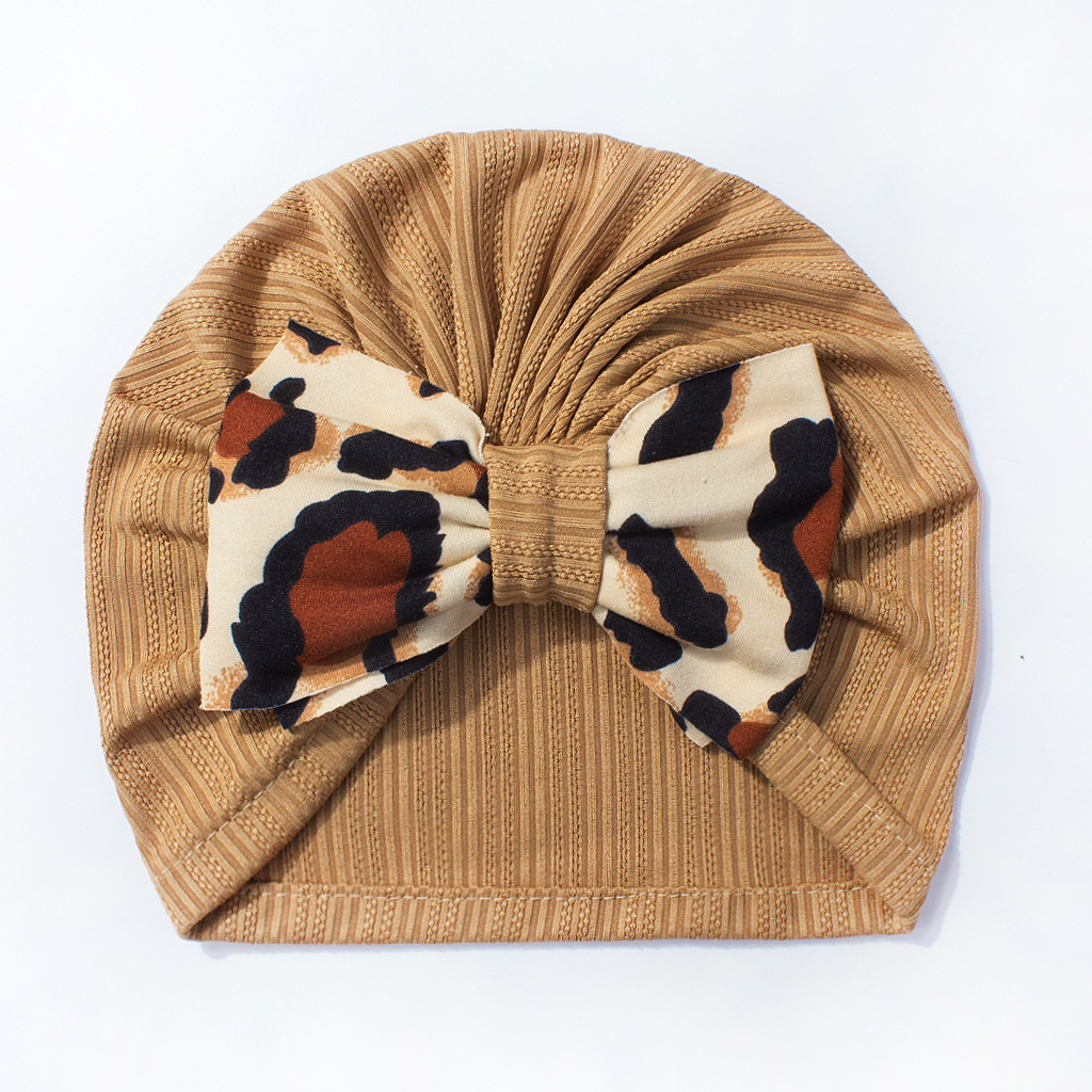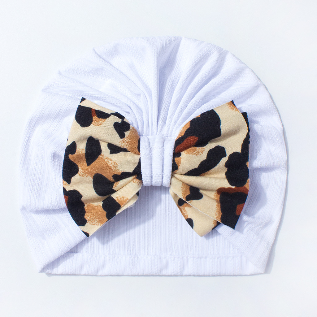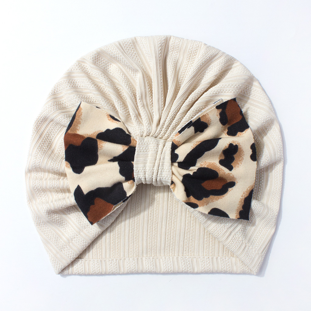 欧美新款宝宝纯色帽子 可爱舒适豹纹蝴蝶结婴儿胎帽 跨境儿童帽子