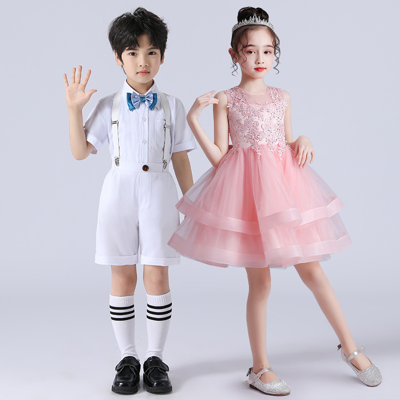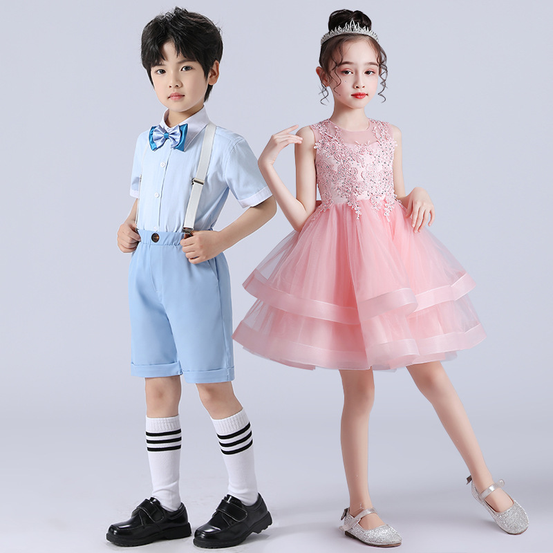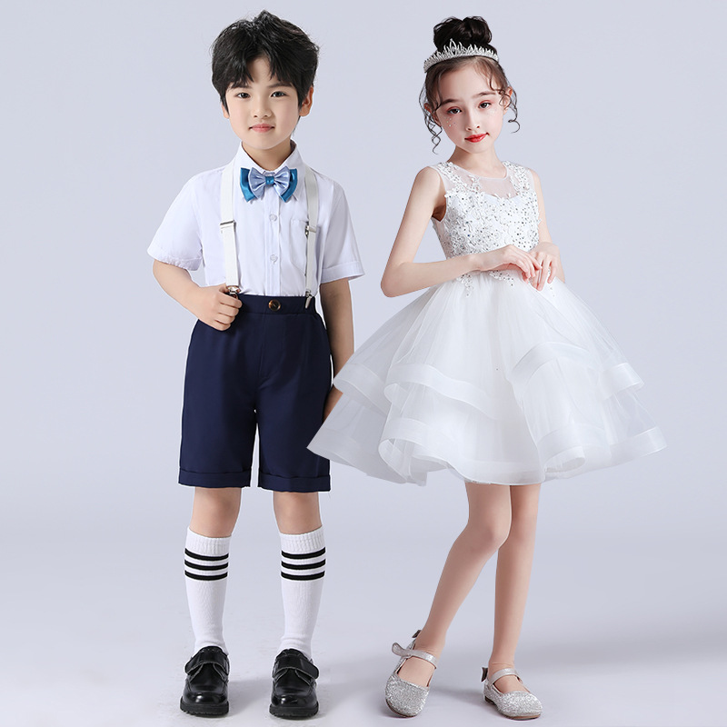 男童短袖衬衫+短裤两件小西服套装3-13岁儿童幼儿园男女童演出服