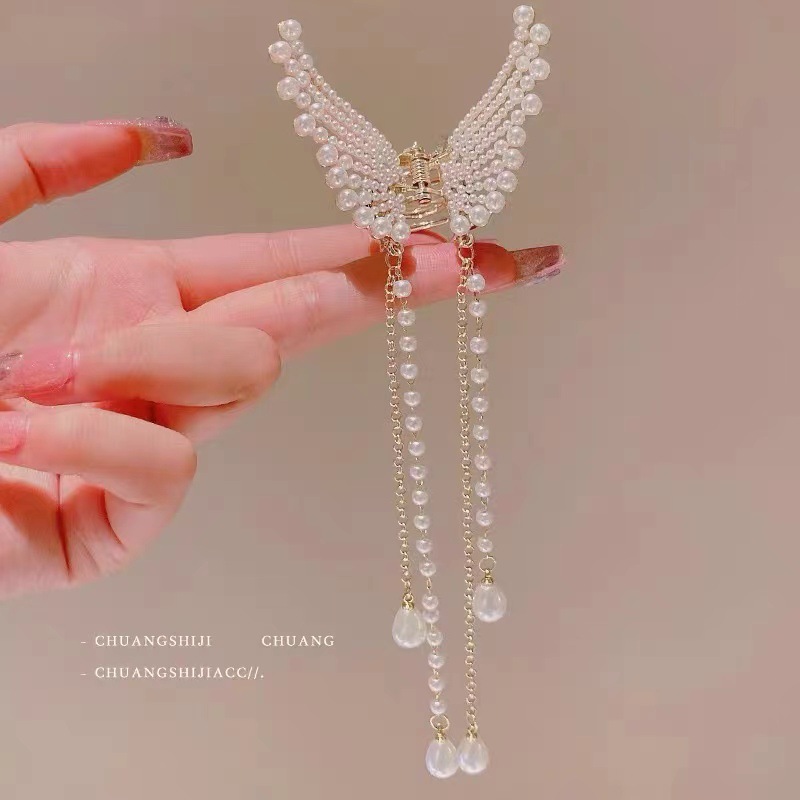 新款流苏珍珠蝴蝶抓夹半扎发夹盘发头饰