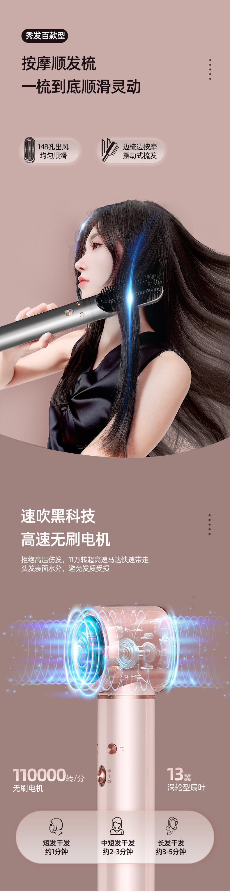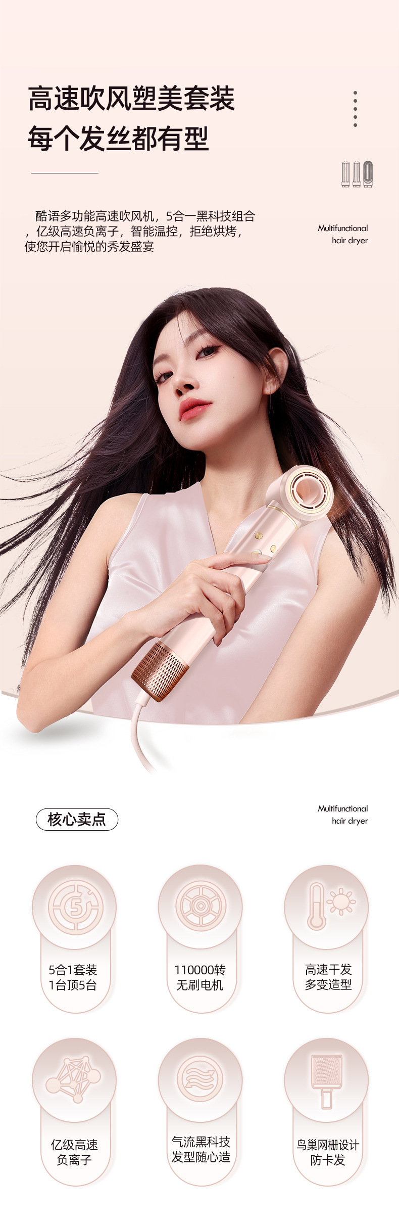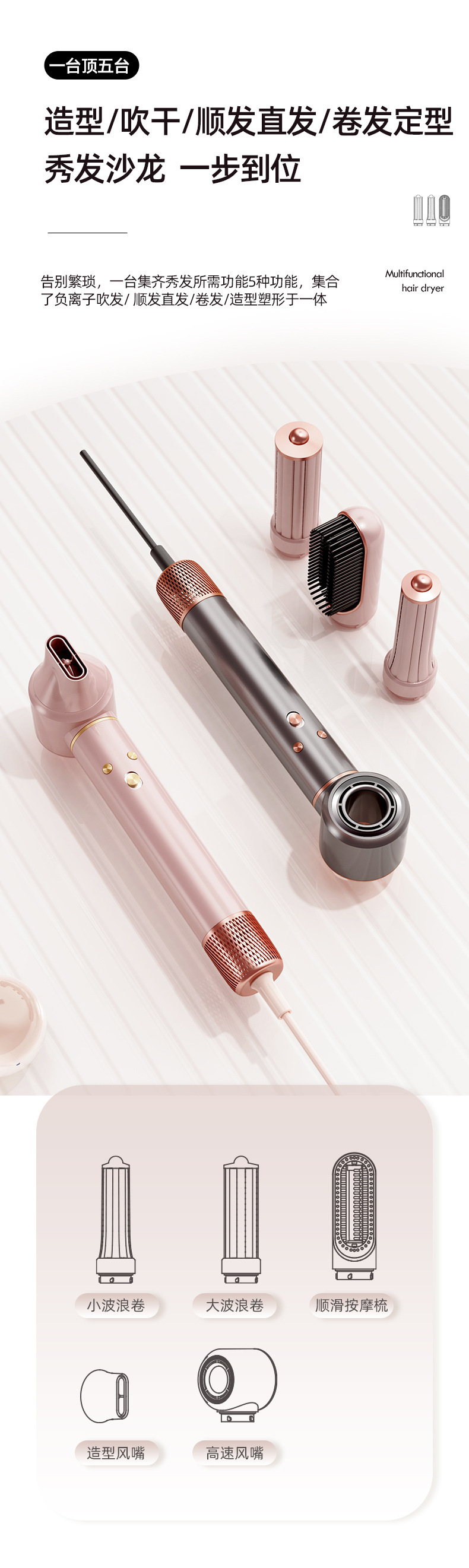 新款跨境多合一高速无叶吹风机负离子多功能吹风五件套卷发直发器