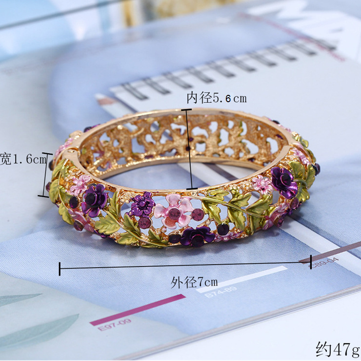 直播爆款手镯景泰蓝民族风饰品女镂空纯手制彩绘合金镯子服装手镯