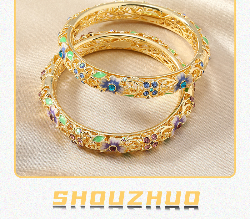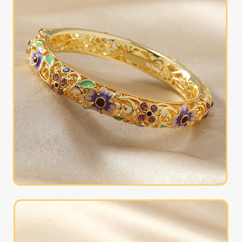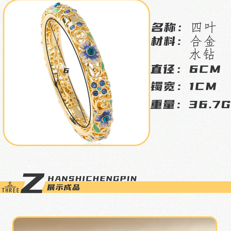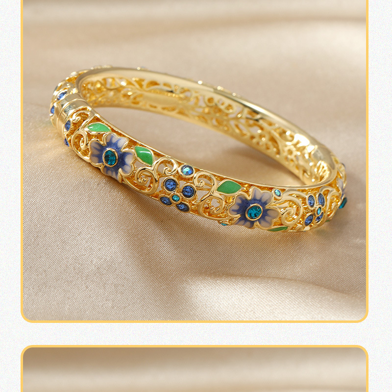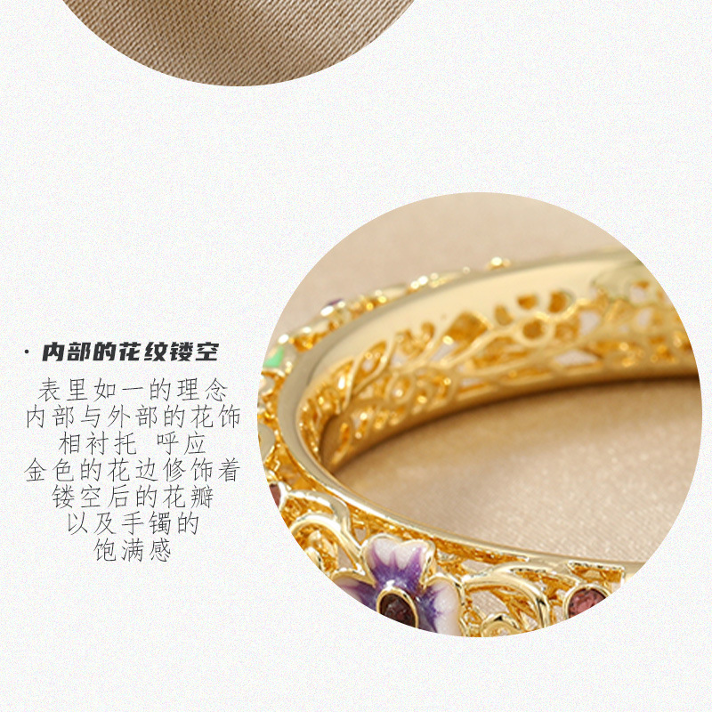 网红爆款景泰蓝手镯时尚个性民族风珐琅镂空掐丝镀真金旗袍首饰