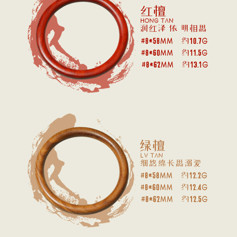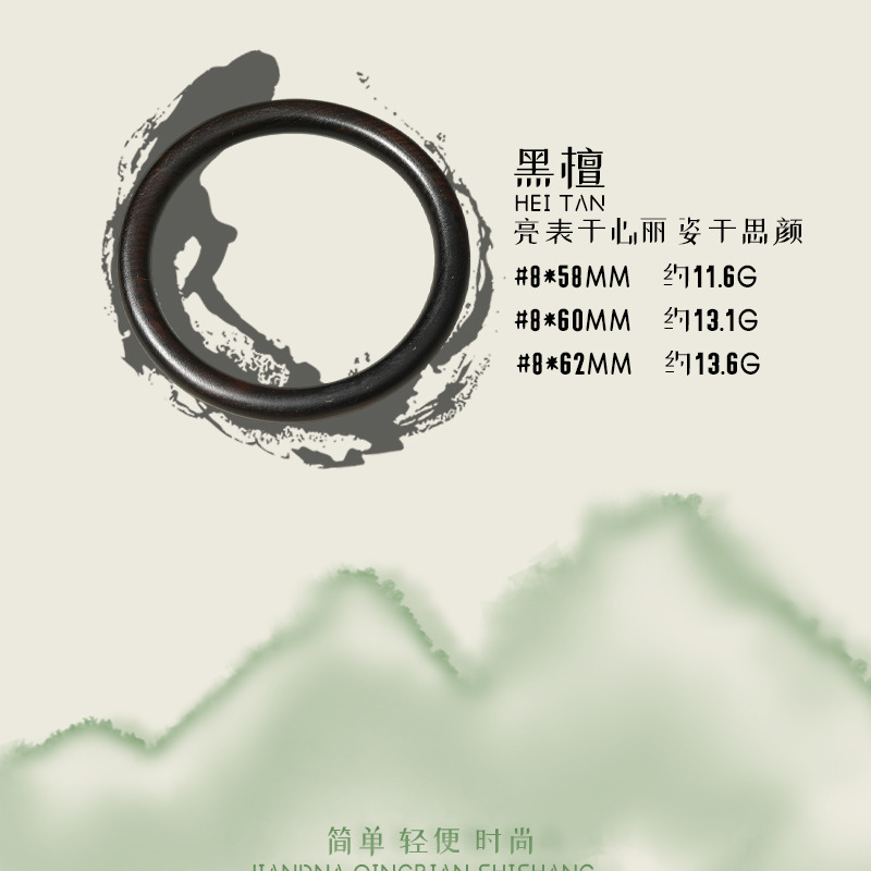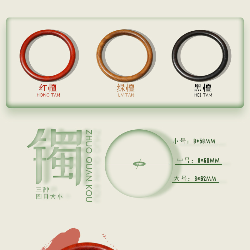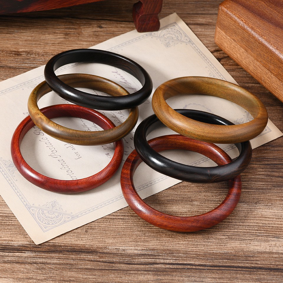 直播爆款中国风手镯绿檀女士手饰品复古民族风简约手环实木镯子
