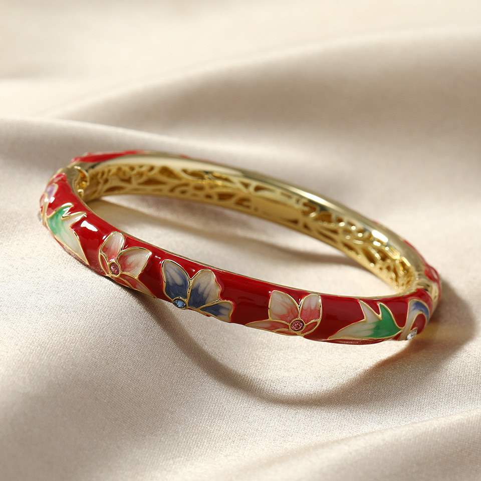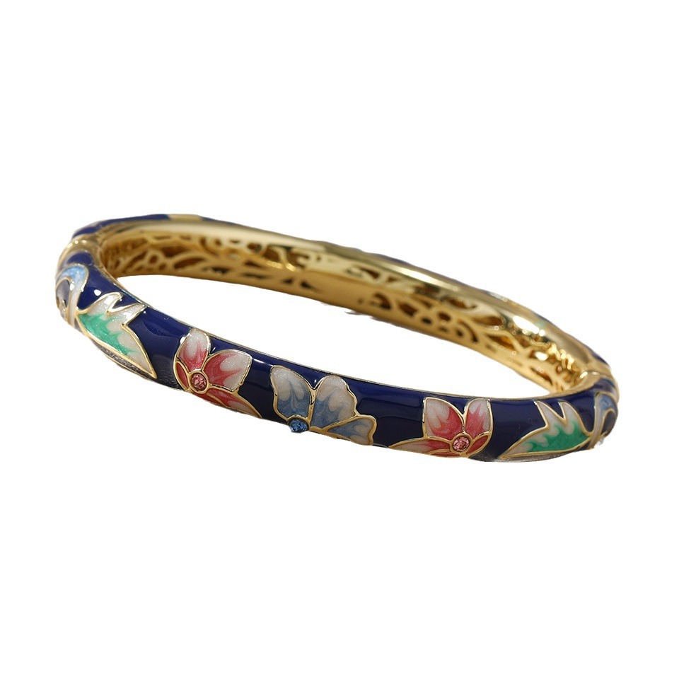 新款国风珐琅景泰蓝花朵镂空双层细款开口女手镯时尚复古民族风