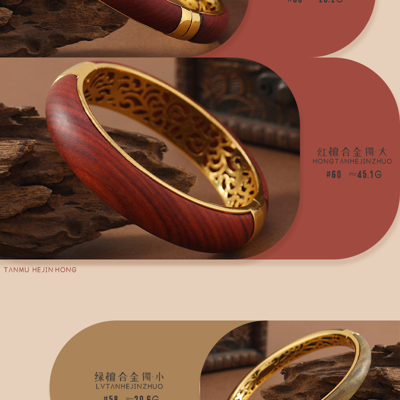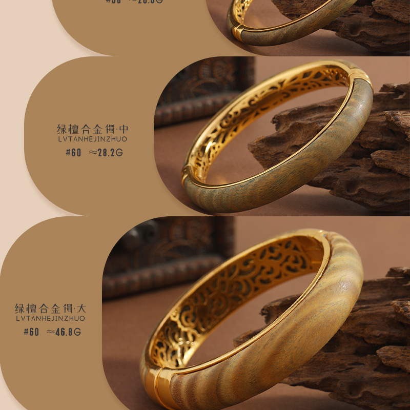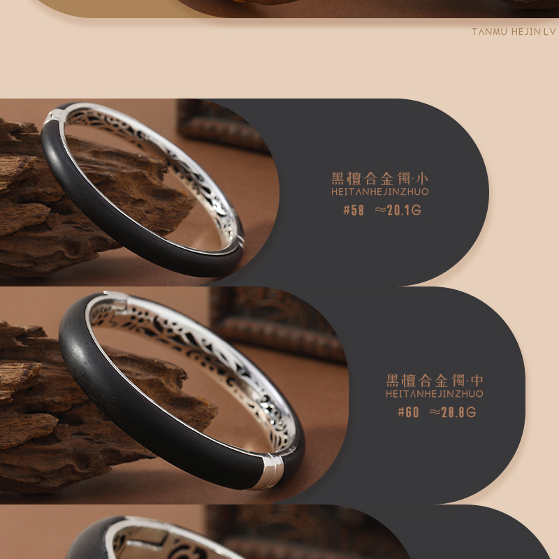 新中式檀木绿檀黑檀木男女款饰品手镯文艺复古民族风简约手环首饰