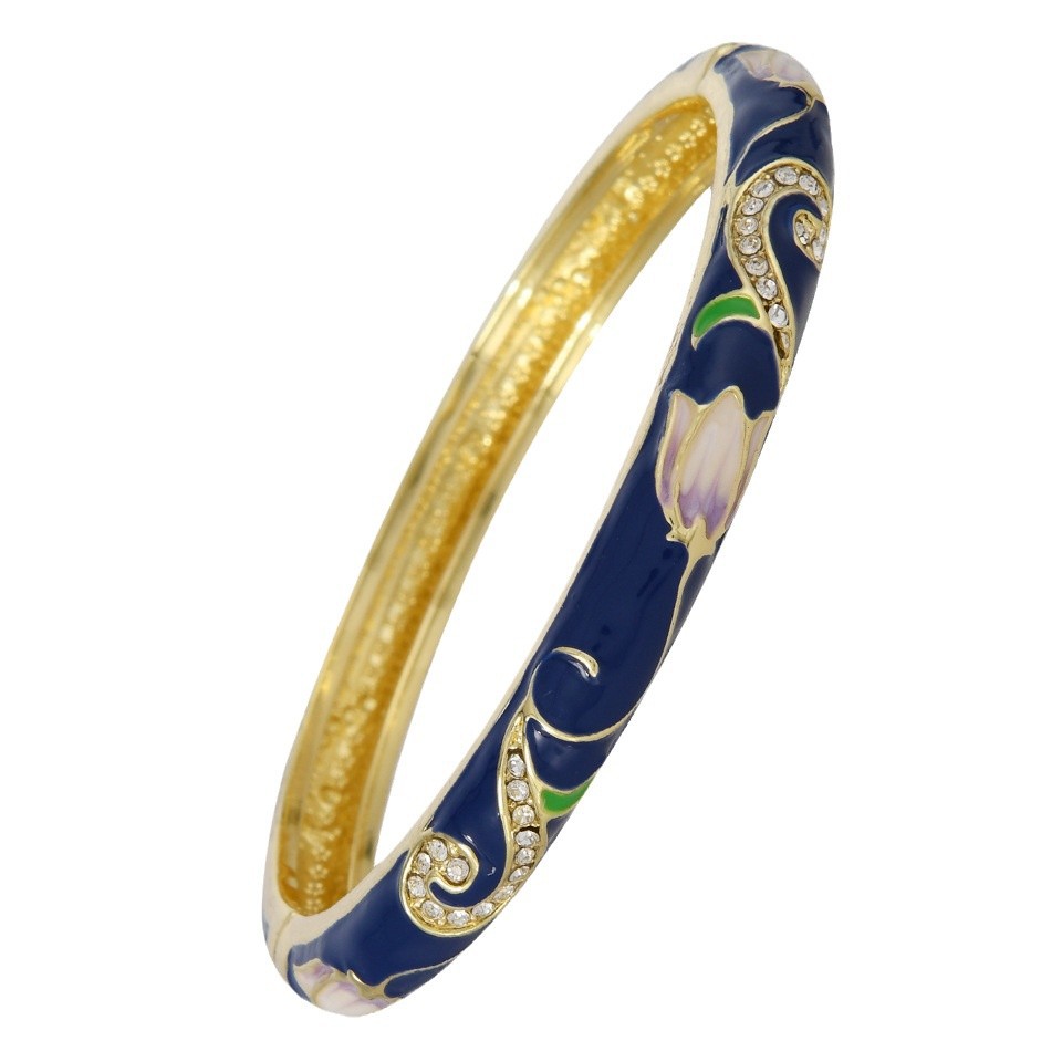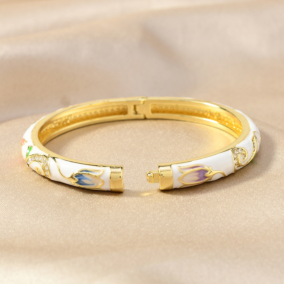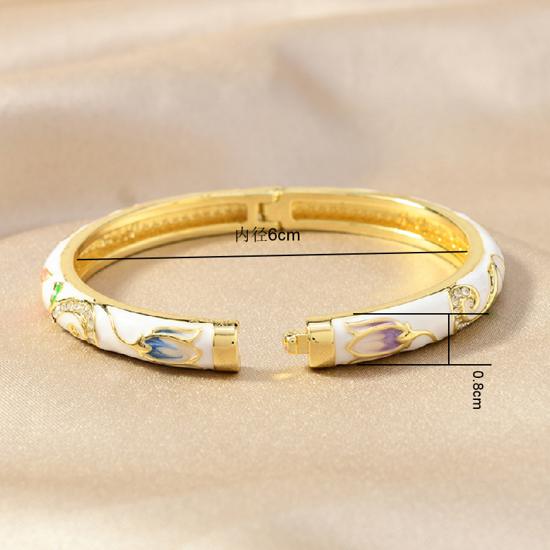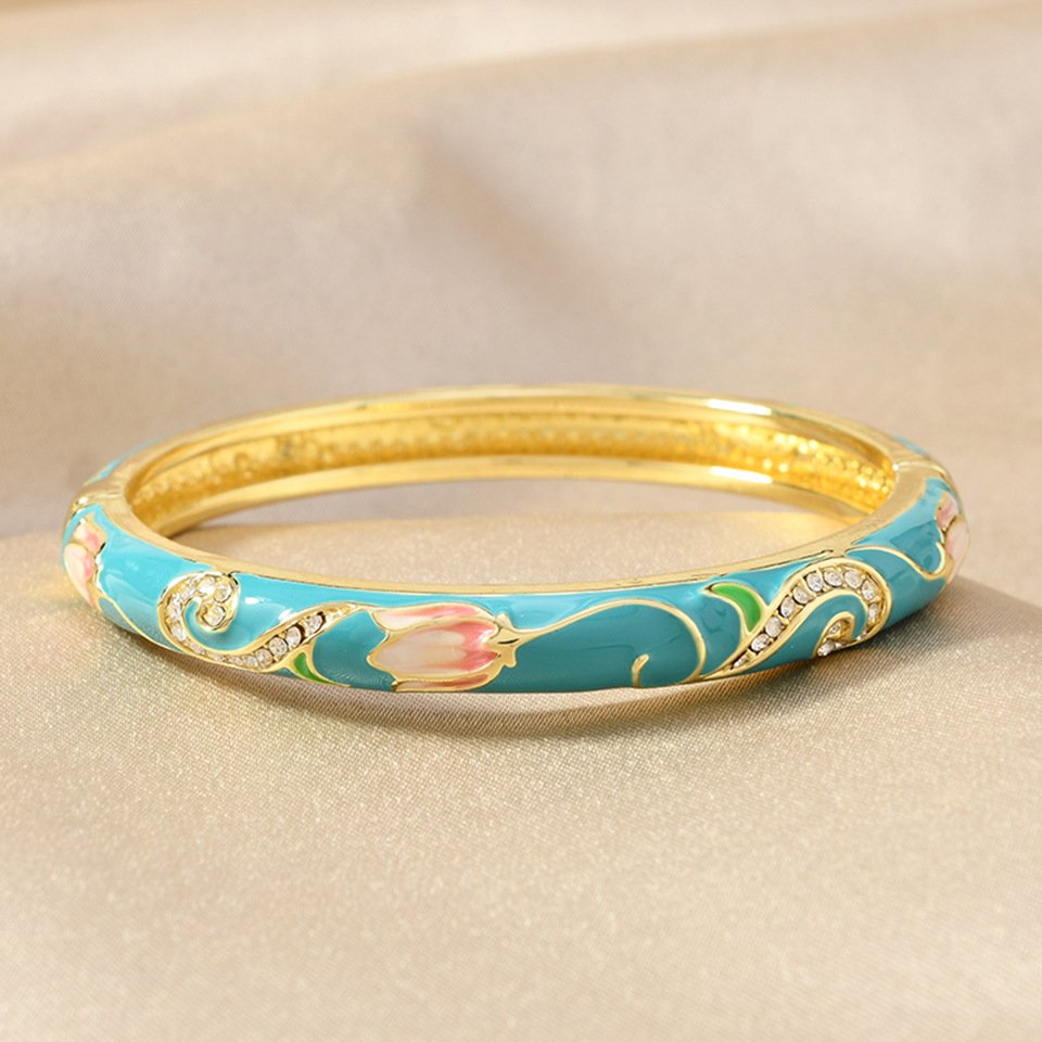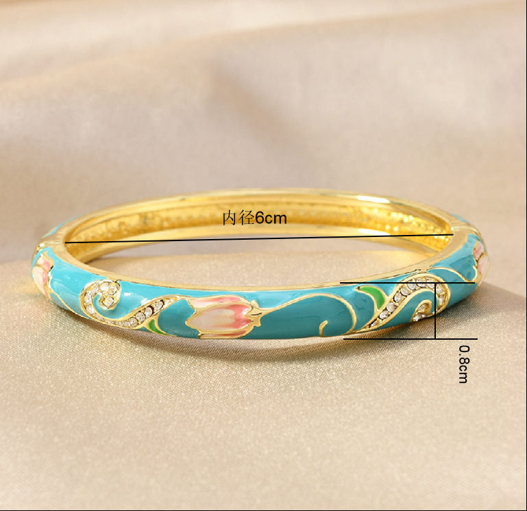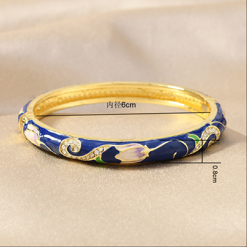 网红爆款景泰蓝单层滴油镶钻花纹珐琅开口手镯汉服故宫旅游纪念品
