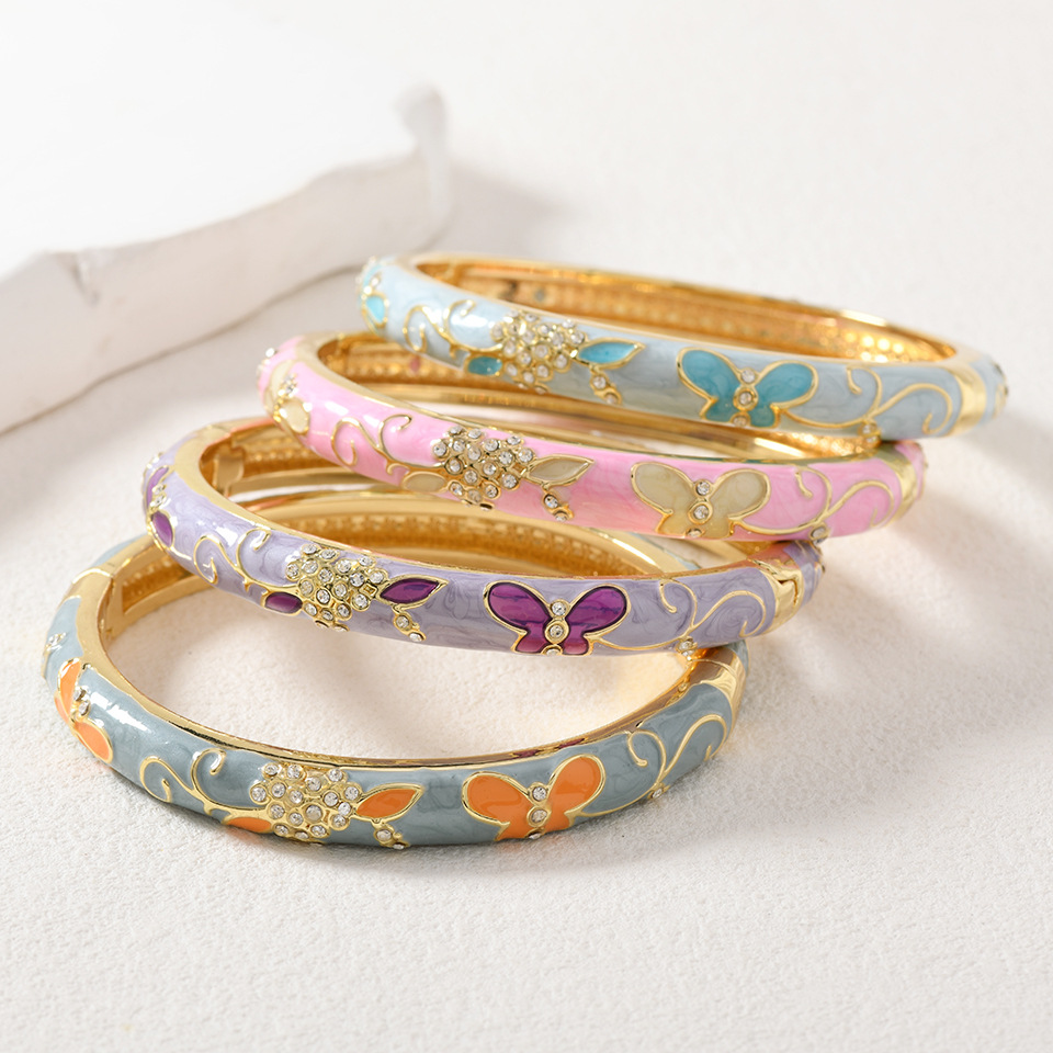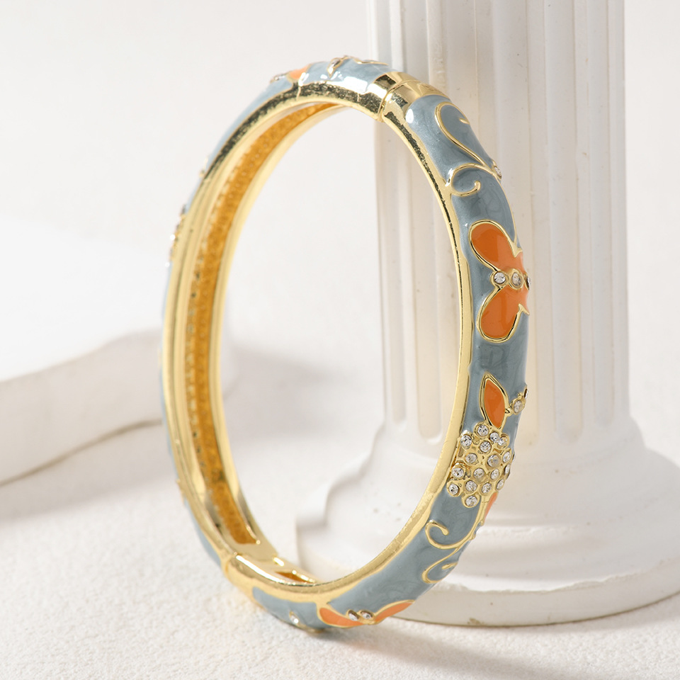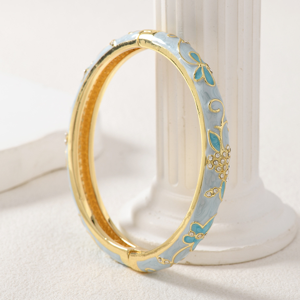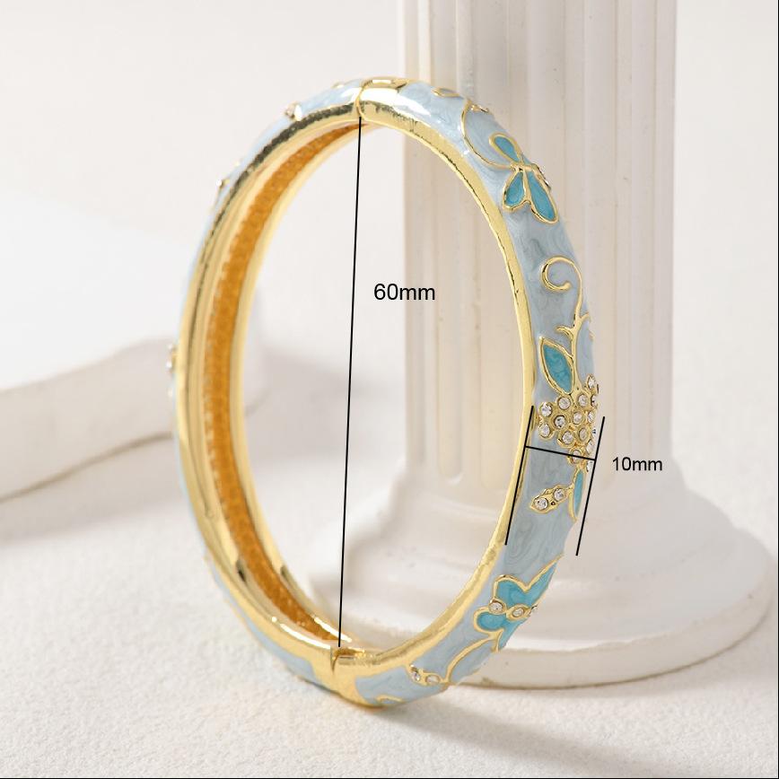 新中式景泰蓝珐琅滴油花纹双层手镯甜美时尚轻奢高级感首饰品