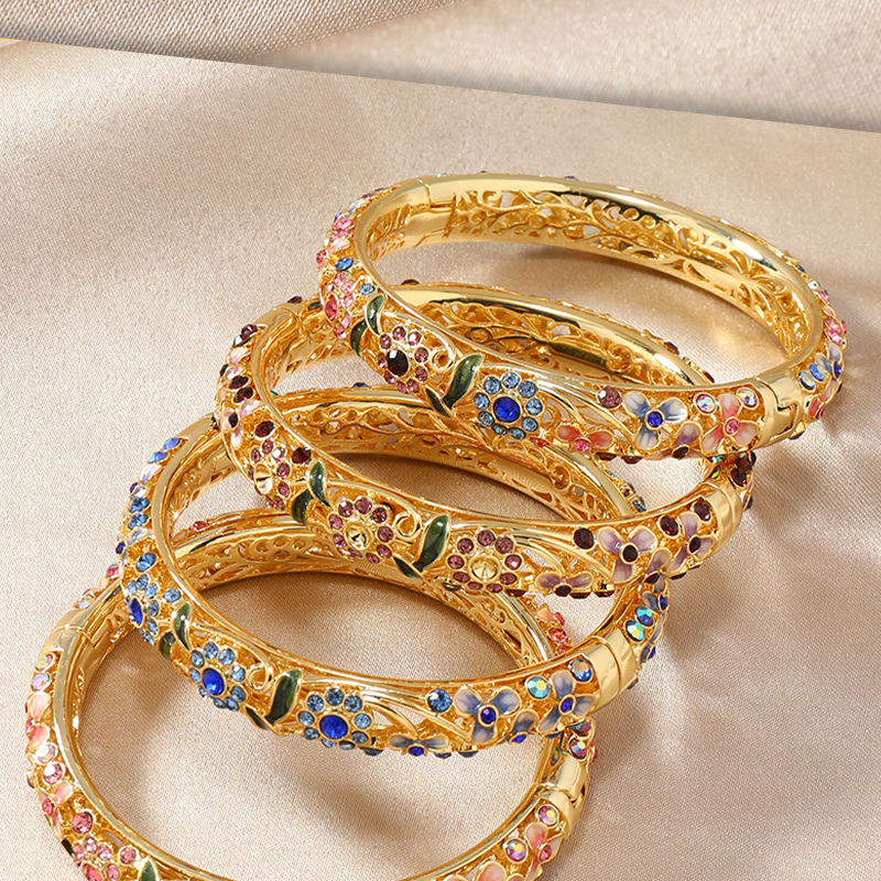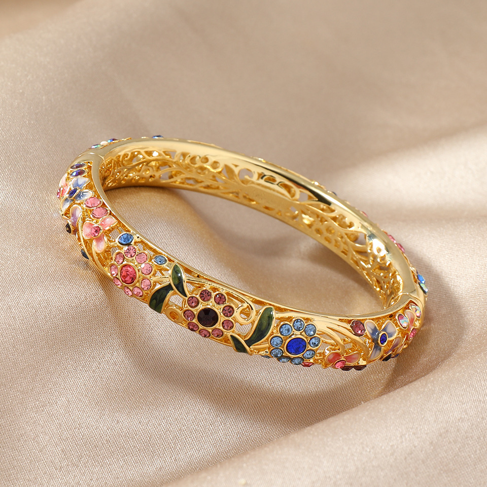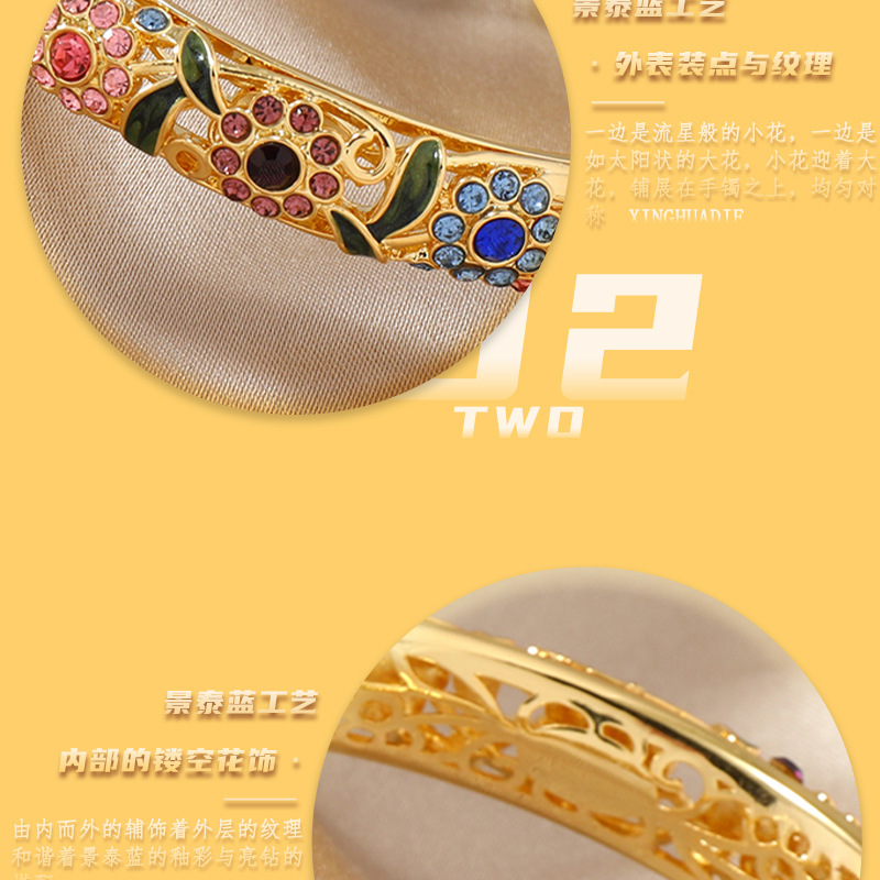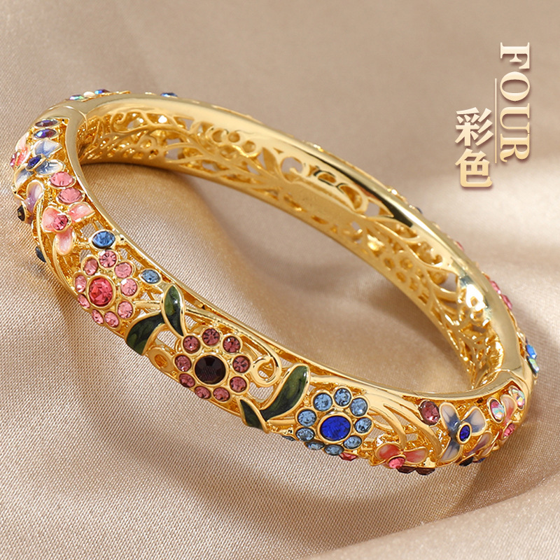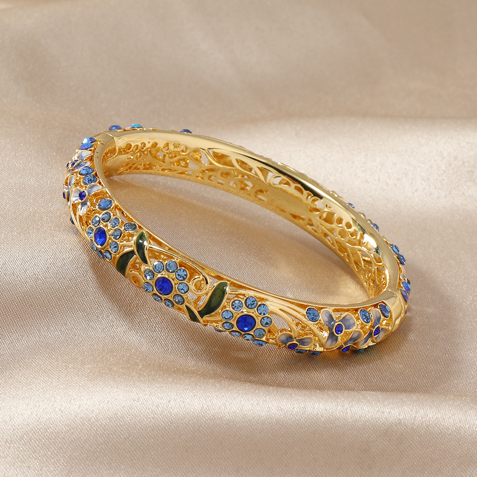复古民族满钻款景泰蓝老北京手镯开口珐琅旗袍镯子时尚古风送礼手