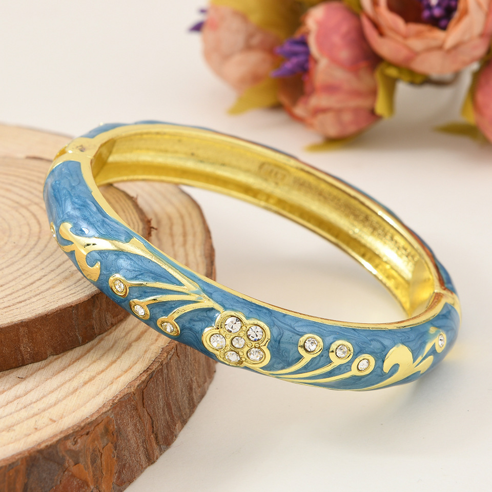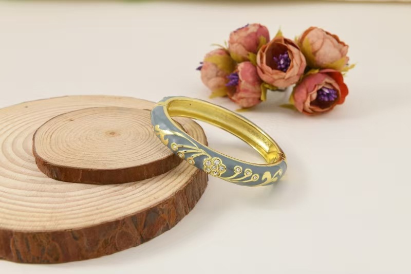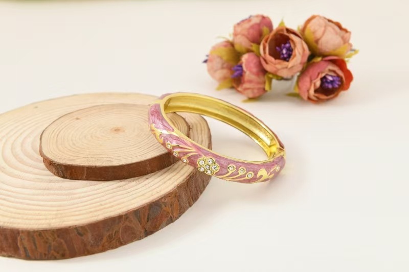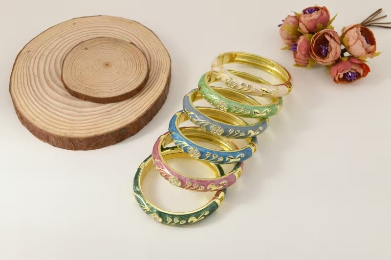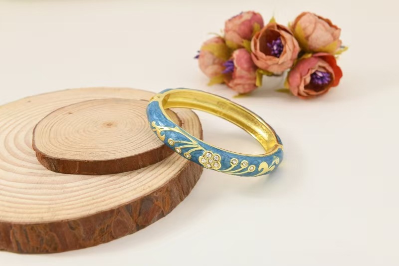 老北京景泰蓝手镯开口细小花镯子掐丝珐琅彩时尚手环故宫同款