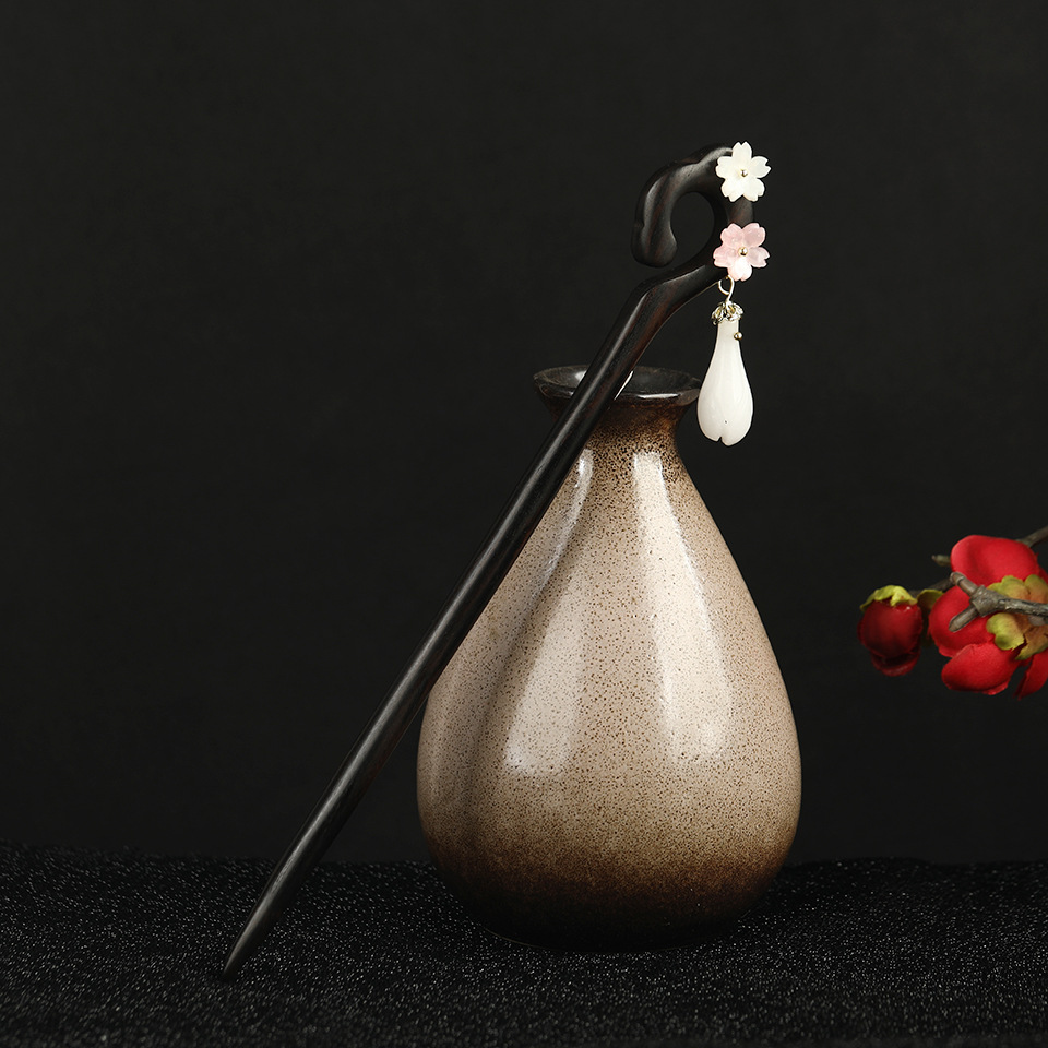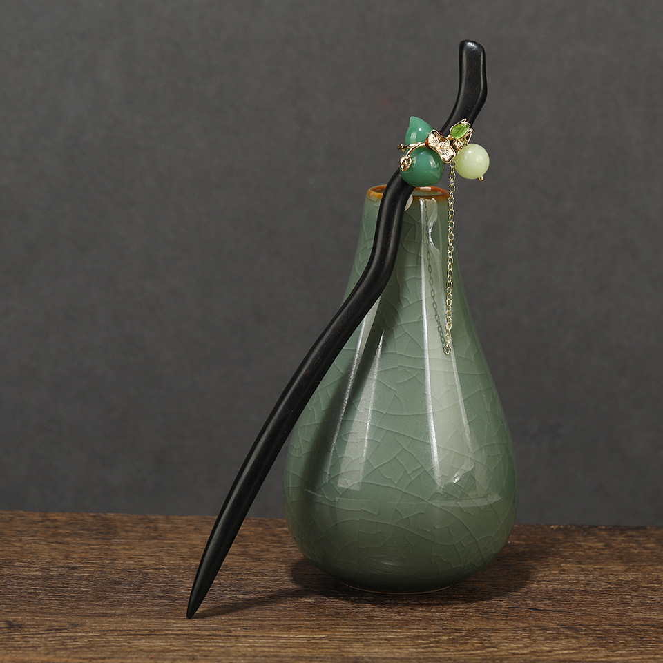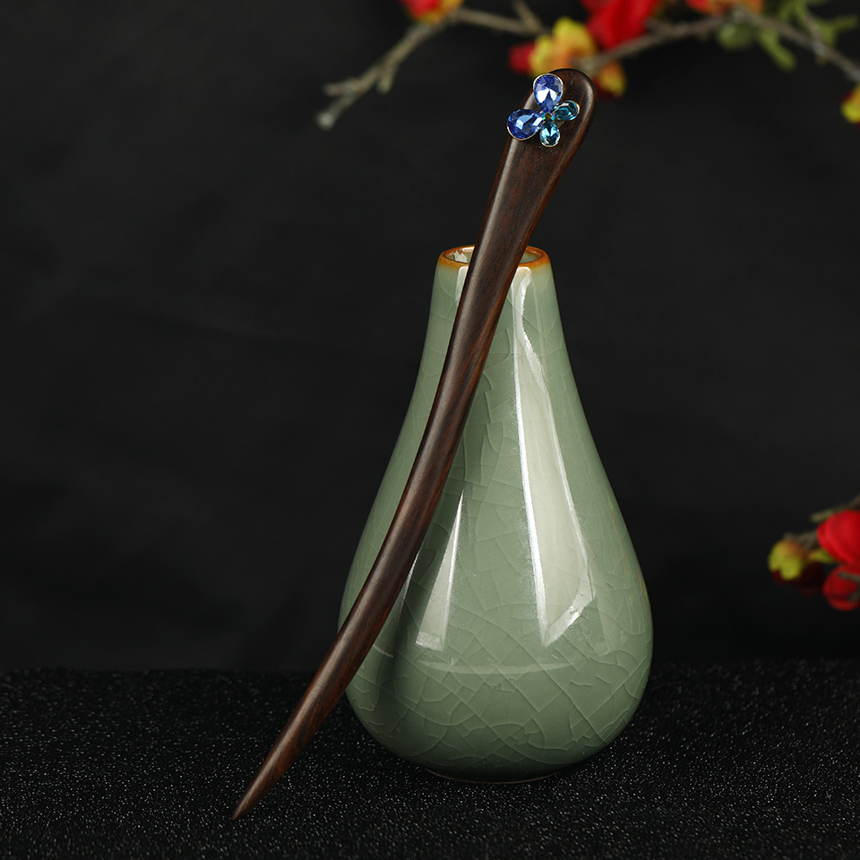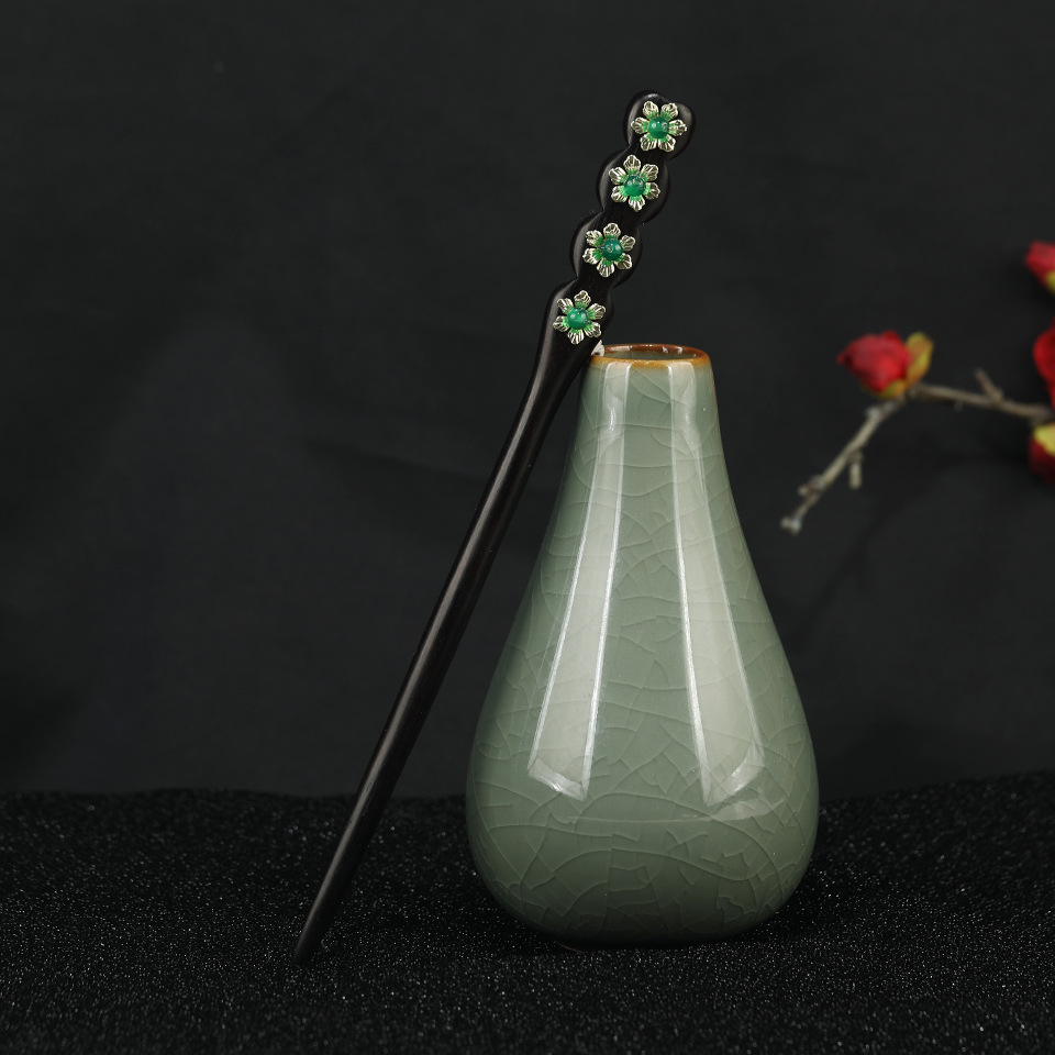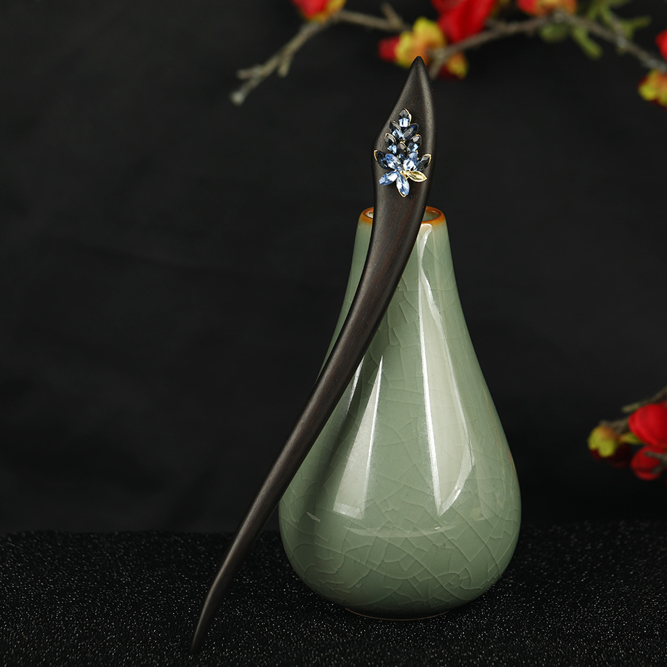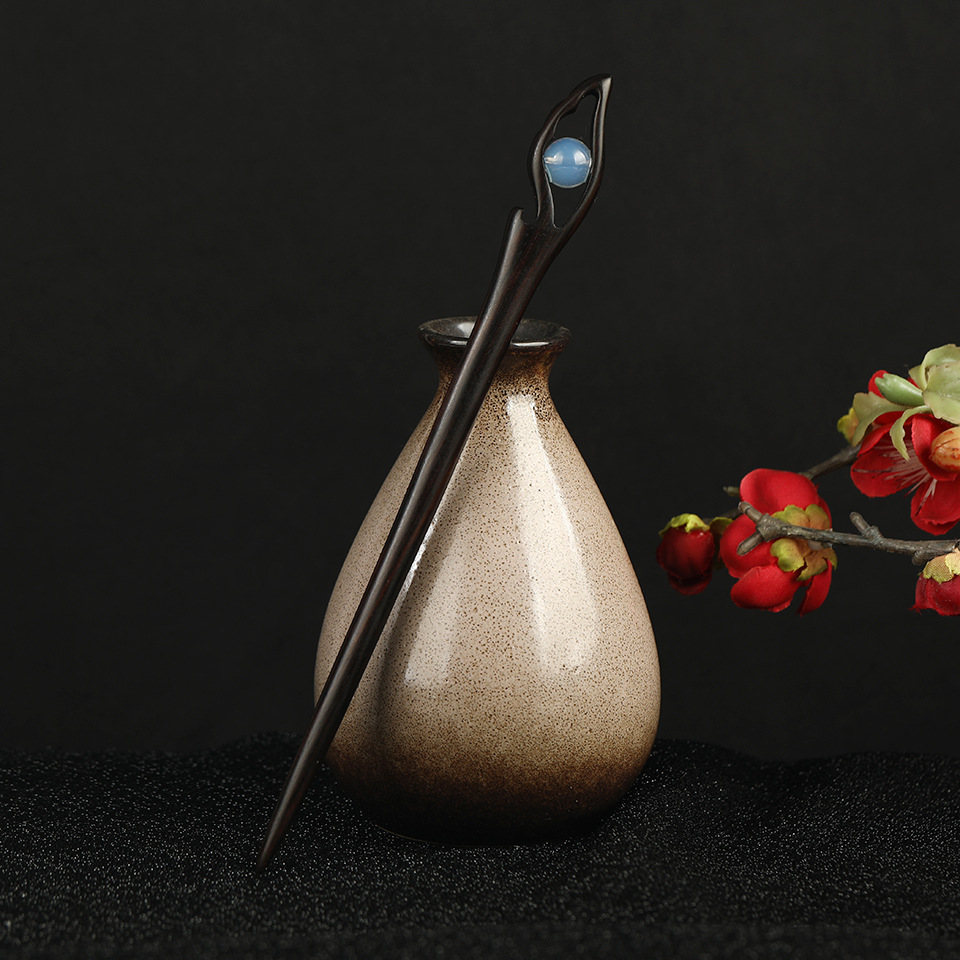 黑檀木琉璃花朵发簪古典气质手工步摇发钗饰品发饰头饰女复古实木