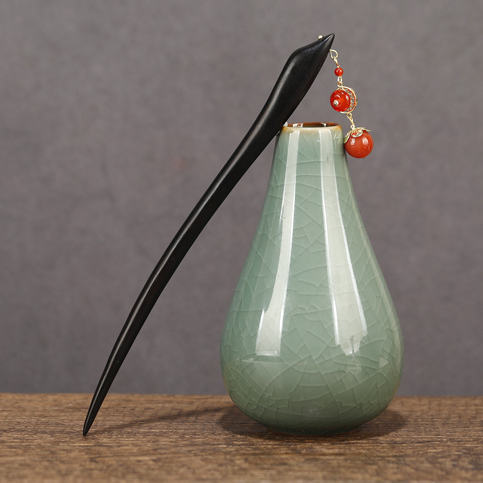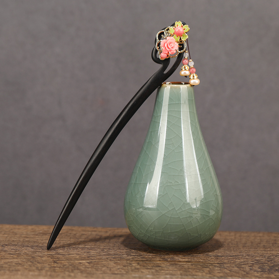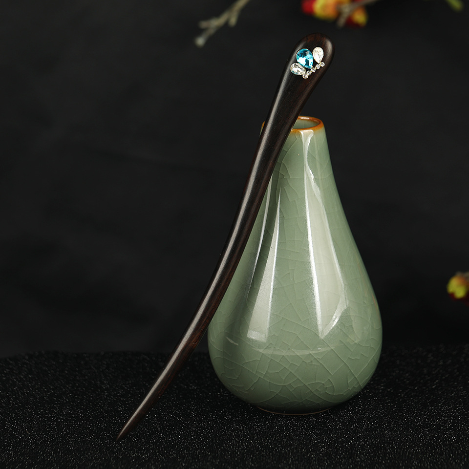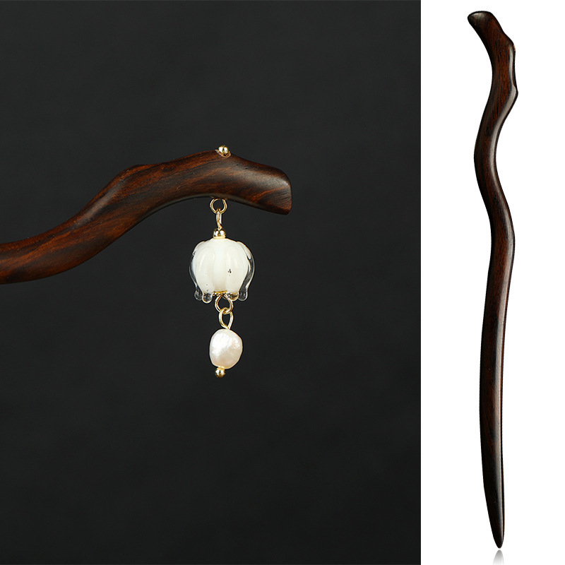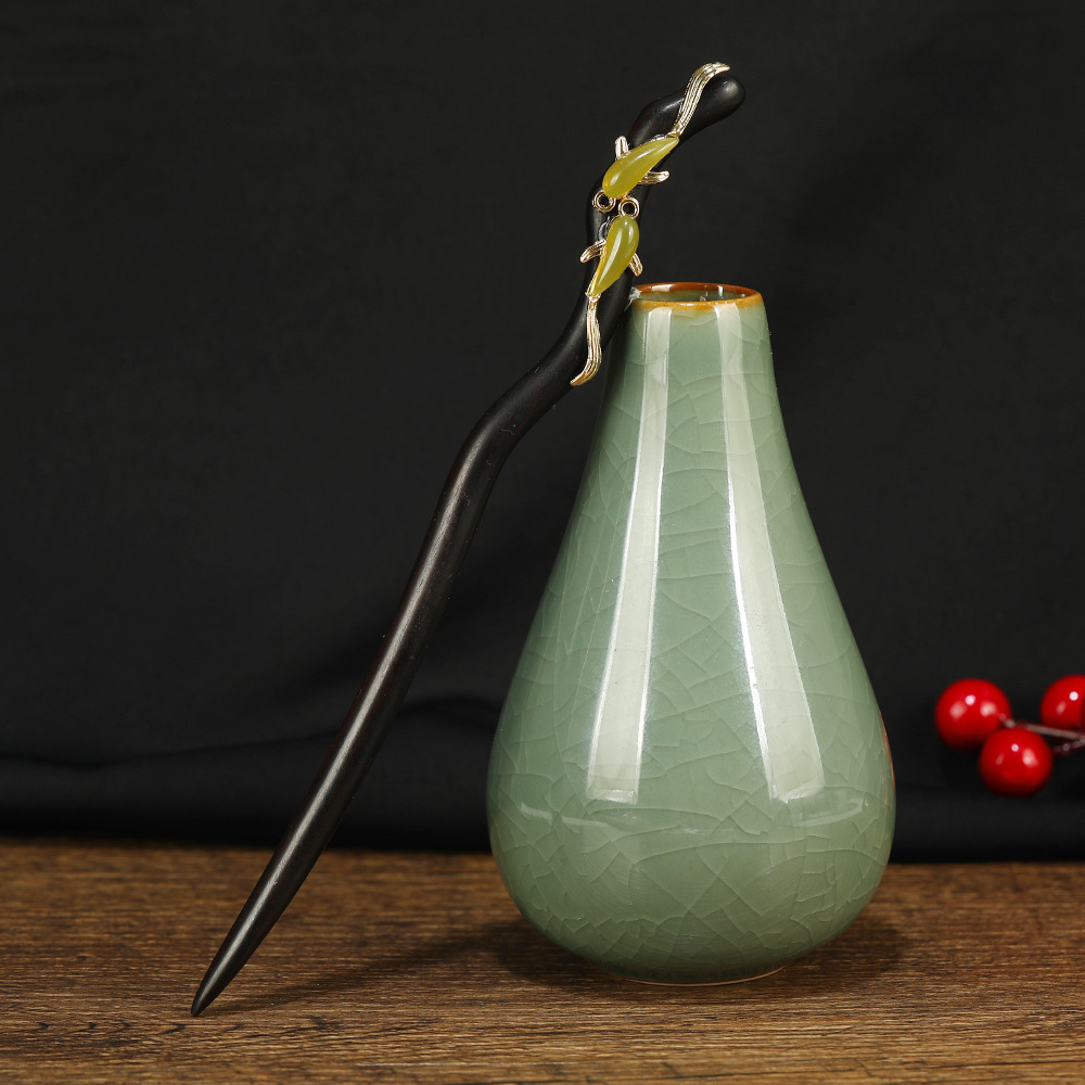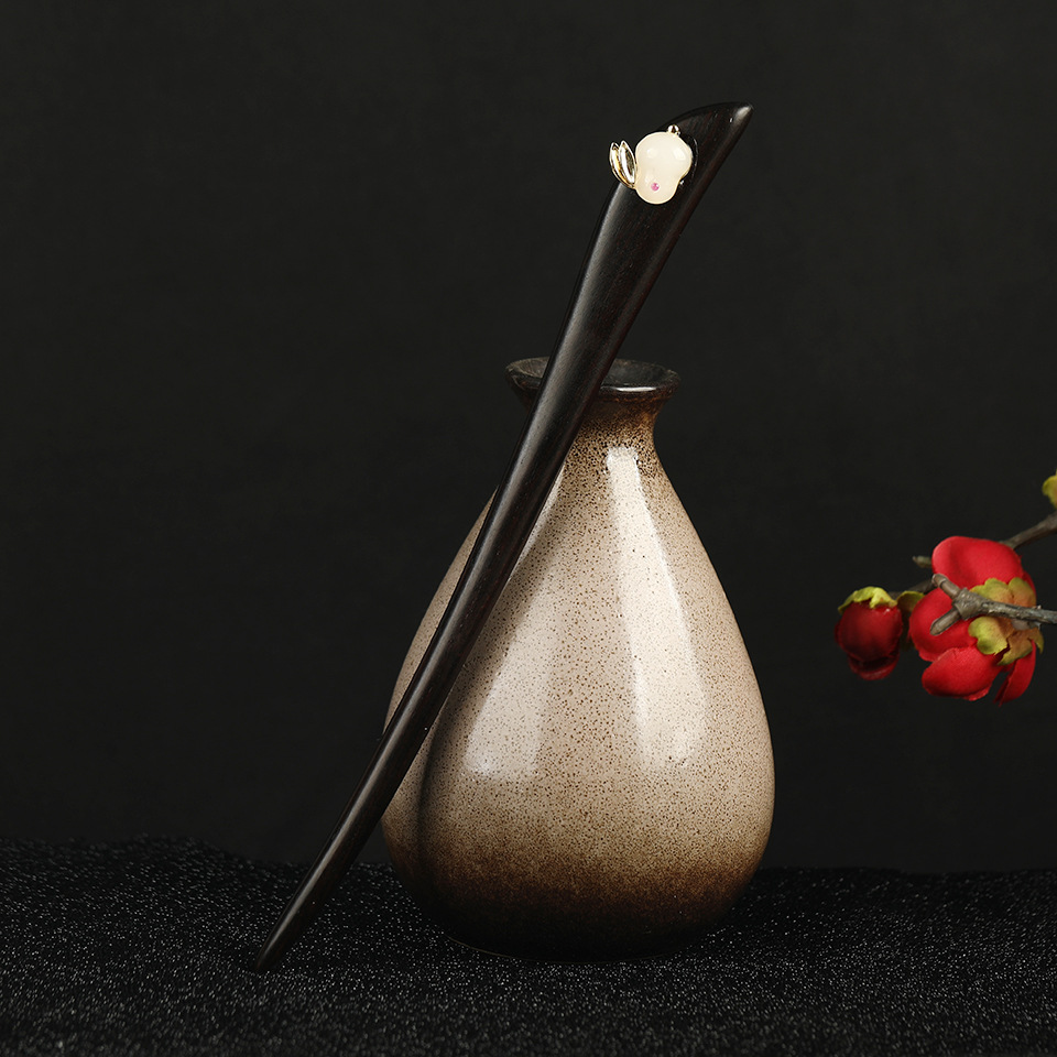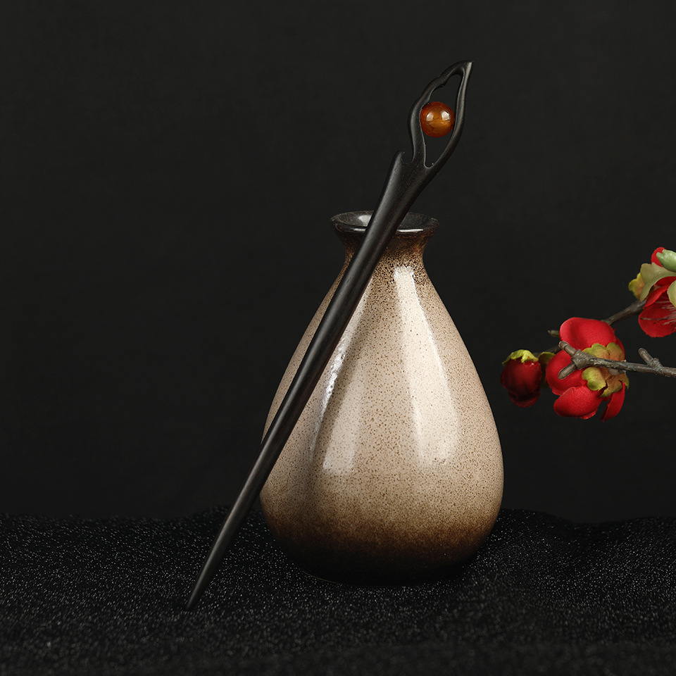 黑檀木琉璃花朵发簪古典气质手工步摇发钗饰品发饰头饰女复古实木