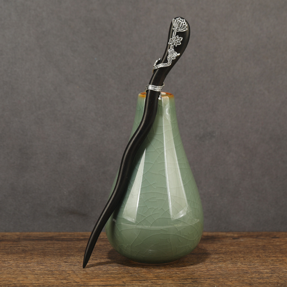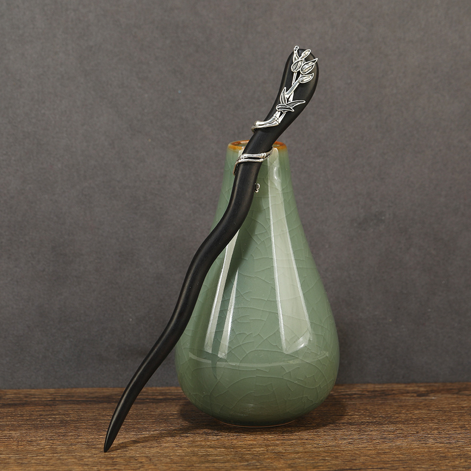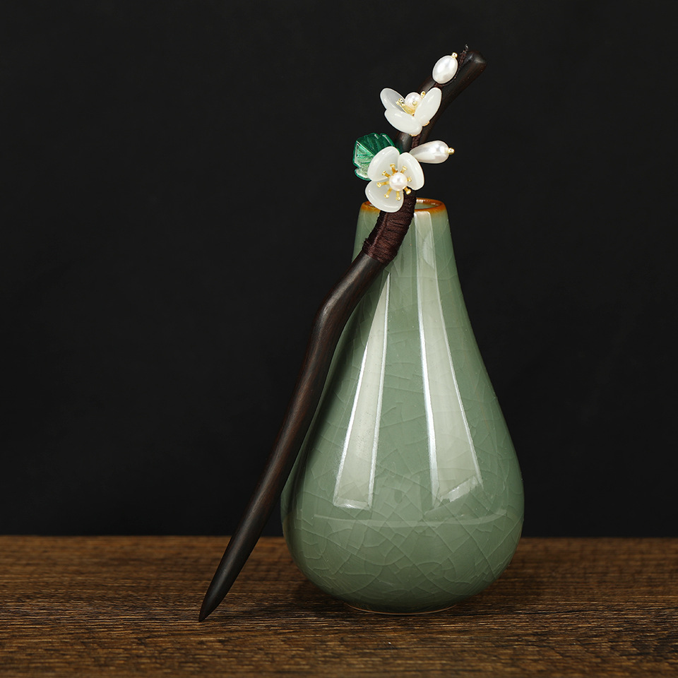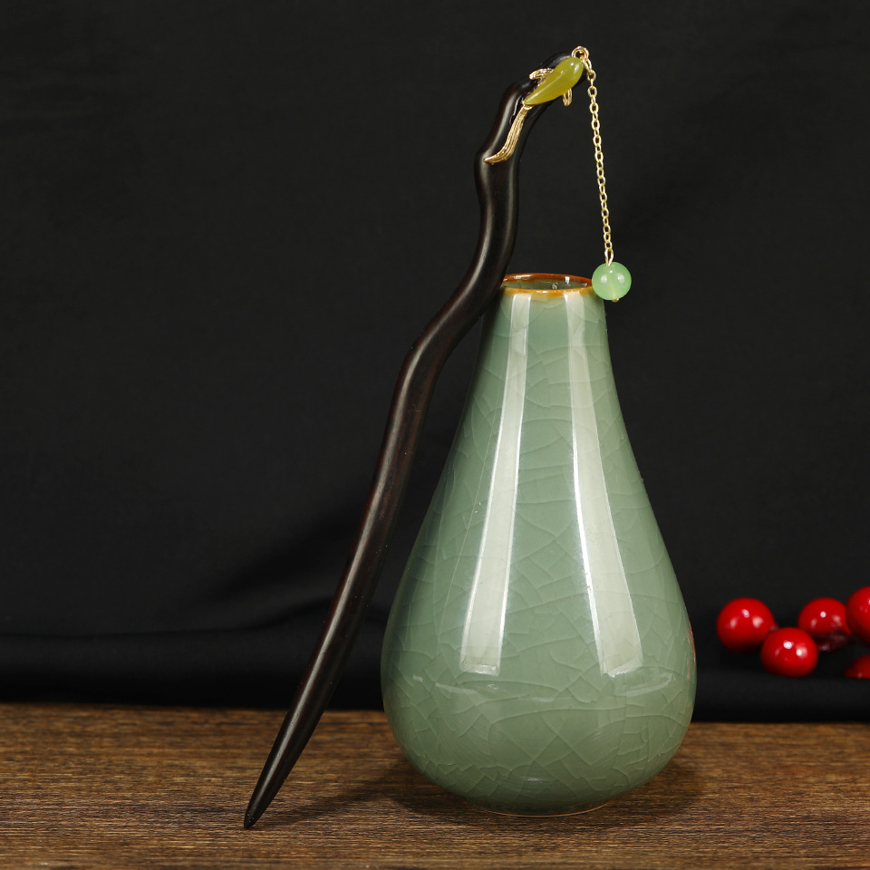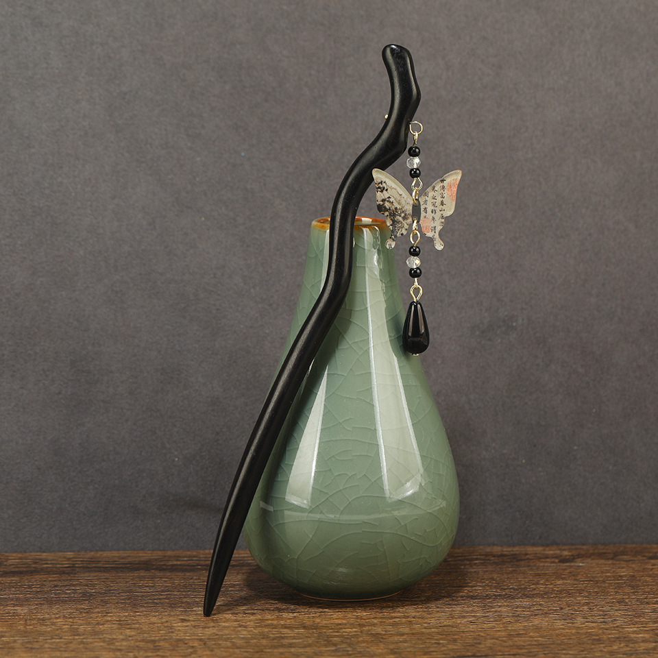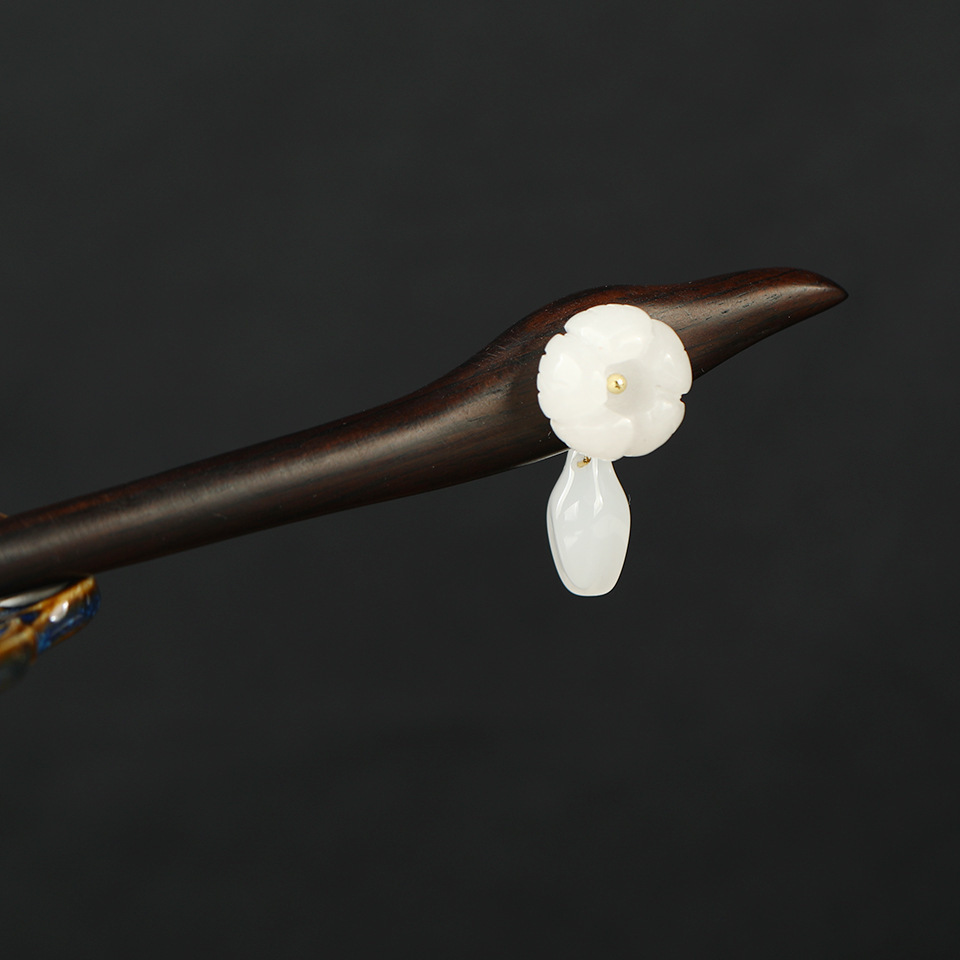 黑檀木琉璃花朵发簪古典气质手工步摇发钗饰品发饰头饰女复古实木