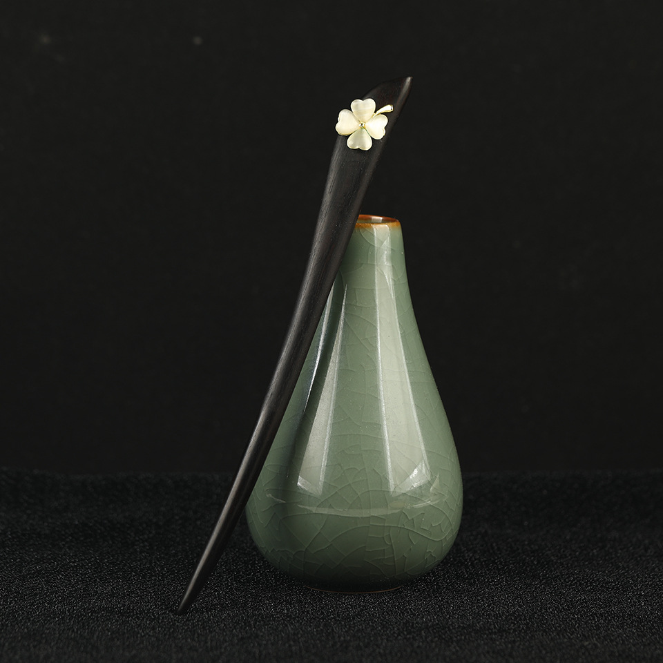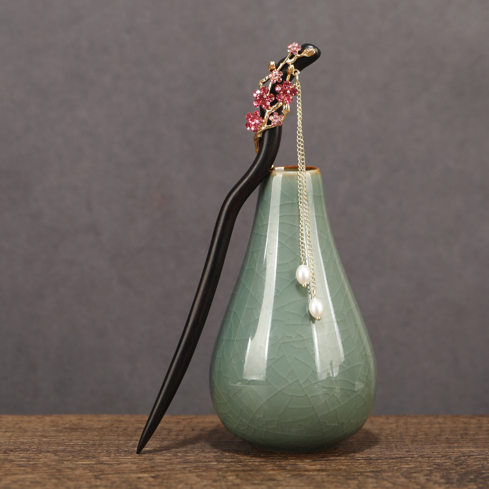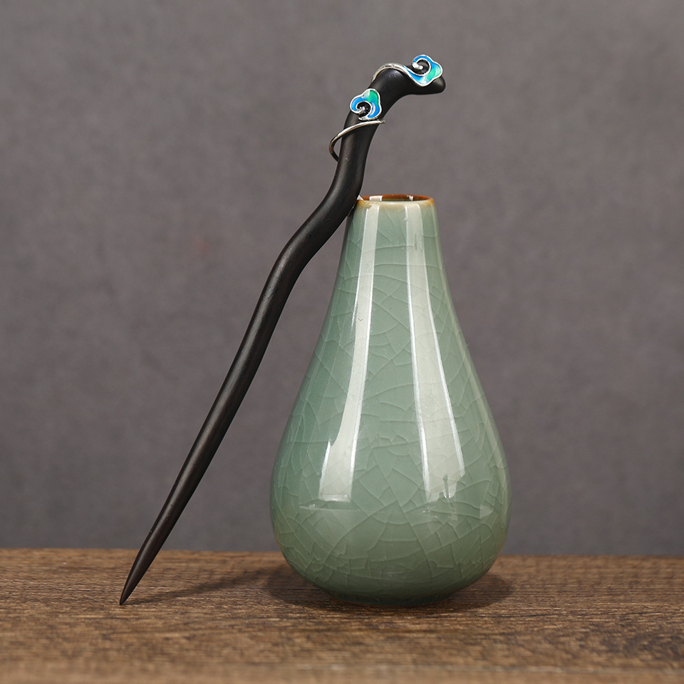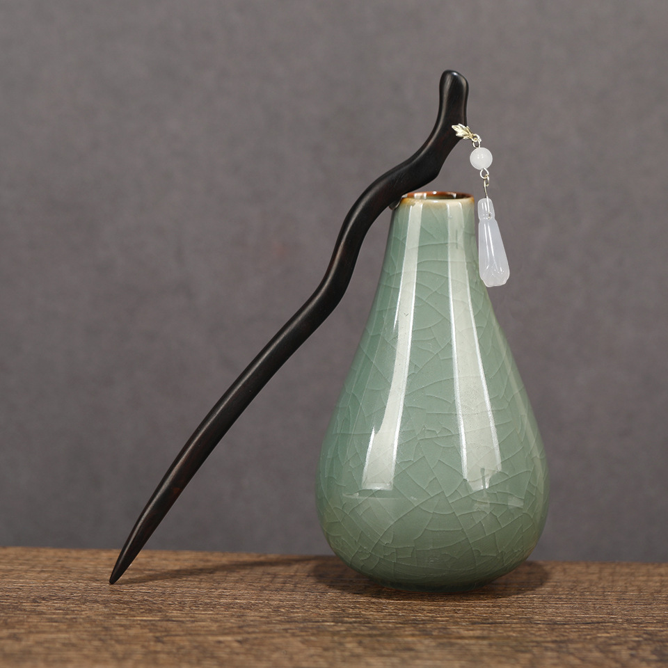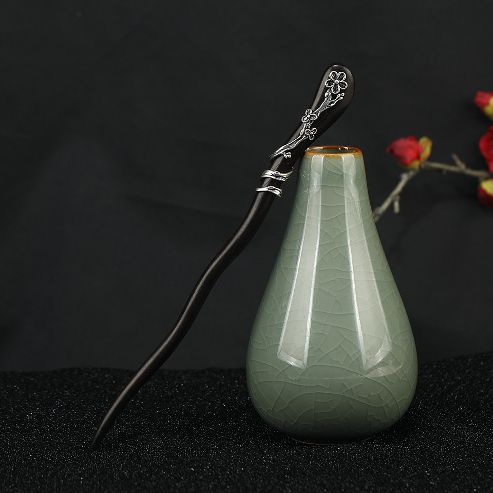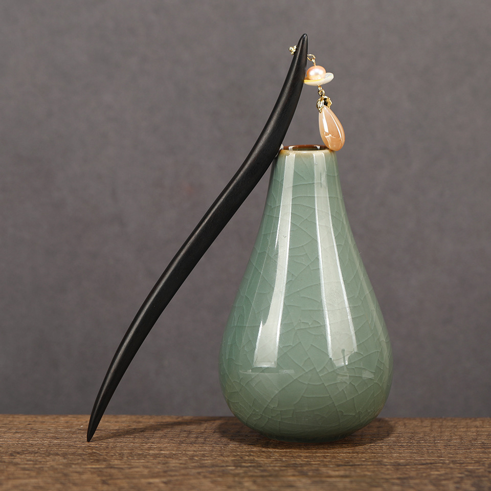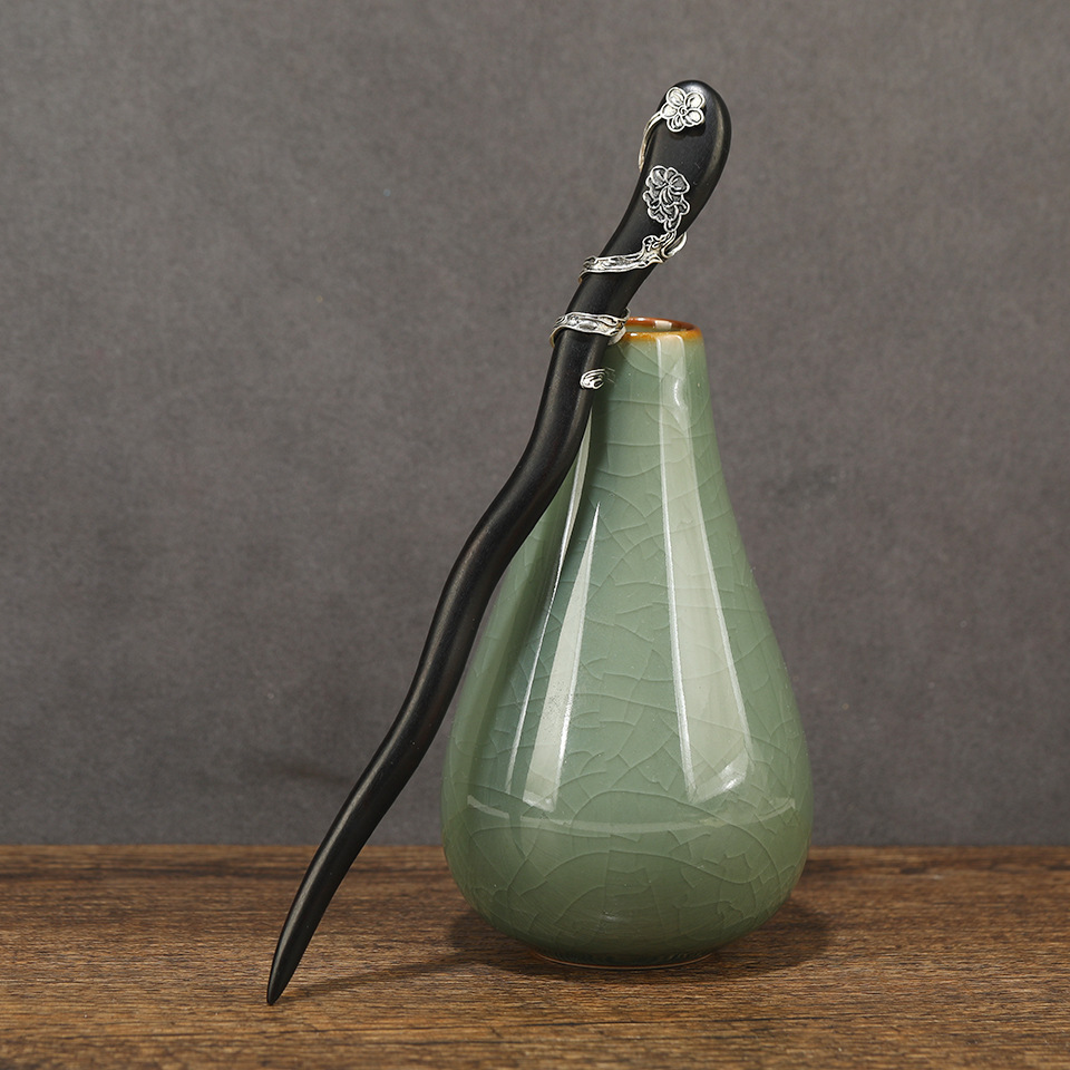 黑檀木琉璃花朵发簪古典气质手工步摇发钗饰品发饰头饰女复古实木
