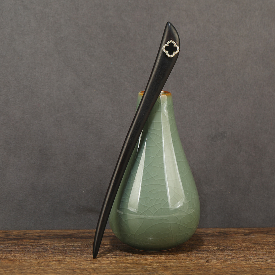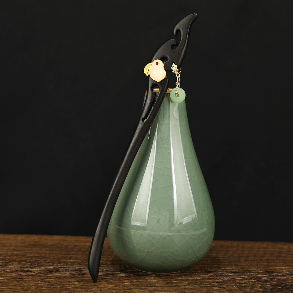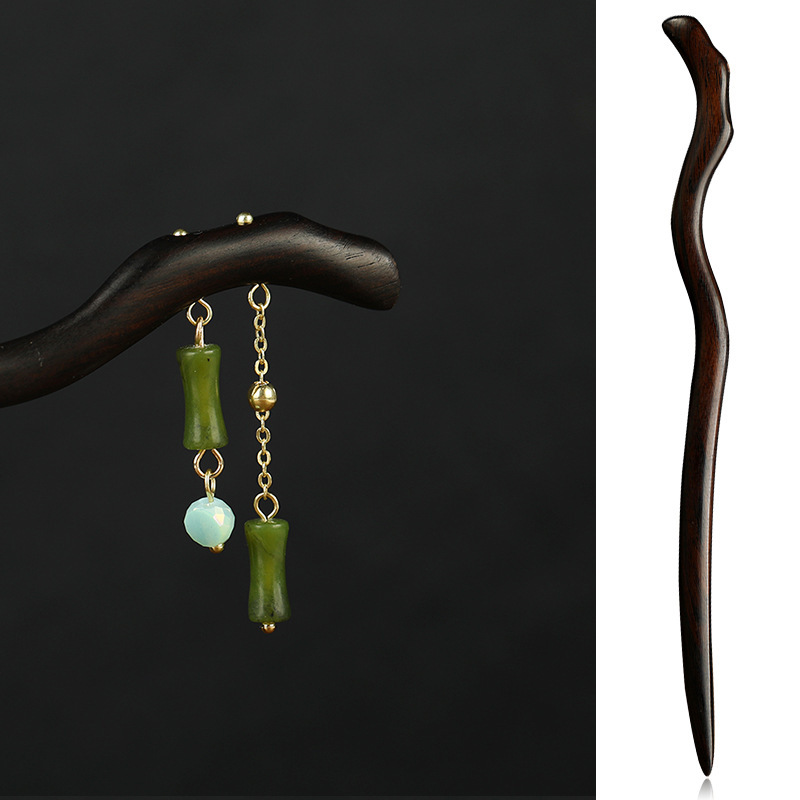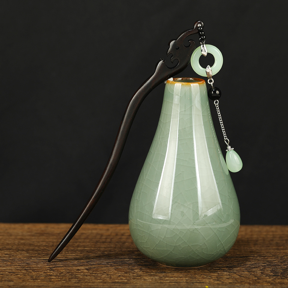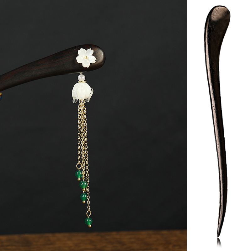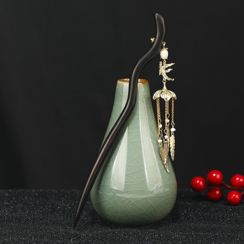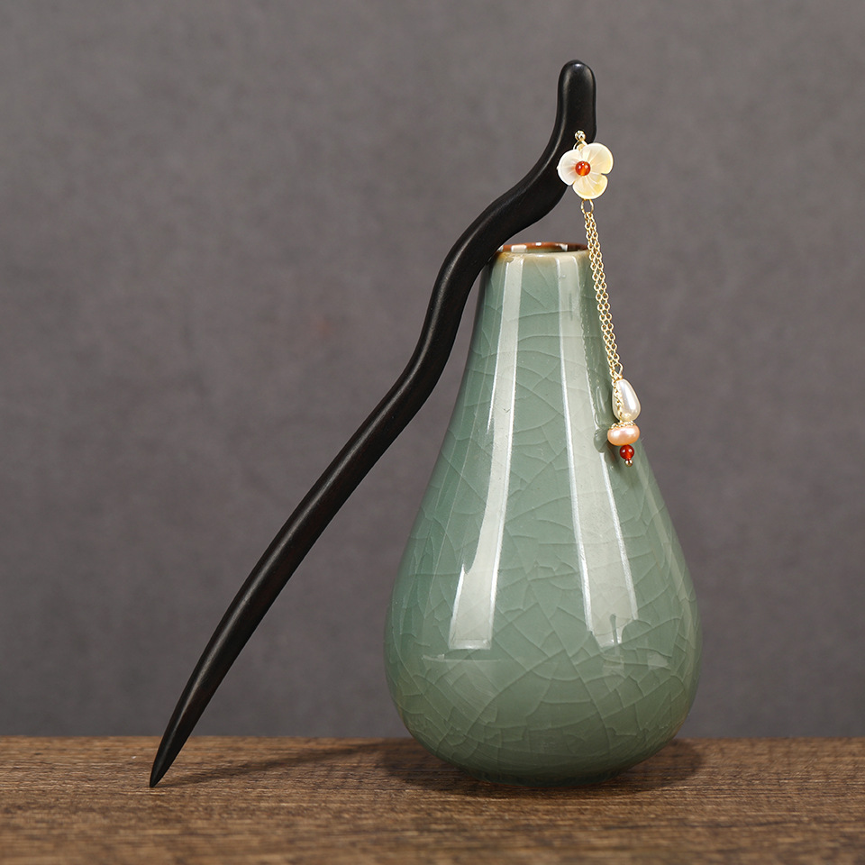 黑檀木琉璃花朵发簪古典气质手工步摇发钗饰品发饰头饰女复古实木