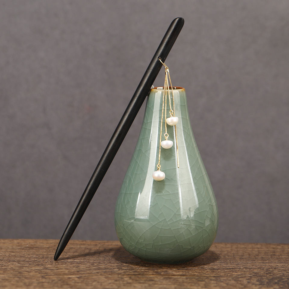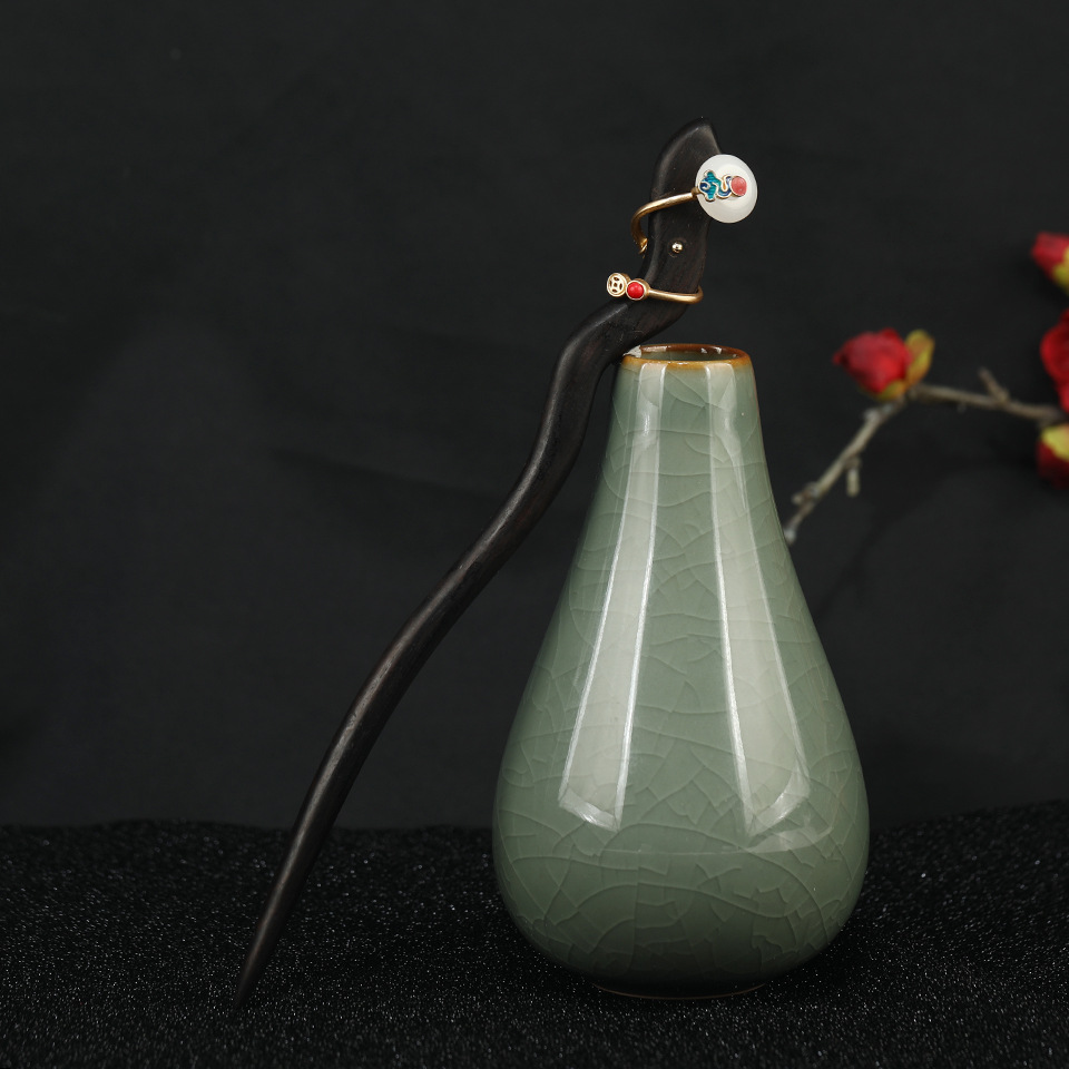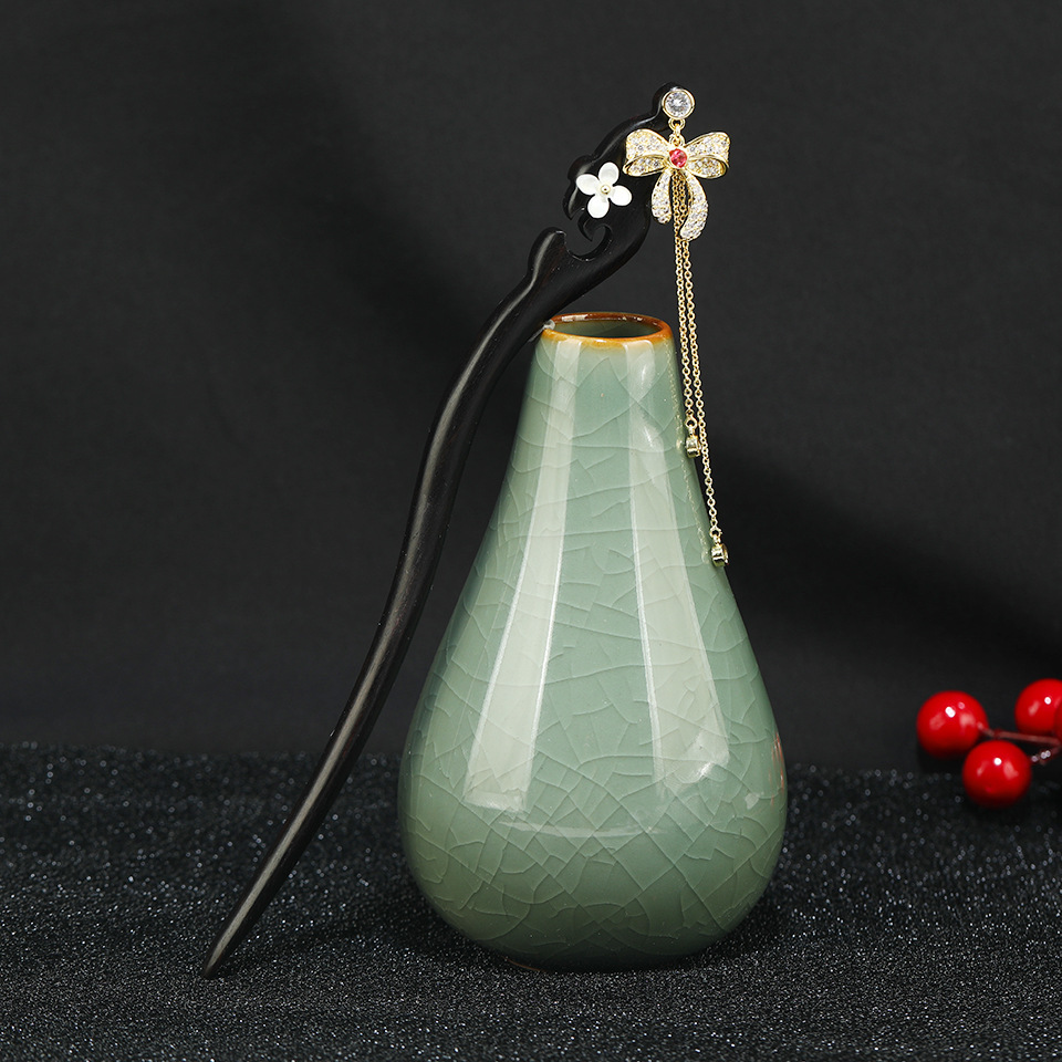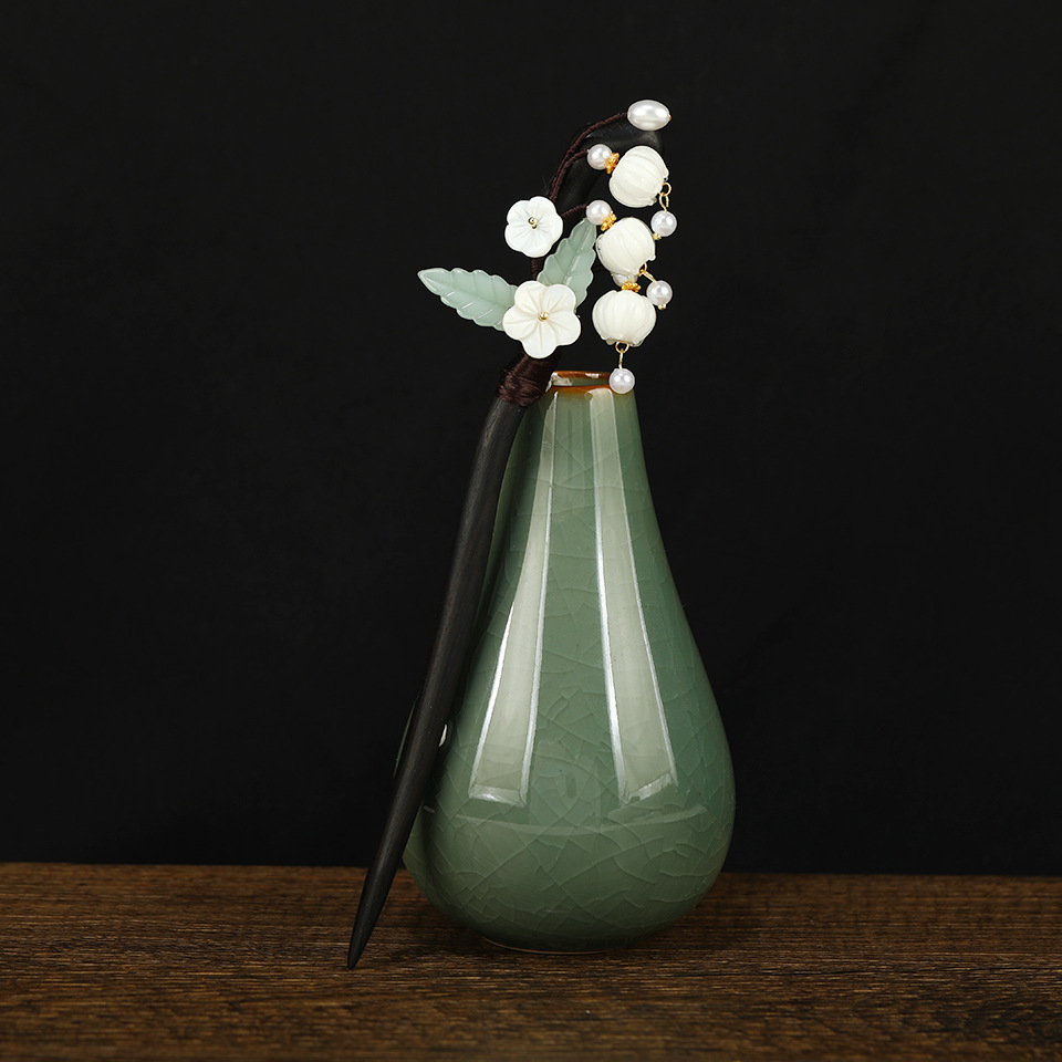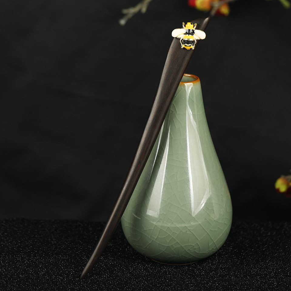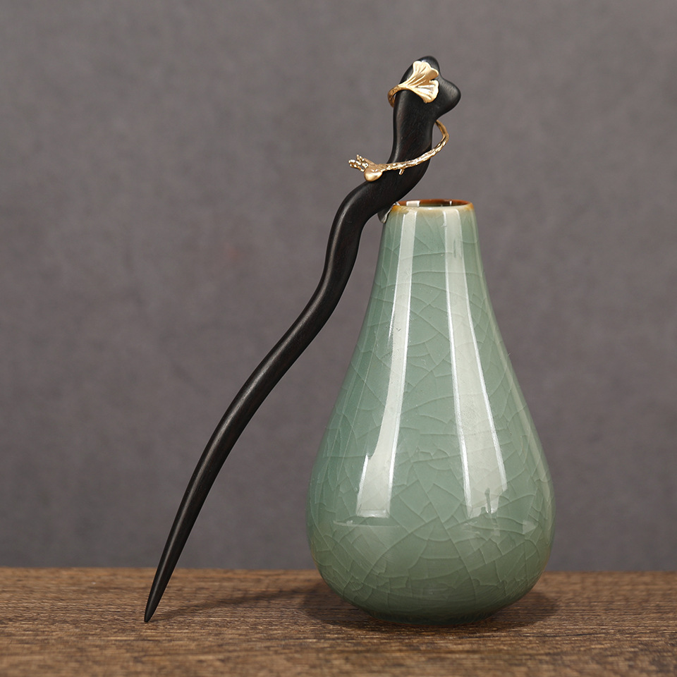 黑檀木琉璃花朵发簪古典气质手工步摇发钗饰品发饰头饰女复古实木