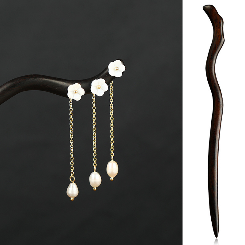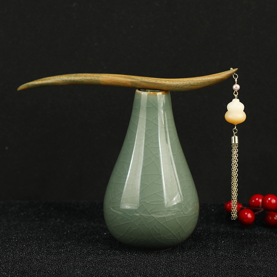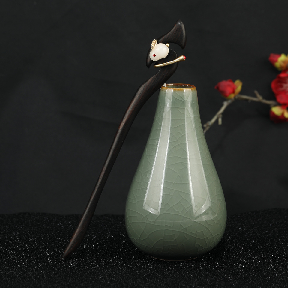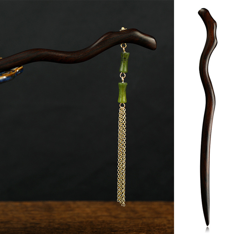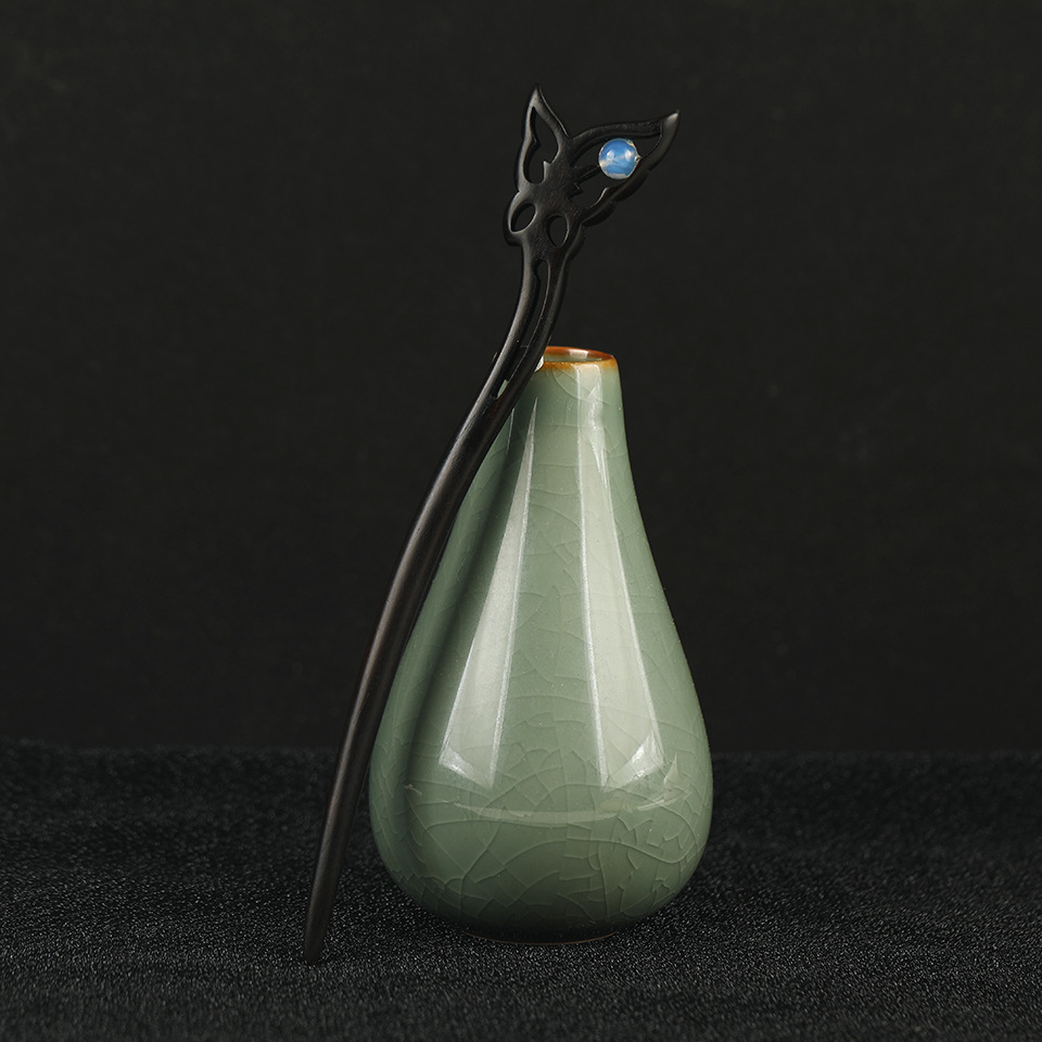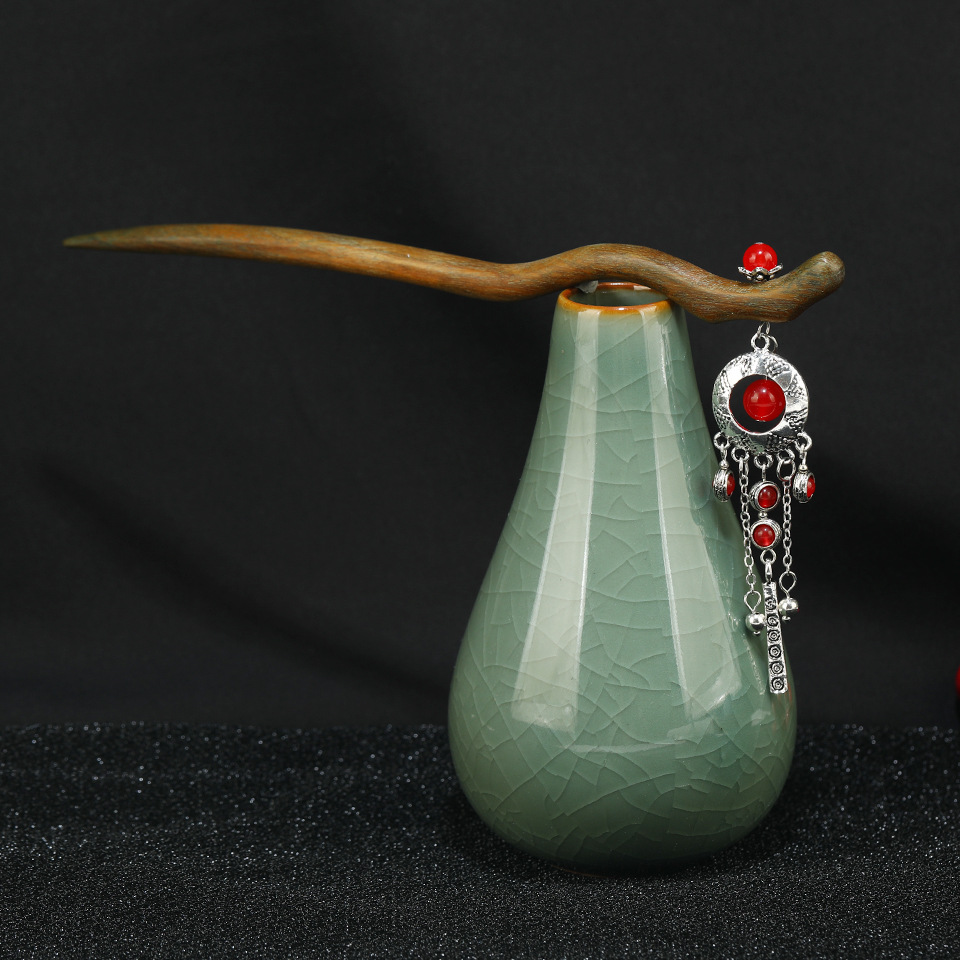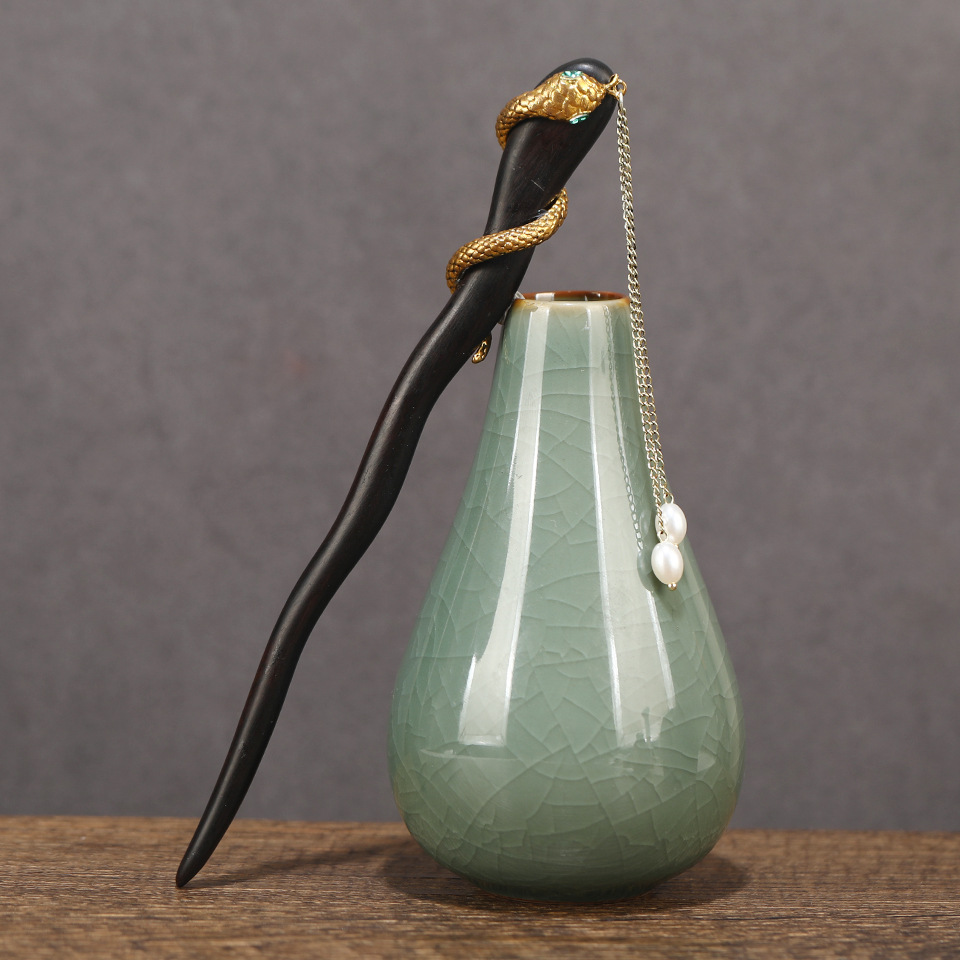 黑檀木琉璃花朵发簪古典气质手工步摇发钗饰品发饰头饰女复古实木