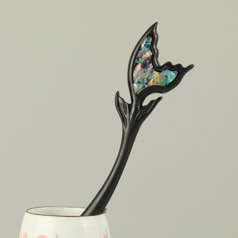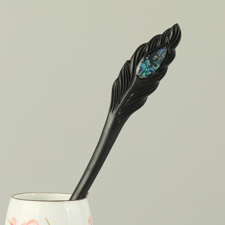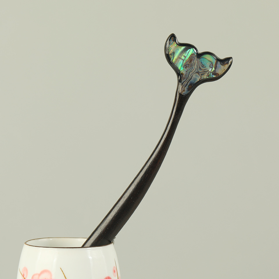 复古新中式黑檀木宫廷风盘发木簪创意鱼尾高级感汉服挽发发钗头饰