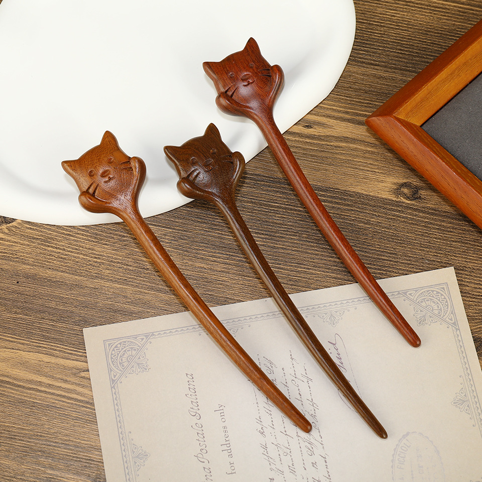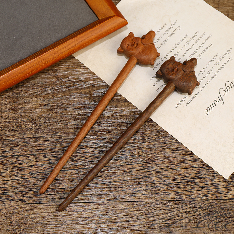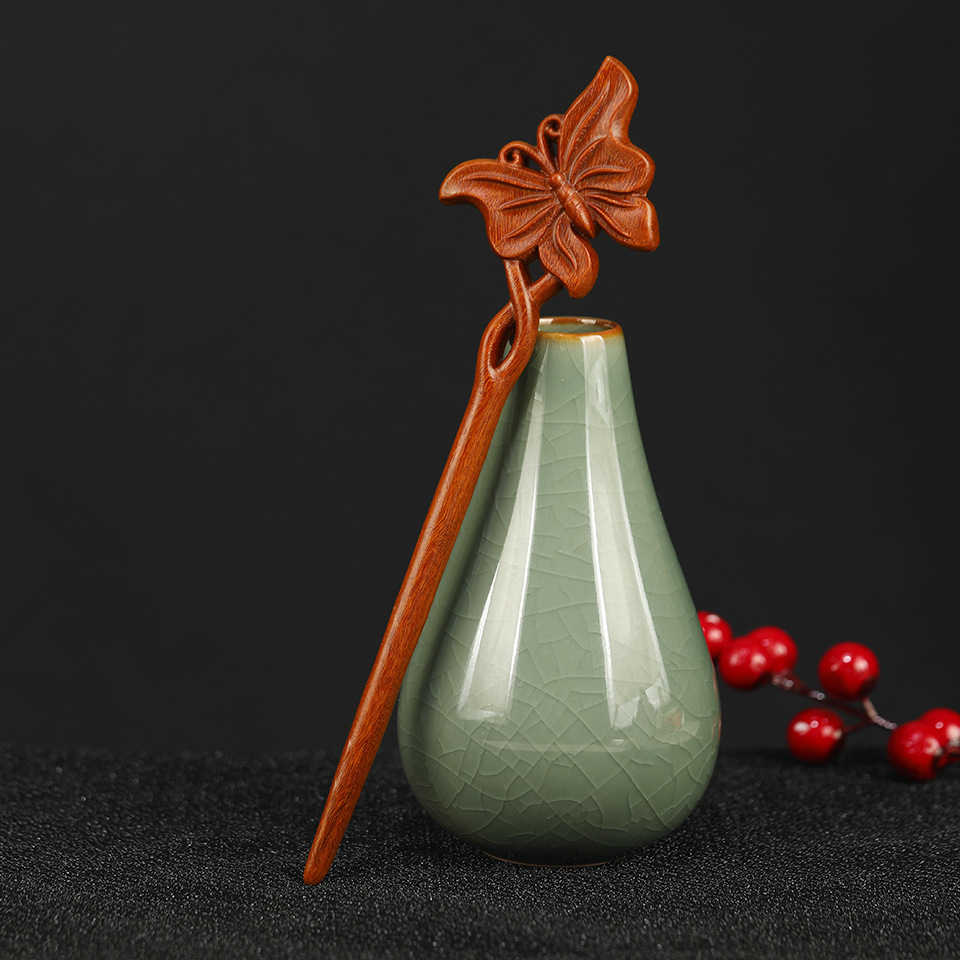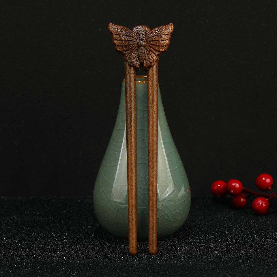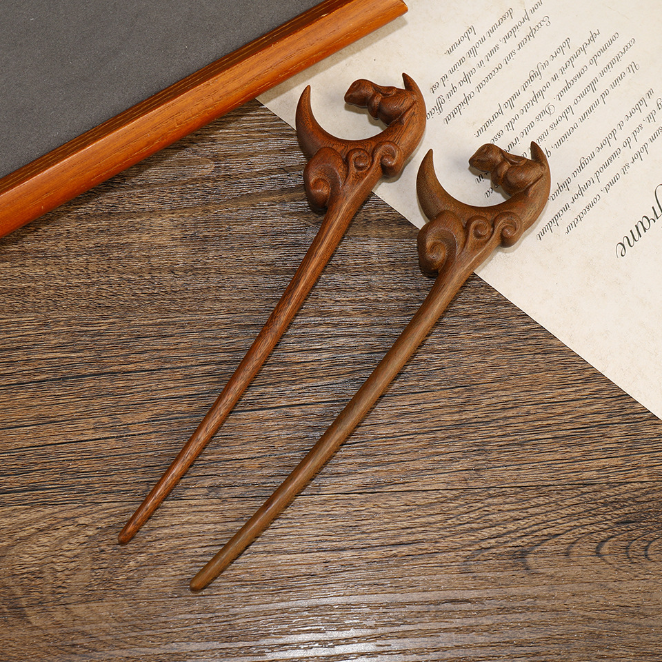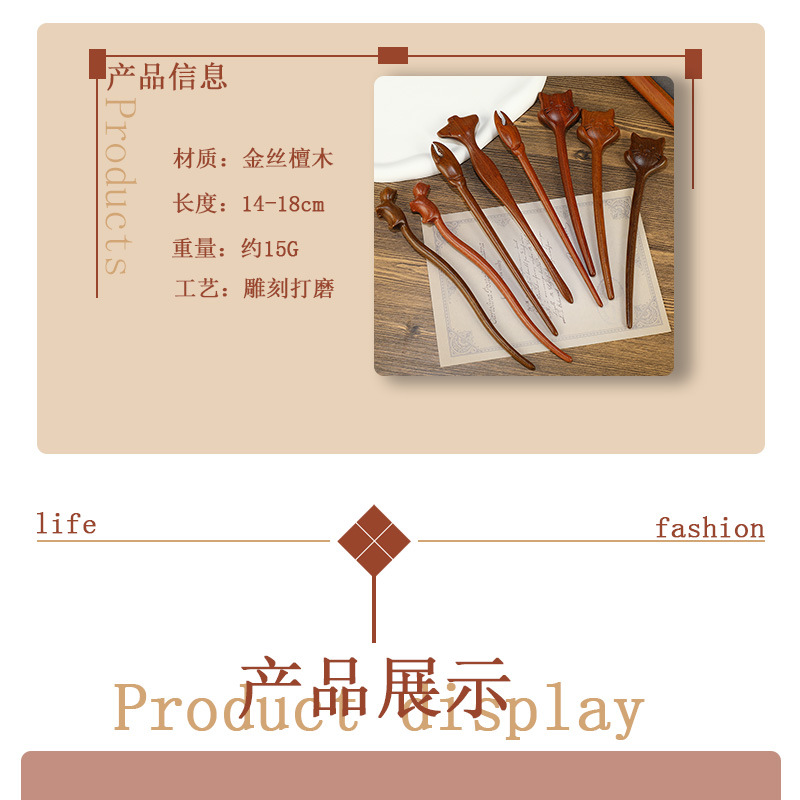 批发古典新中式簪子古风金丝檀木发簪古装发饰发钗步摇复古盘发头
