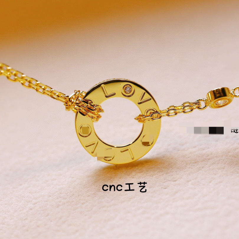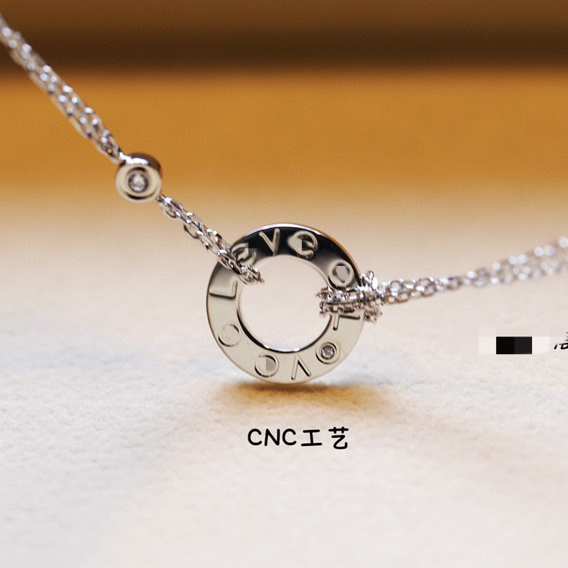 高版本V金love系列项链厚镀18K 镶钻圆饼圆形项链lLOVE吊坠锁骨链