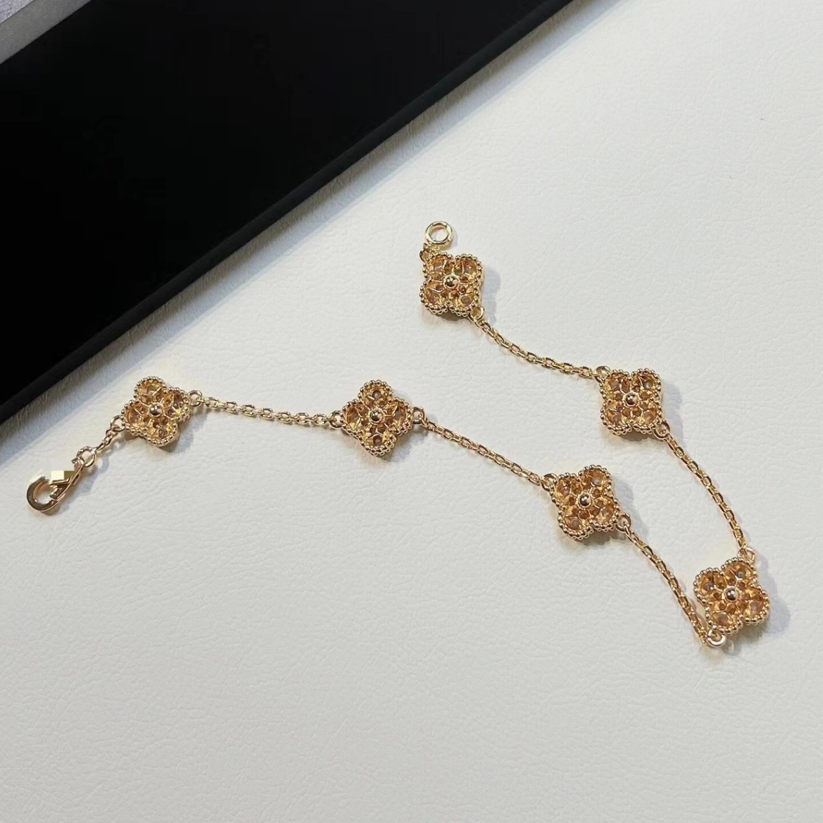 v金高版本mini小号四叶草六花手链女镀18K金满钻花朵手饰气质时尚