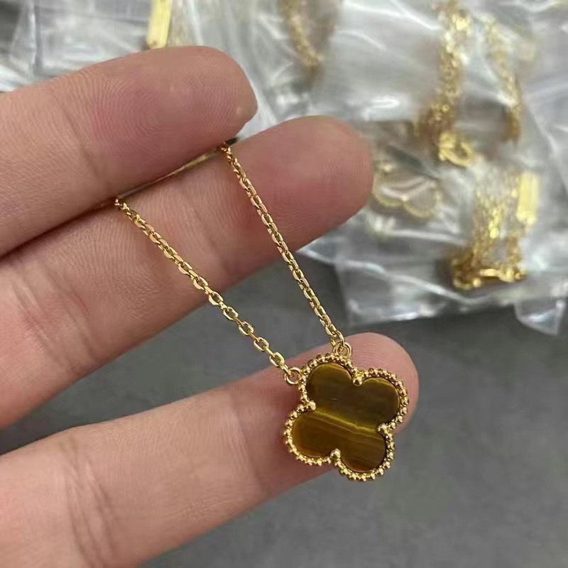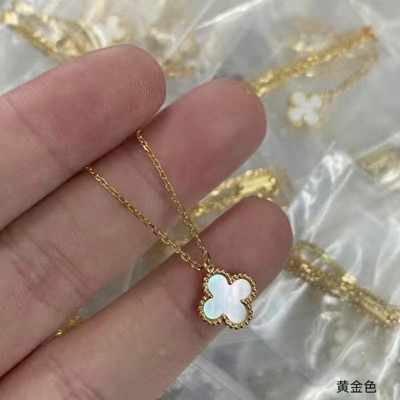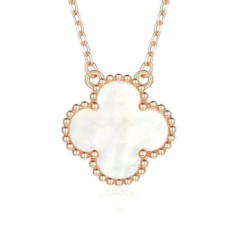 高版本V金四叶草手链渡18K金项链玫瑰红玉髓玛瑙白贝工厂直销