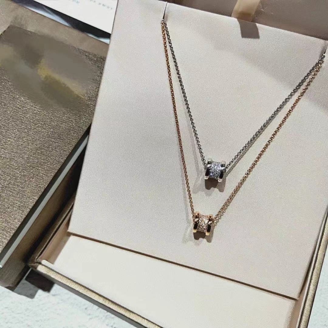 V金高版本CNC精雕扣头小蛮腰镶钻玫瑰金项链精工版本厚镀18K金