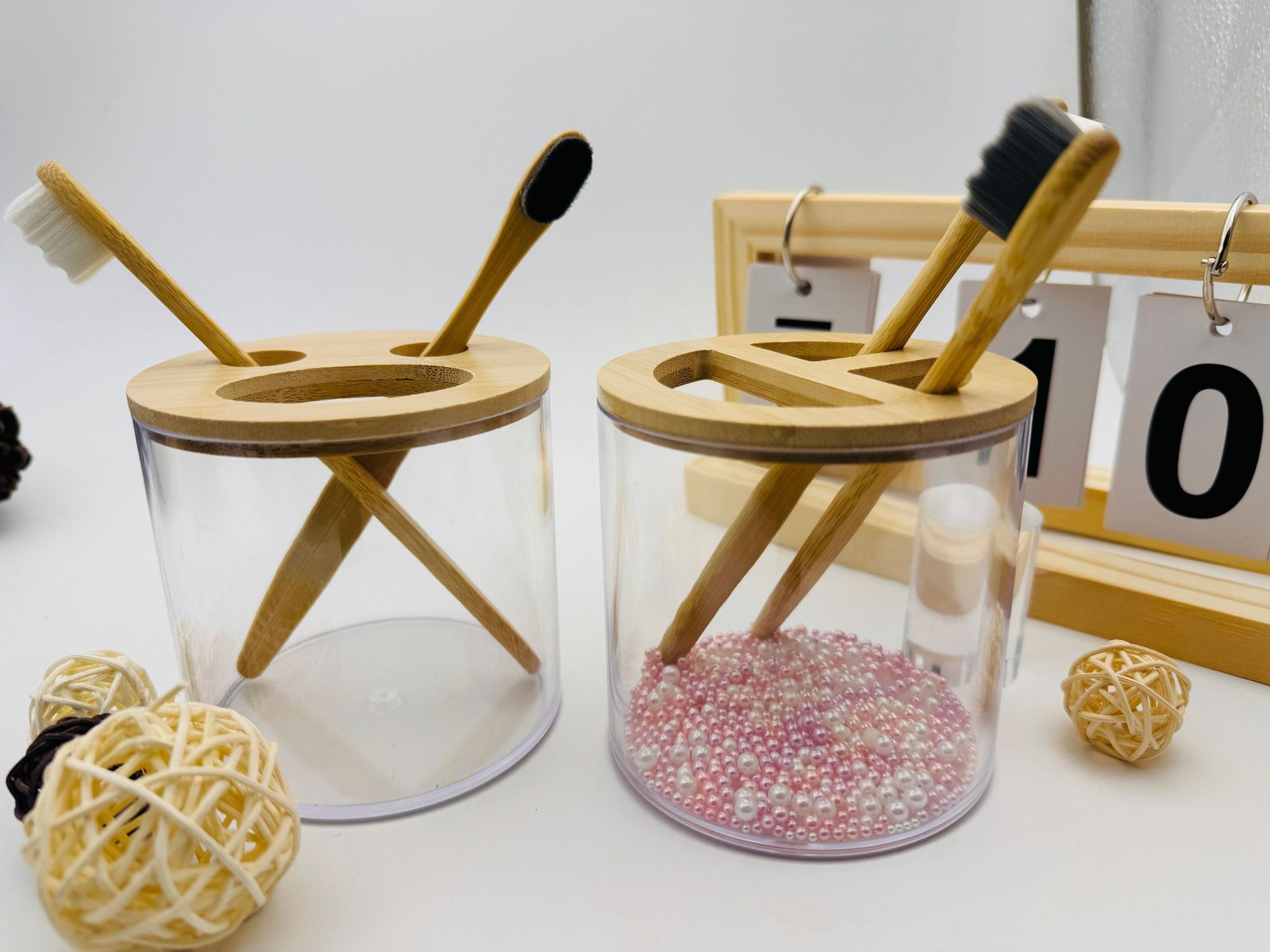 PS竹木盖多功能牙刷杯首饰罐洗刷收纳罐棉签棉球收纳盒